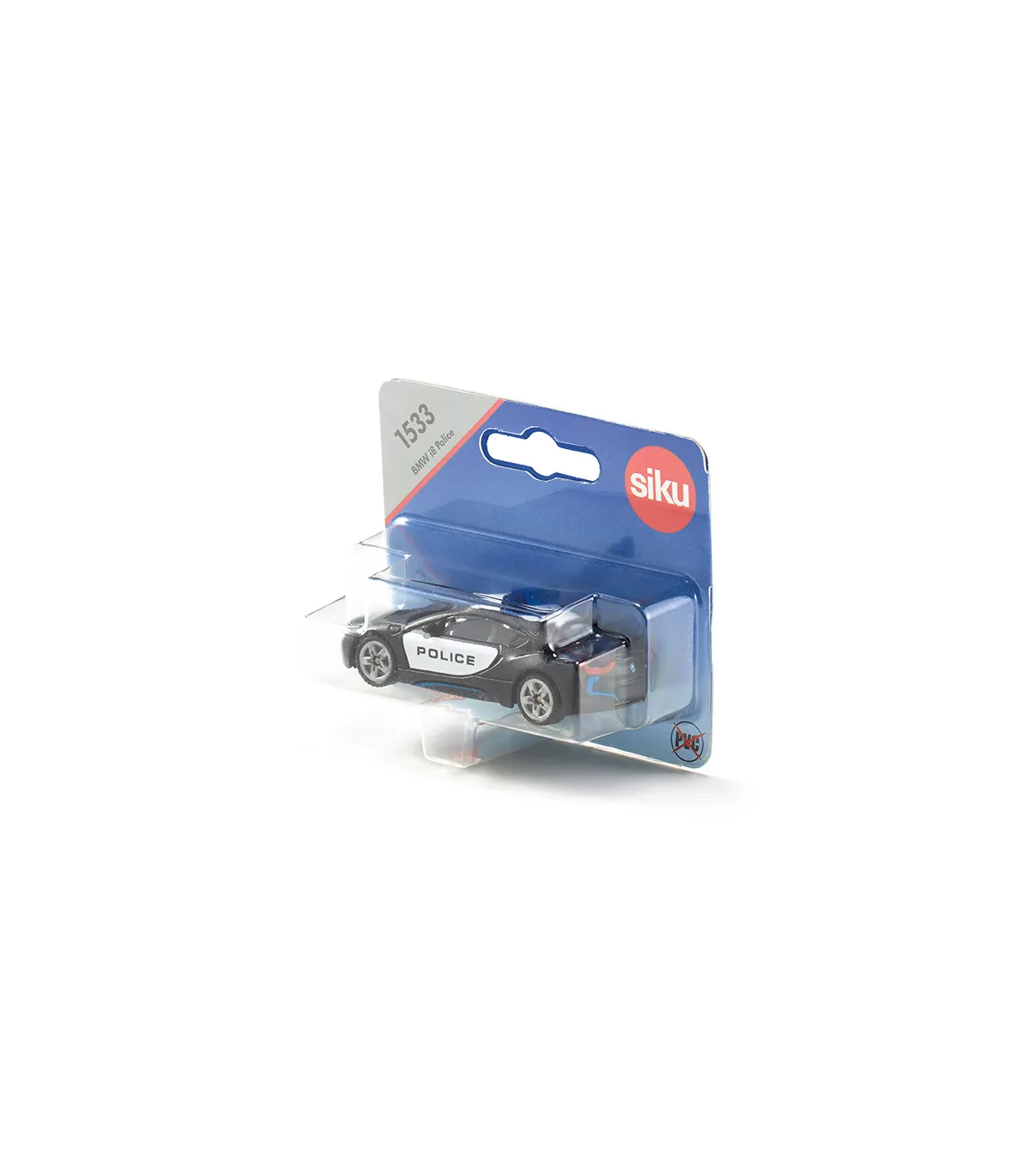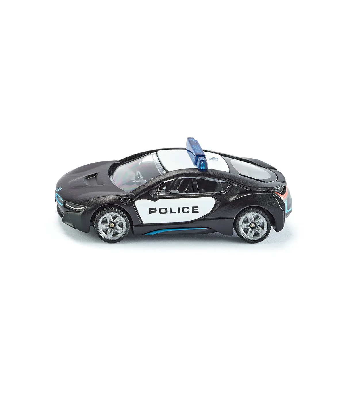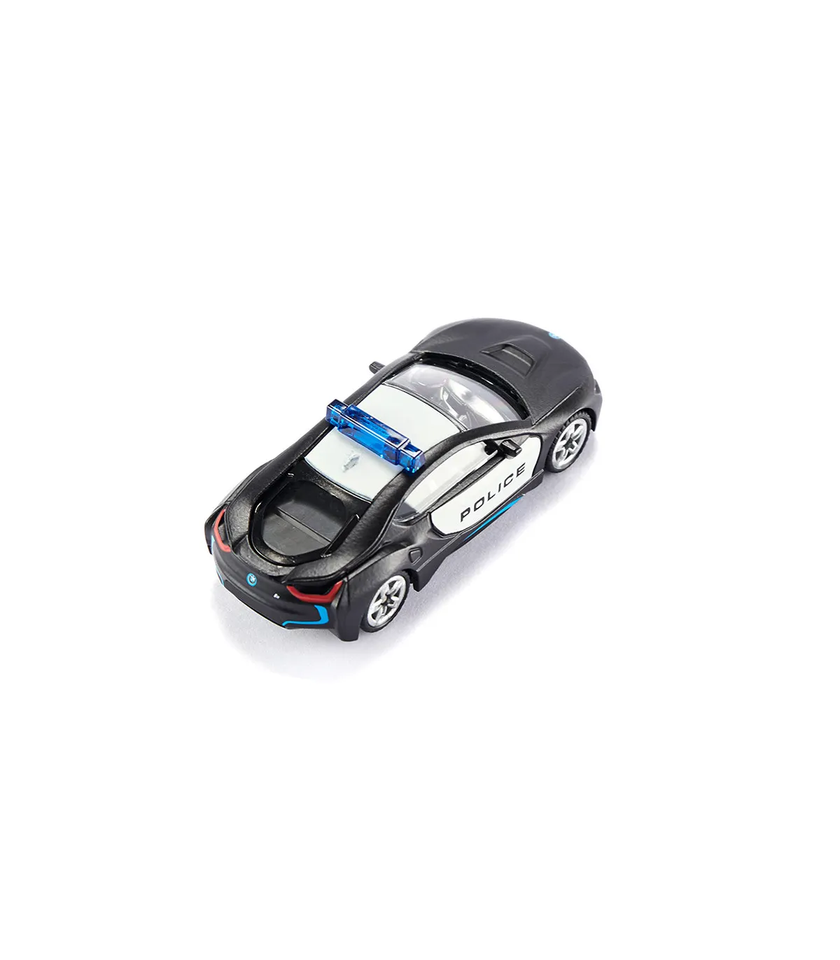 En silencio en la carretera Antes los policías conducían motores V8, ahora los agentes de policía persiguen a los infractores de velocidad casi en silencio con el BMW i8 en las autopistas de Los Ángeles. El deportivo híbrido circula por la carretera a velocidades de hasta 250 km/h sobre llantas deportivas con neumáticos de material engomado. Con la barra de señales en el techo y la llamativa pintura blanca y negra, los policías son los jefes en la carretera. Mientras que la carrocería del original está hecha predominantemente de carbono, la versión siku está hecha de metal.