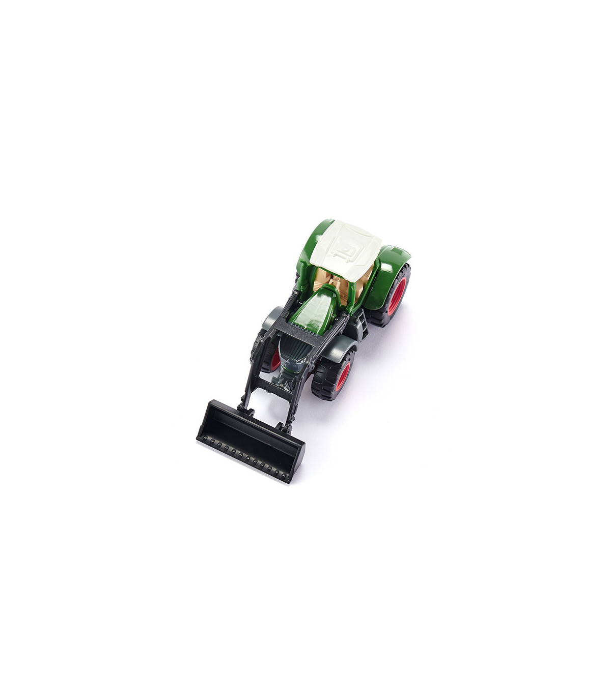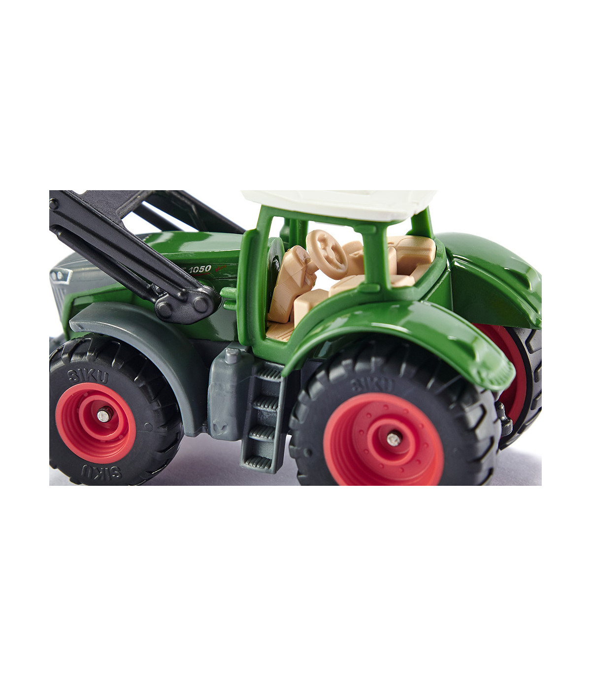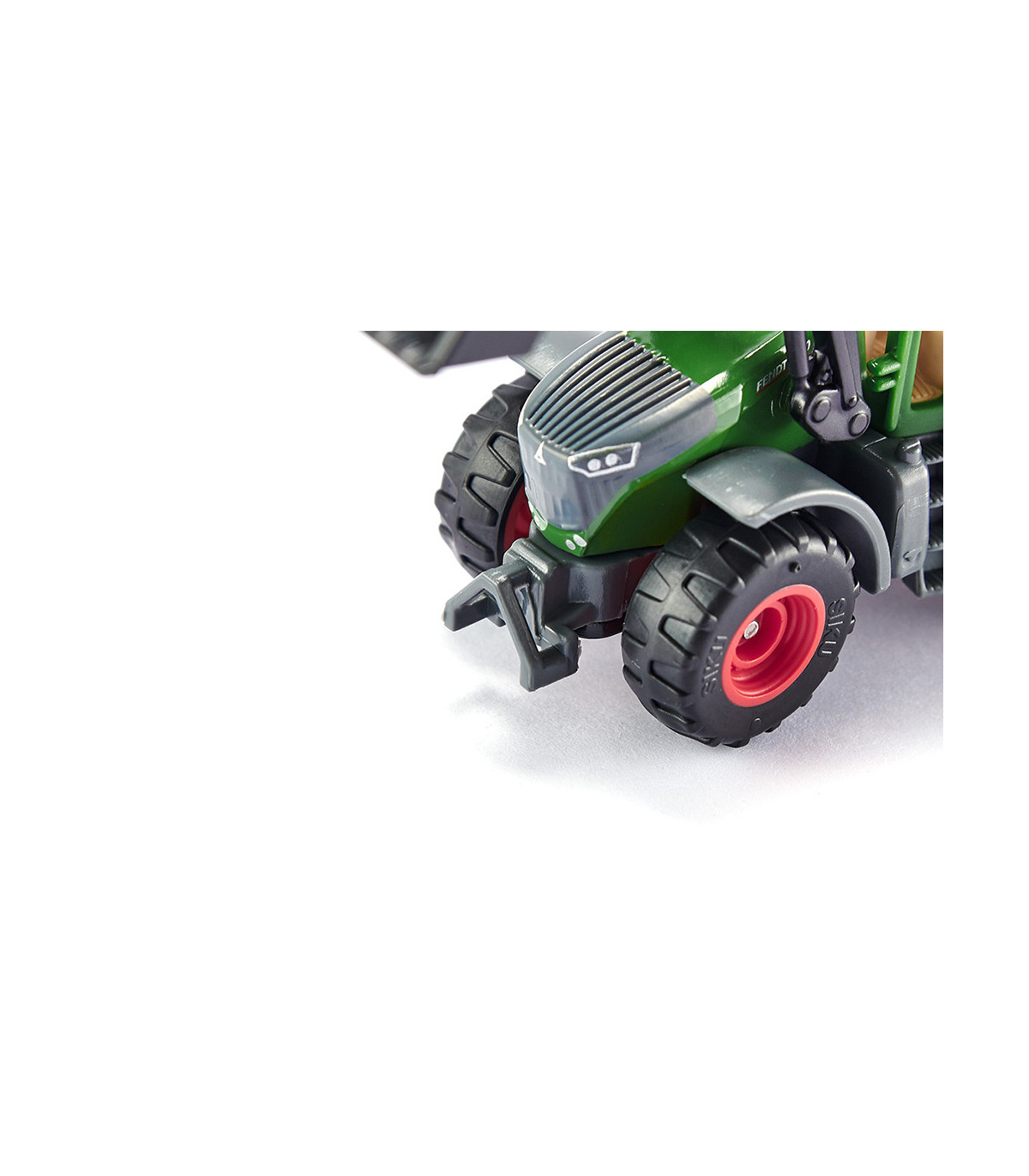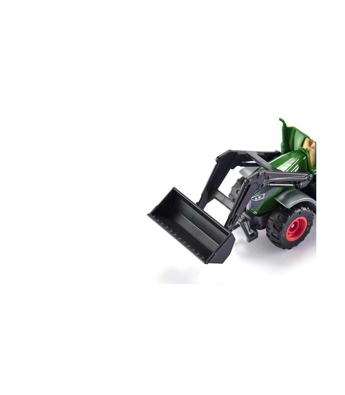 Para trabajos de carga rápida: carga de cereales y ensilaje, almacenamiento de pienso para el ganado o carga de tierra. El tractor Deutz-Fahr con cargador frontal es el implemento y tractor ideal para el jardín y el campo. El cargador frontal se puede mover hacia arriba y hacia abajo de manera realista y la cabina también se puede quitar. Muchos remolques siku se pueden acoplar al enganche de remolque. El tractor circula sobre neumáticos de goma con banda de rodadura agrícola.