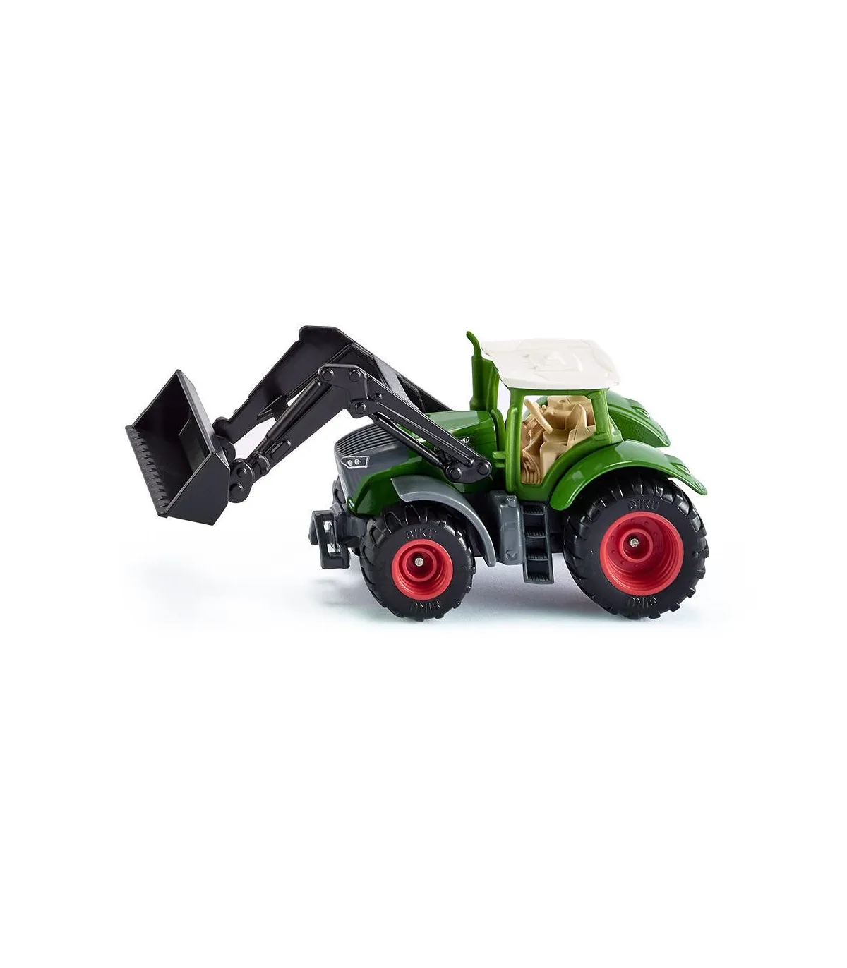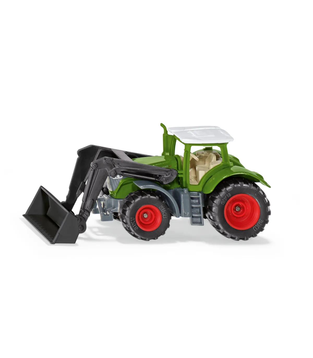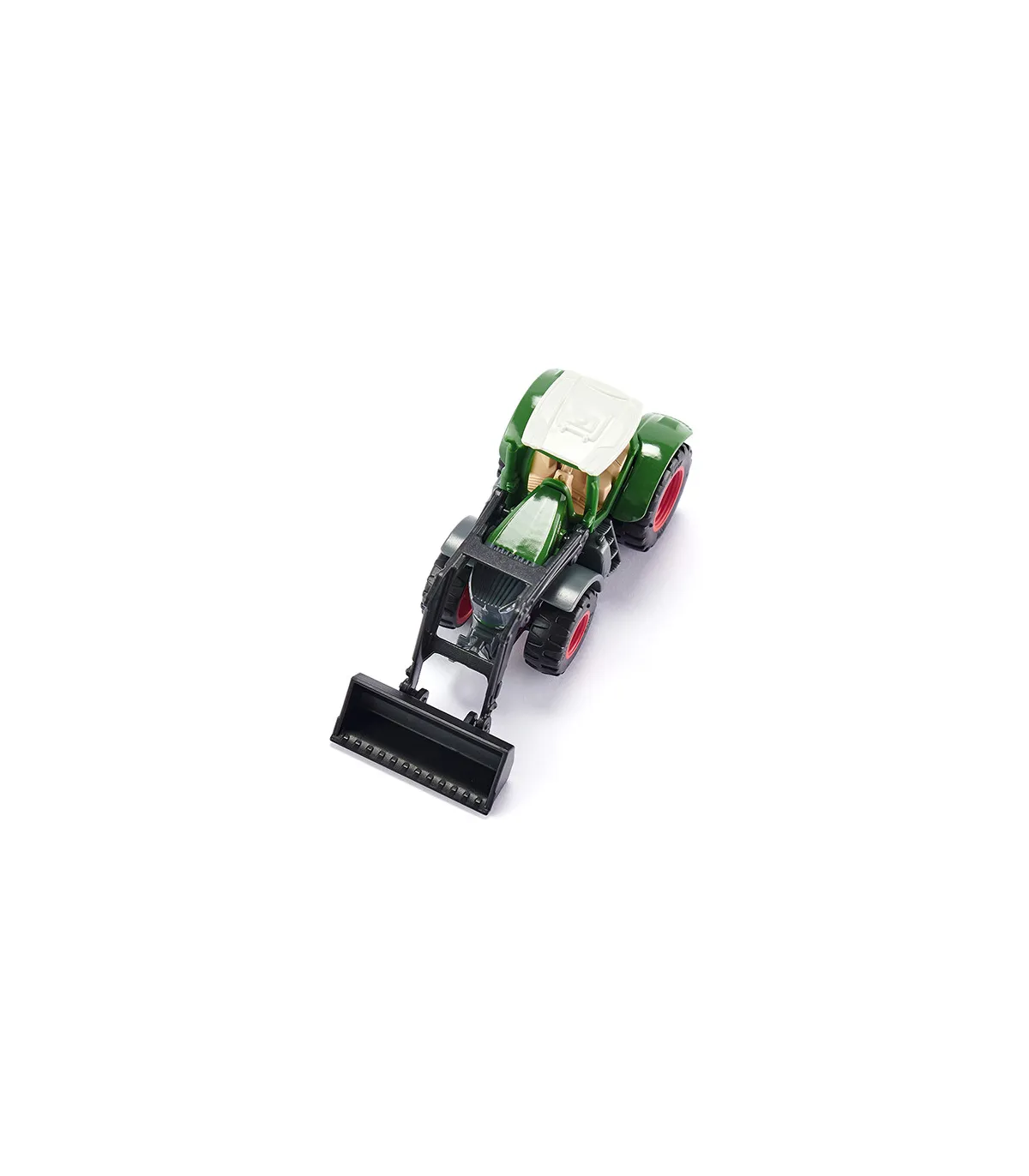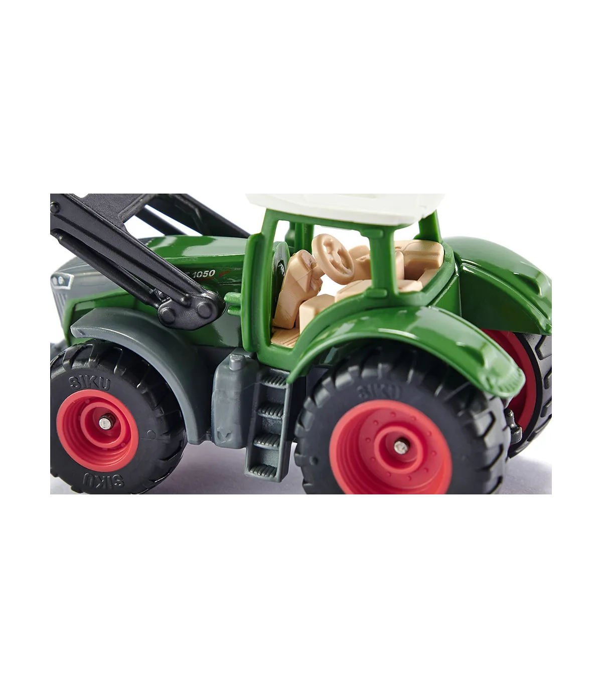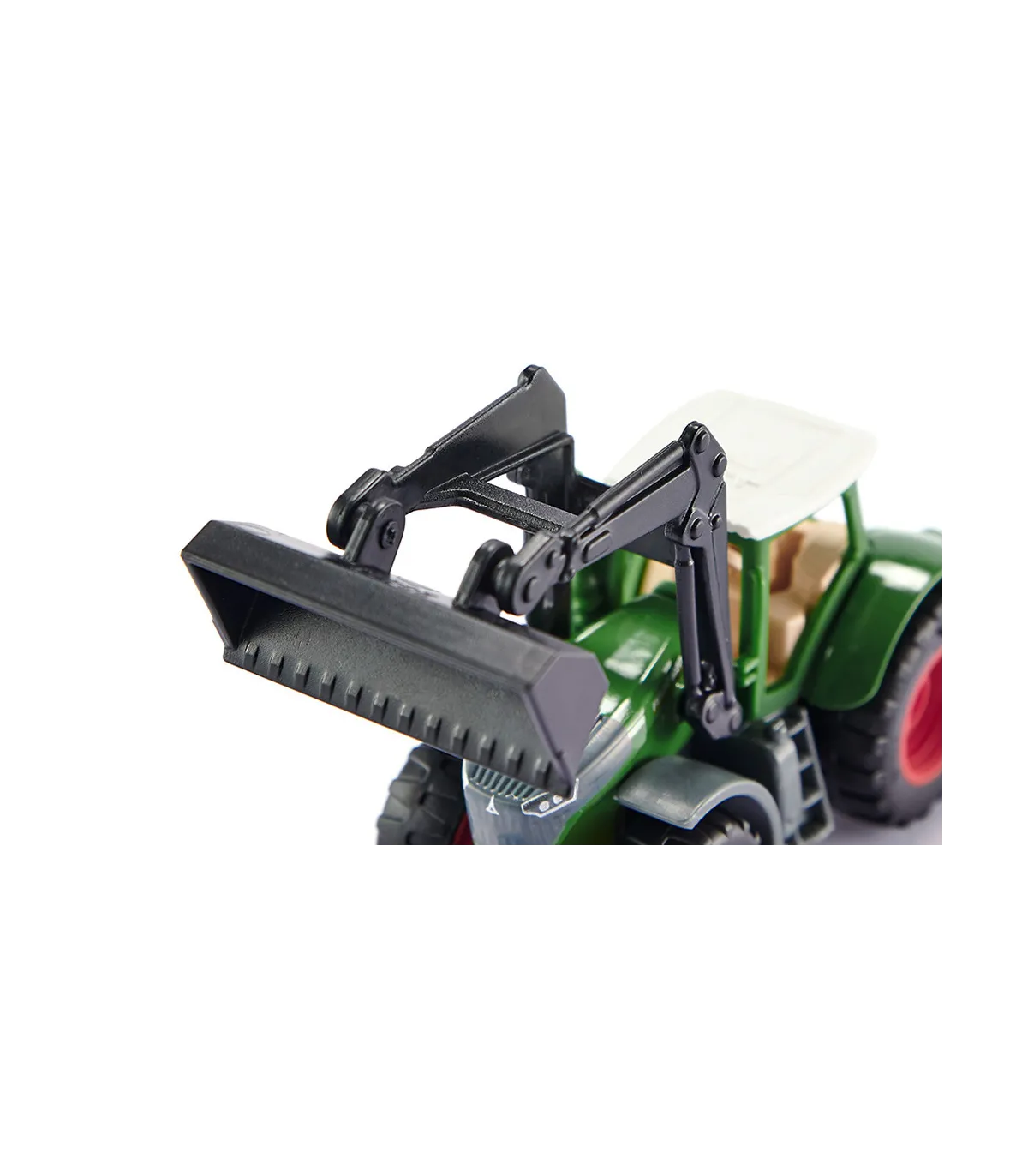 Para trabajos de carga rápida: carga de cereales y ensilaje, almacenamiento de pienso para el ganado o carga de tierra. El tractor Deutz-Fahr con cargador frontal es el implemento y tractor ideal para el jardín y el campo. El cargador frontal se puede mover hacia arriba y hacia abajo de manera realista y la cabina también se puede quitar. Muchos remolques siku se pueden acoplar al enganche de remolque. El tractor circula sobre neumáticos de goma con banda de rodadura agrícola.