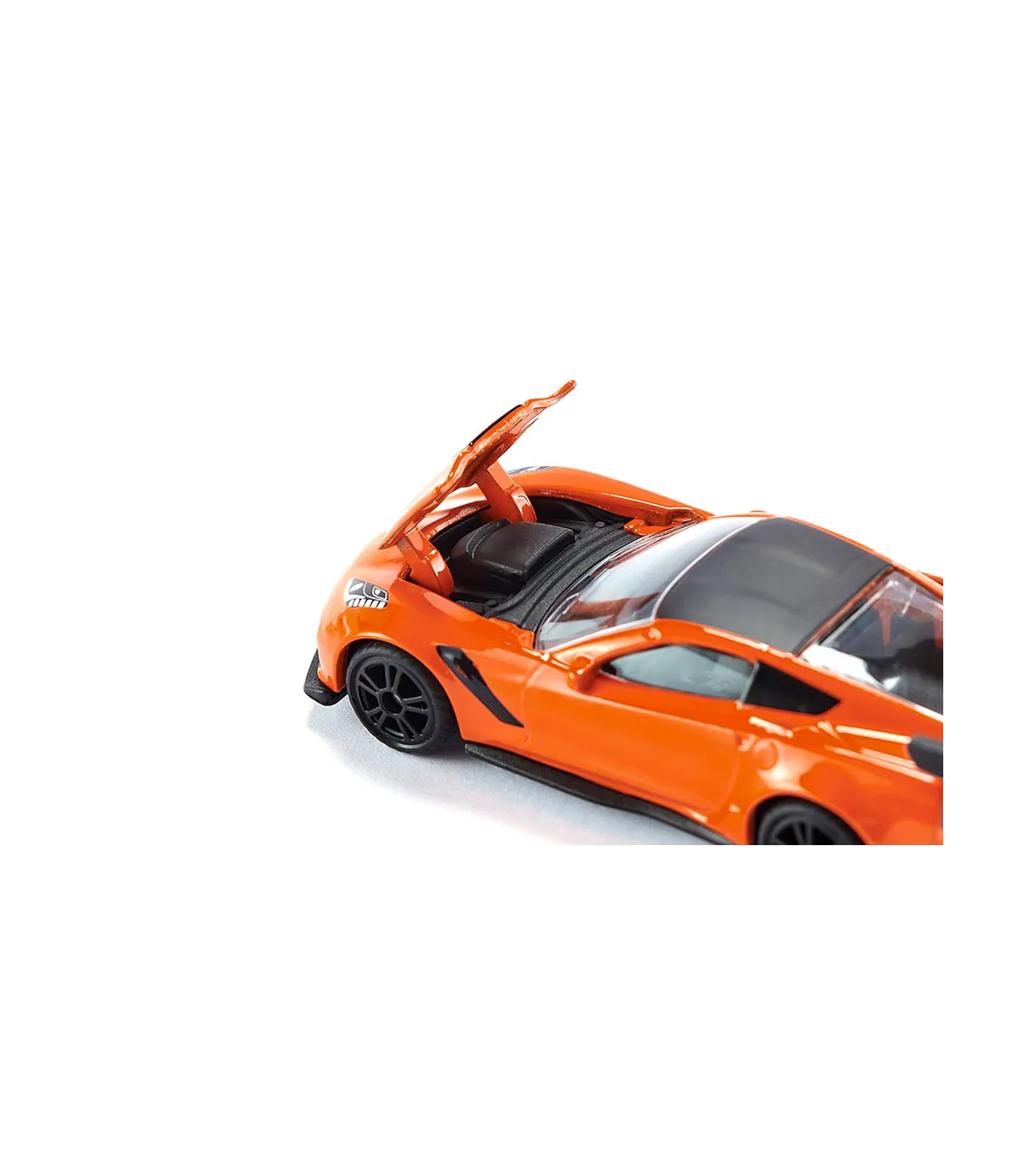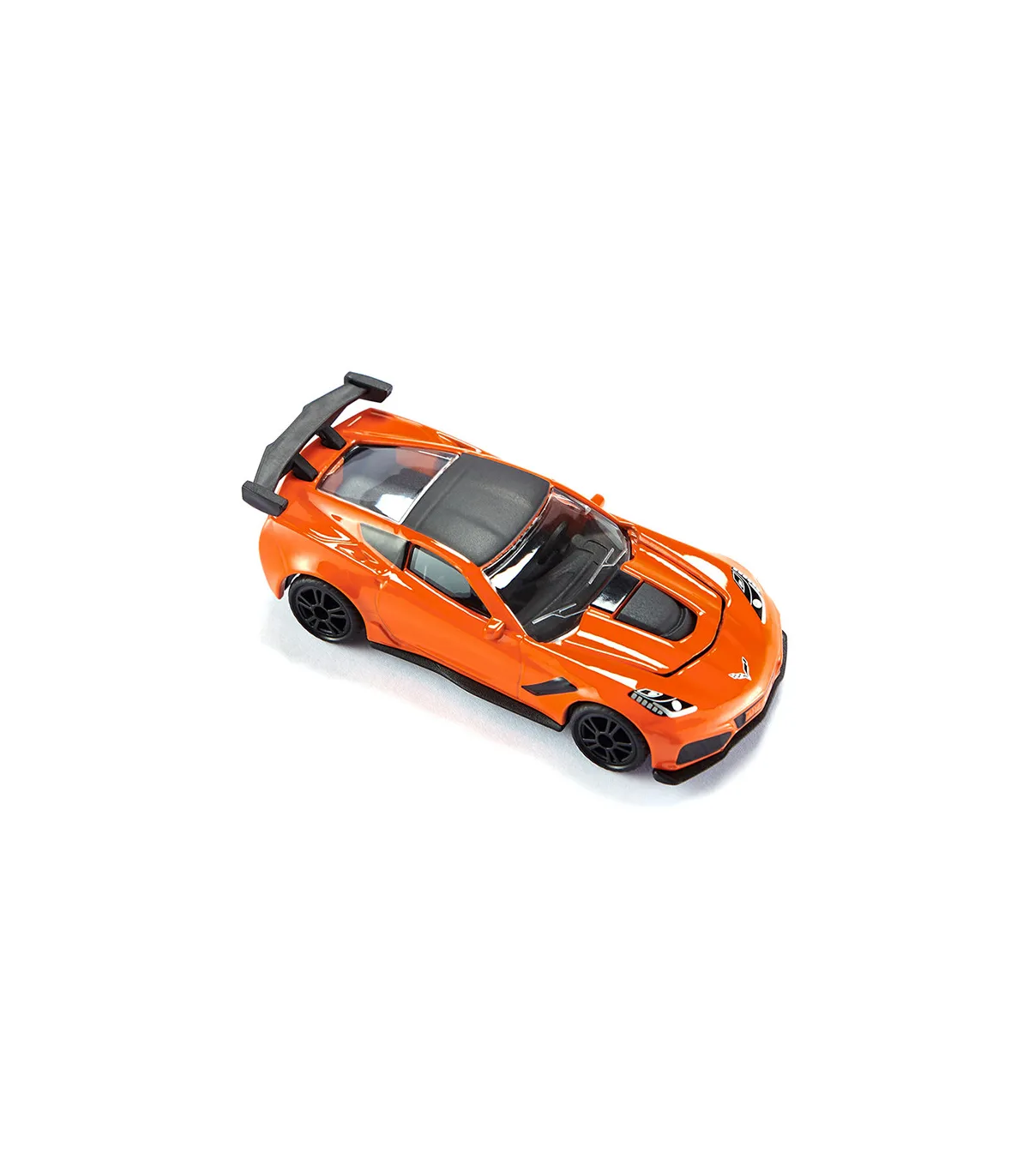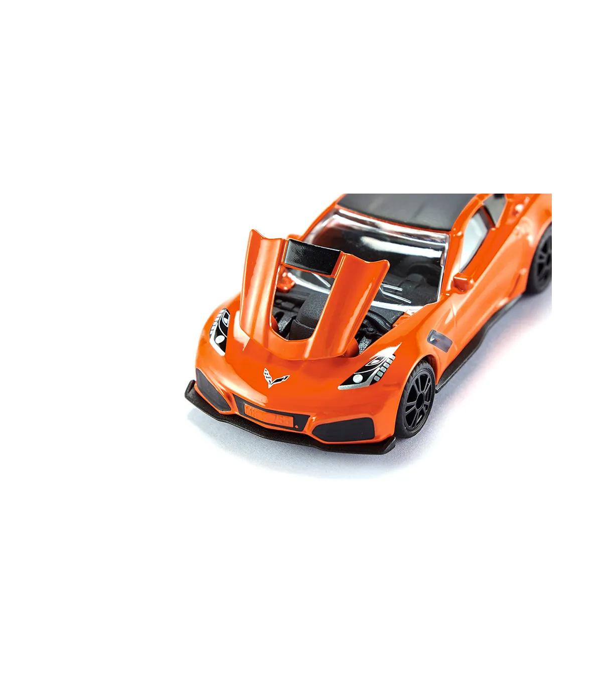 Coche musculoso con un factor sorpresa. El V8 de 6,2 litros del Chevrolet Corvette ZR1 produce 766 CV en el eje trasero. El resultado: 969 Nm de par y líneas negras en la carretera al acelerar, incluso con llantas deportivas con neumáticos de caucho. La propulsión del legendario muscle car americano sólo alcanza los 342 km/h. Siku pintó el modelo superior de la serie Z06 en el color naranja con el que se presentó el modelo en 2018. Y ahora: consigue el gran efecto sorpresa.