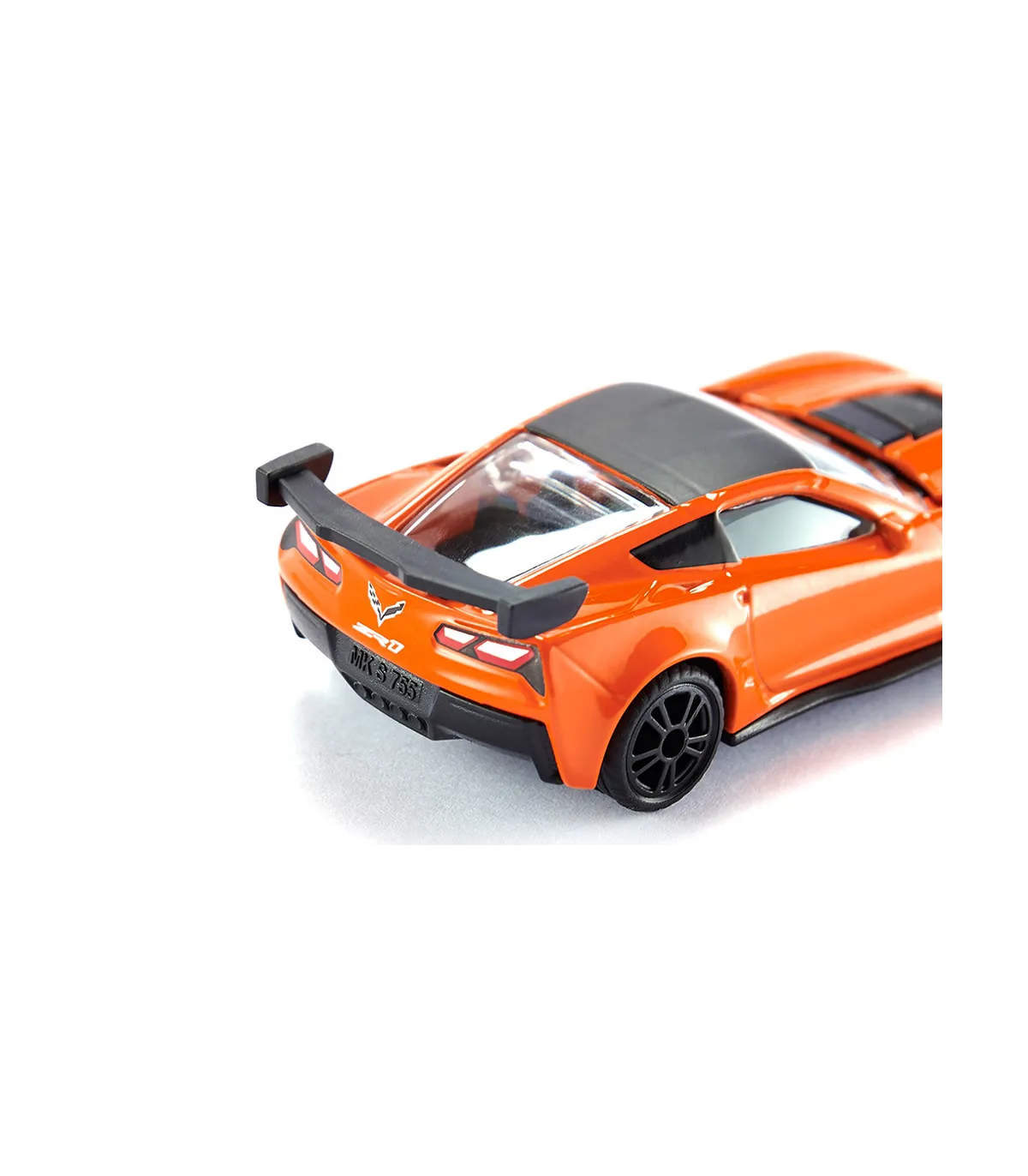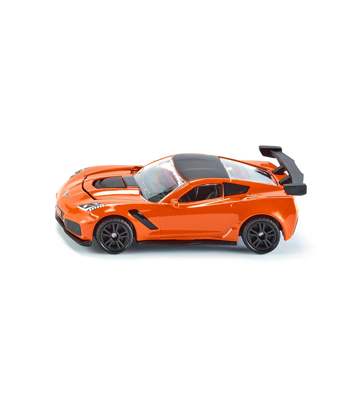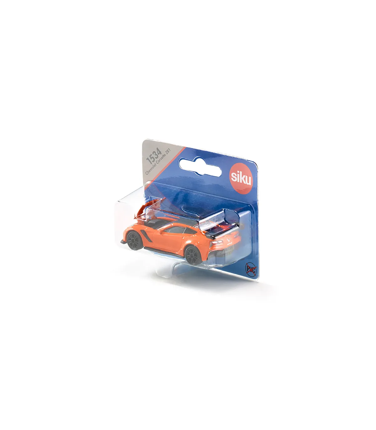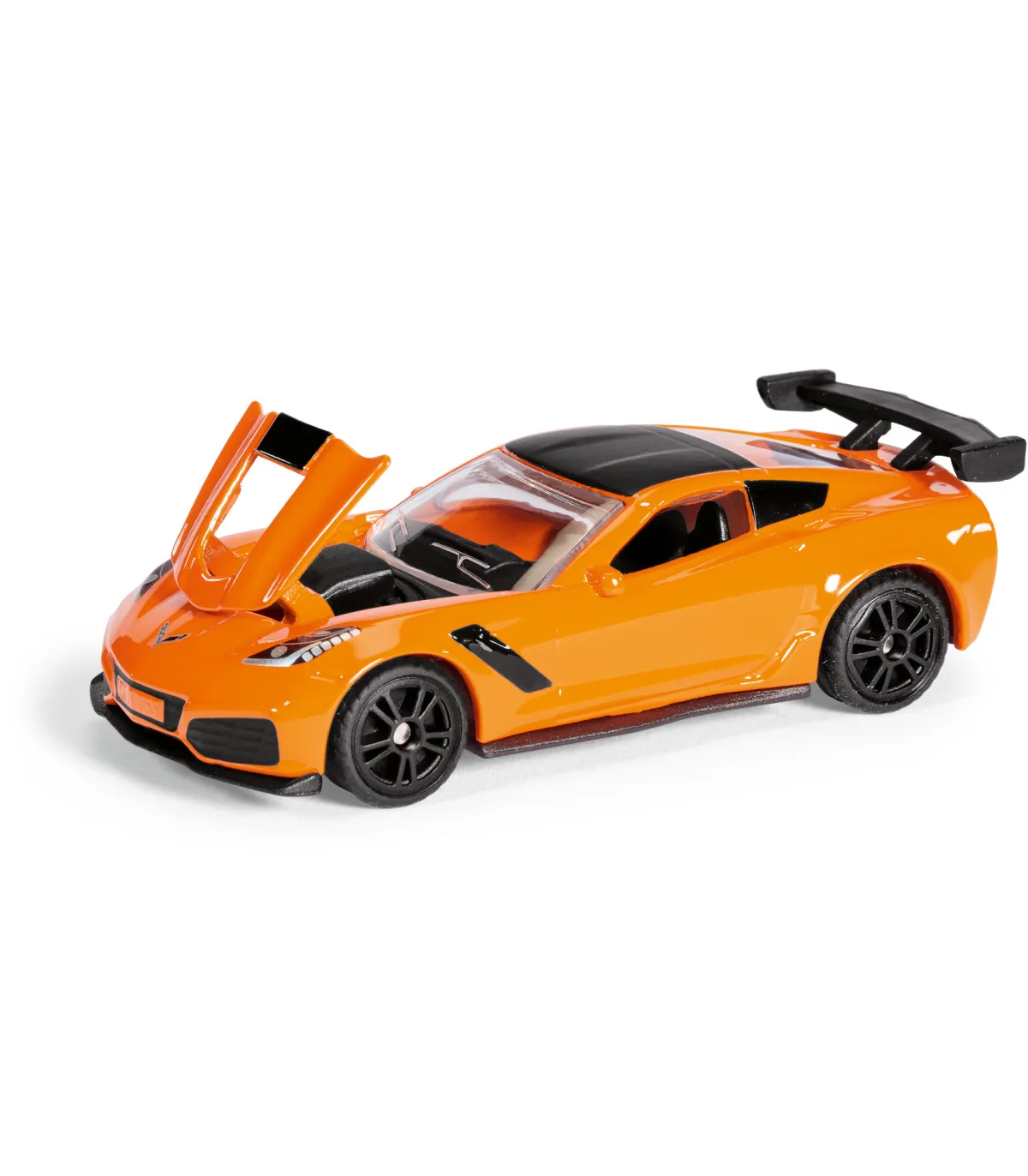 Coche musculoso con un factor sorpresa. El V8 de 6,2 litros del Chevrolet Corvette ZR1 produce 766 CV en el eje trasero. El resultado: 969 Nm de par y líneas negras en la carretera al acelerar, incluso con llantas deportivas con neumáticos de caucho. La propulsión del legendario muscle car americano sólo alcanza los 342 km/h. Siku pintó el modelo superior de la serie Z06 en el color naranja con el que se presentó el modelo en 2018. Y ahora: consigue el gran efecto sorpresa.