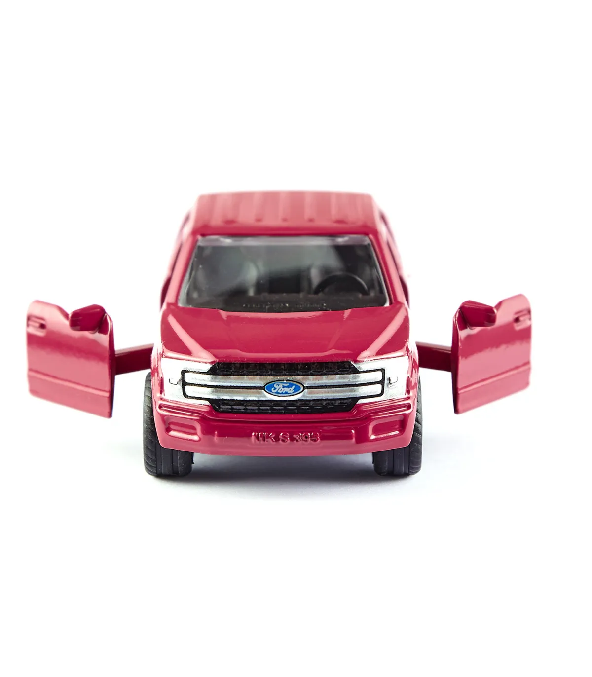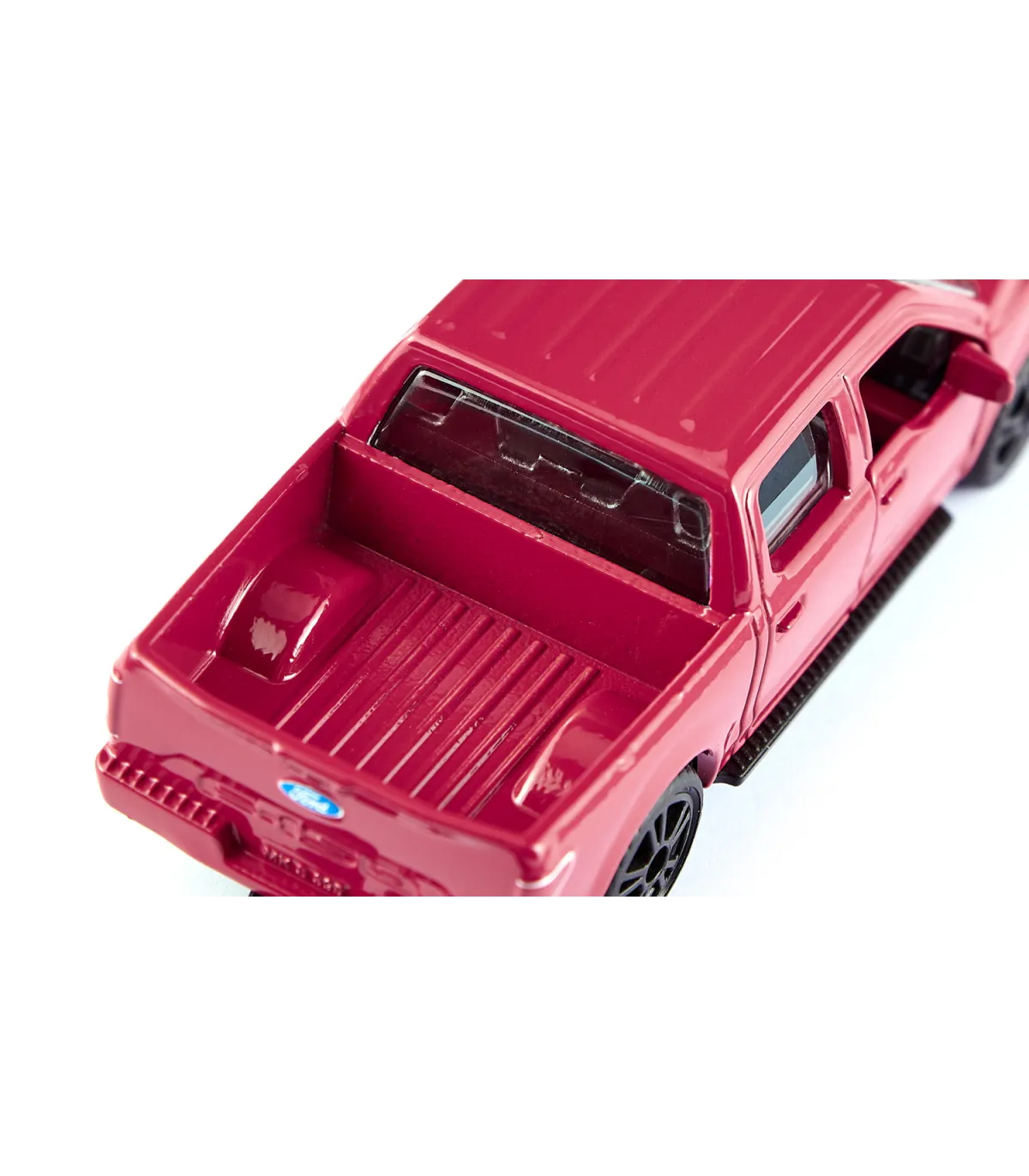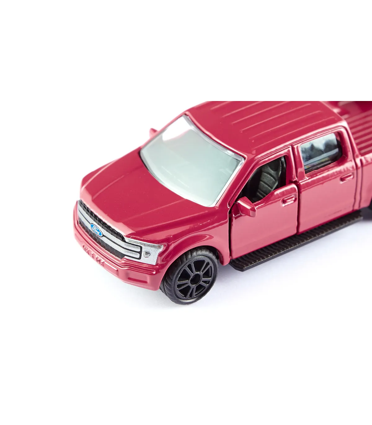 Camioneta para el estilo de vida americanoLa Ford F-150 ha sido el automóvil más vendido en EE. UU. durante más de 30 años. La camioneta se encuentra en su decimotercera generación desde 1948. El coche es cómodo, grande, robusto y, con su gran superficie de carga, muy popular, especialmente en las zonas rurales de EE.UU. Al igual que siku, normalmente se pide con enganche de remolque. Abra las puertas, dé un paso intermedio hacia la cabina del conductor y encienda el motor V8. El estilo de vida americano se vive con neumáticos de material engomado y llantas de diseño.