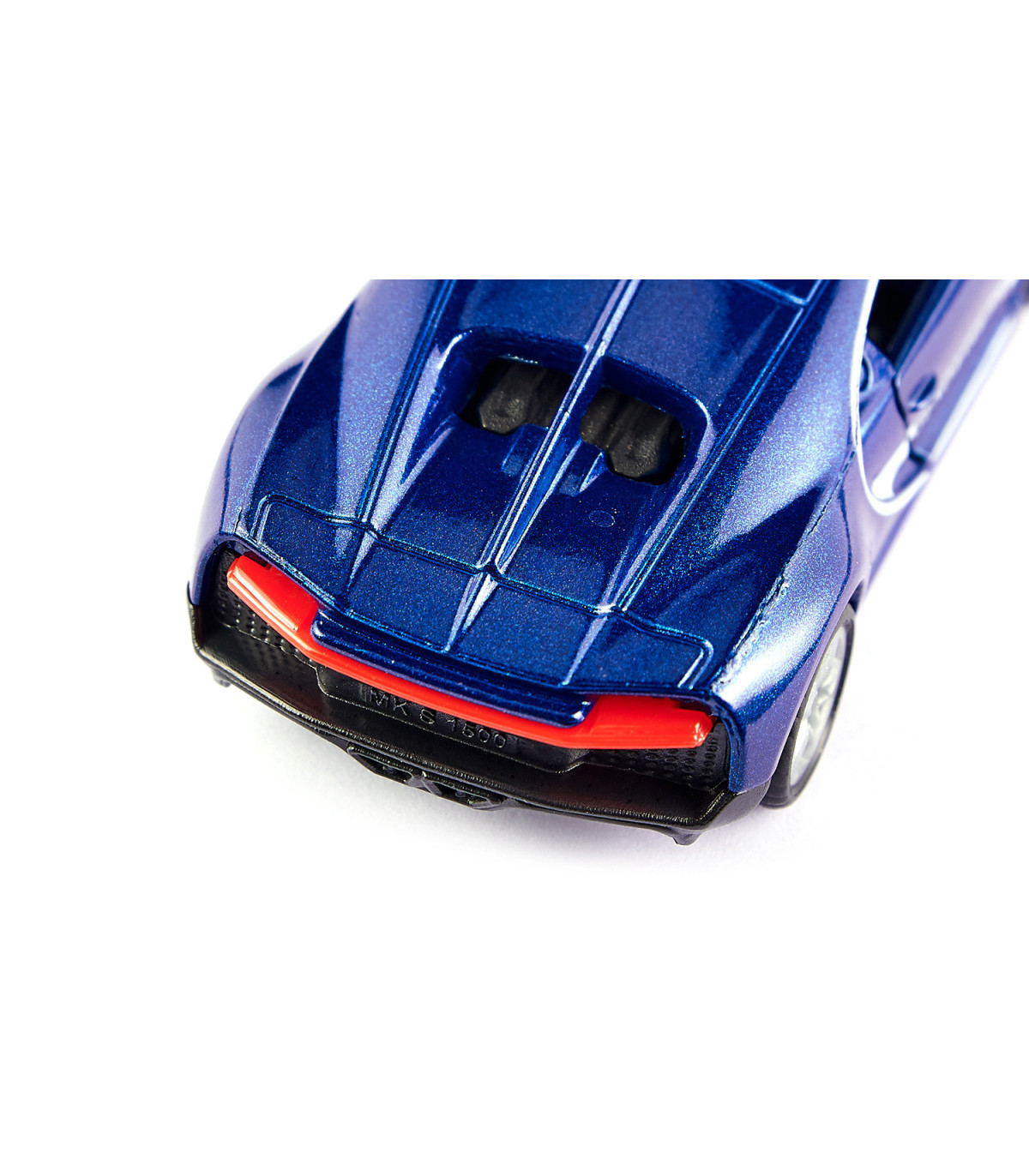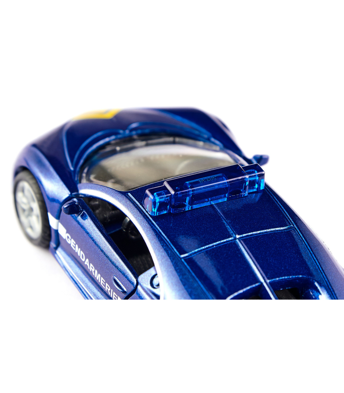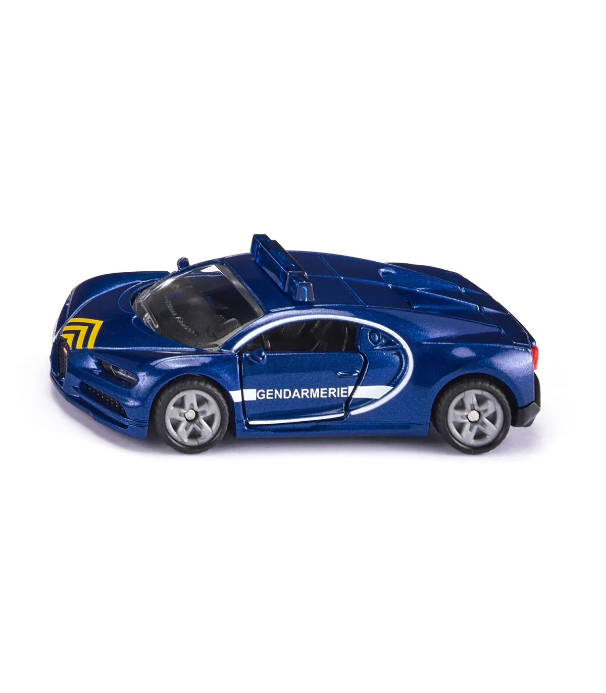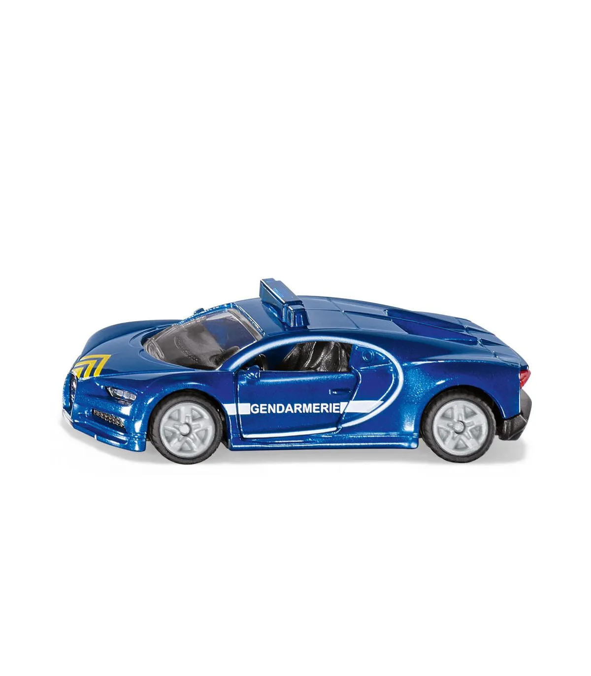 Más rápido de lo que permite la policíaUno, dos: el coche de policía más rápido del mundo alcanza los 100 km/h en 2,3 segundos y circula a 420 km/h. En Francia, el Bugatti Chiron sólo lo conducen funcionarios especialmente formados. La policía utiliza neumáticos especiales de material engomado en las llantas deportivas para perseguir a los infractores. El superdeportivo está pintado por siku con un diseño fiel al original.