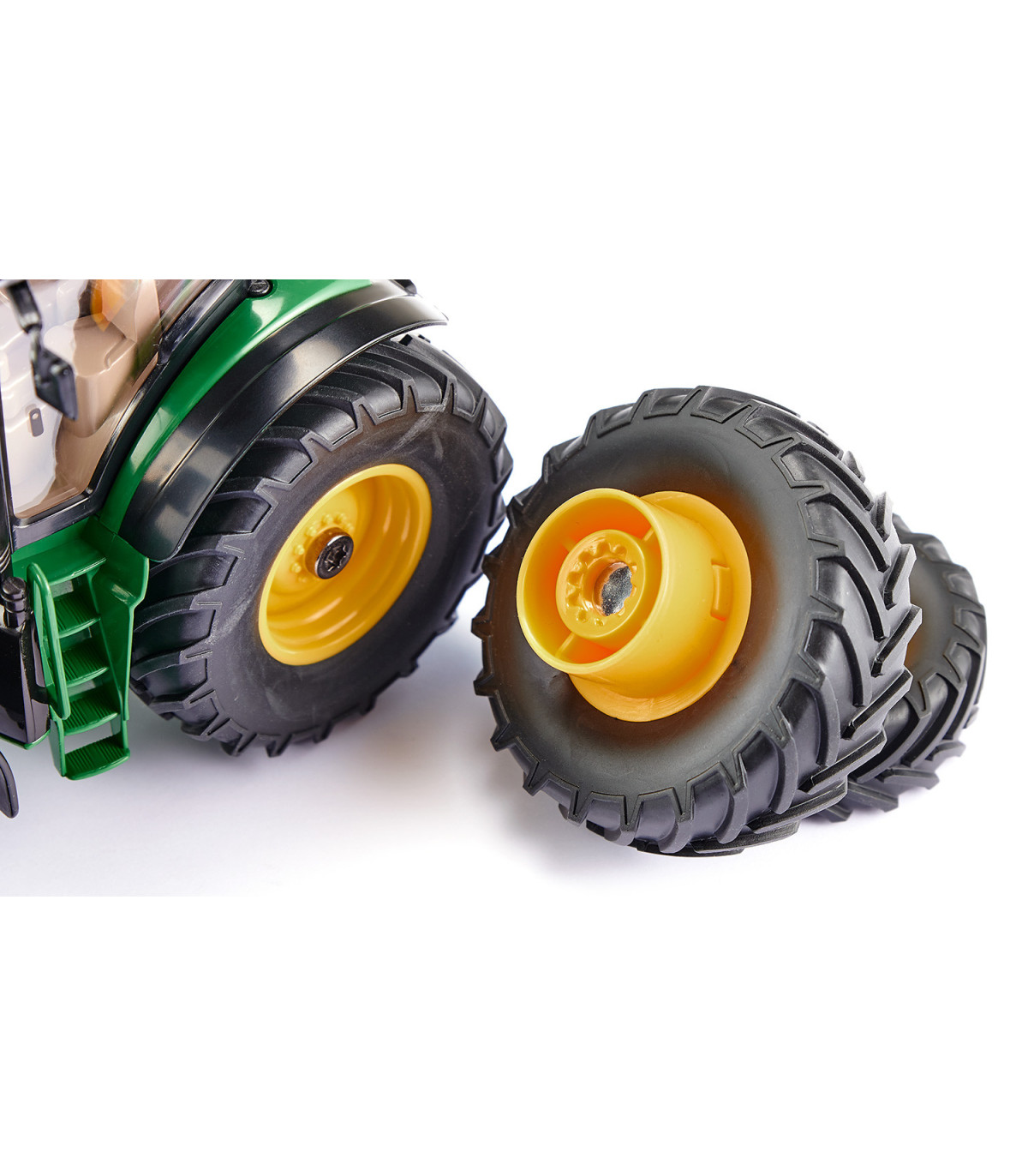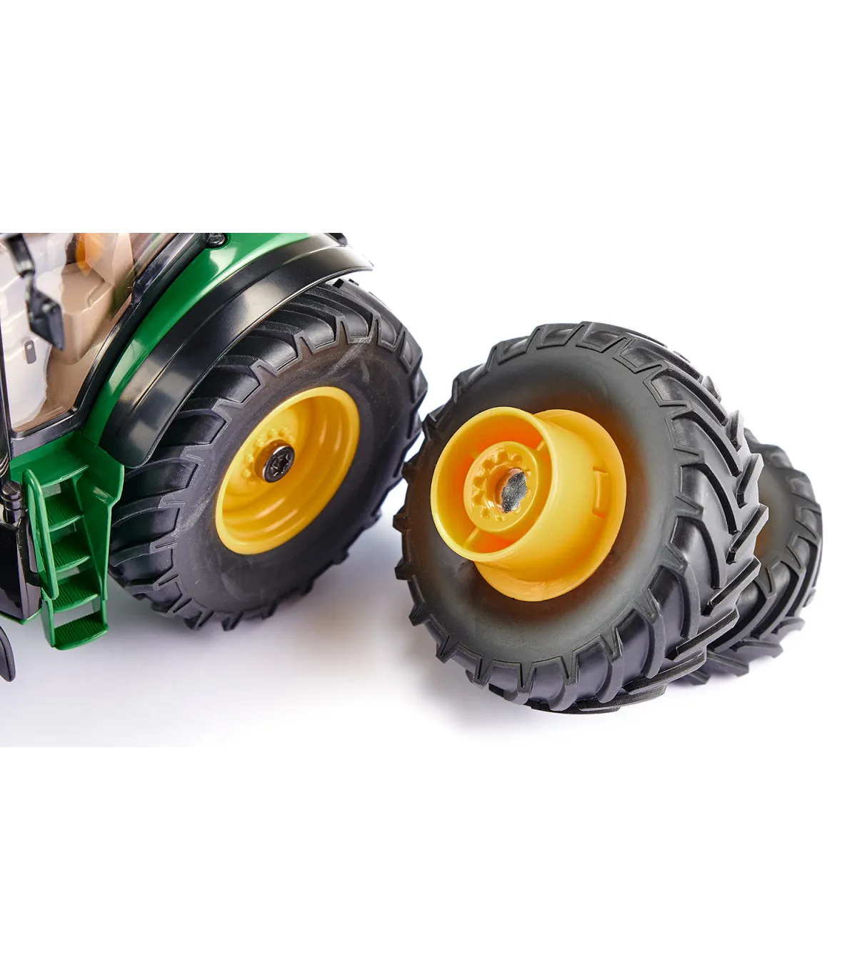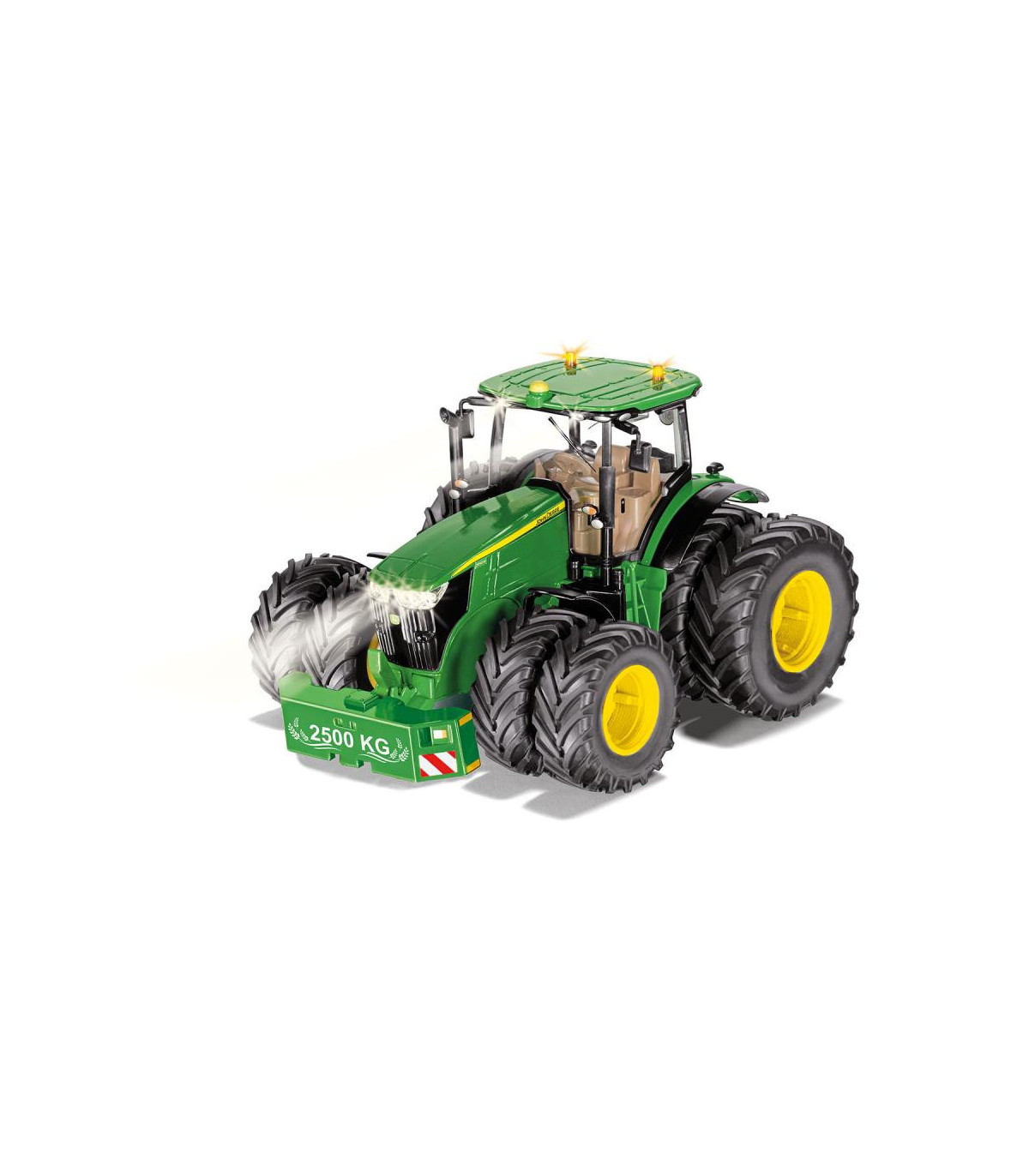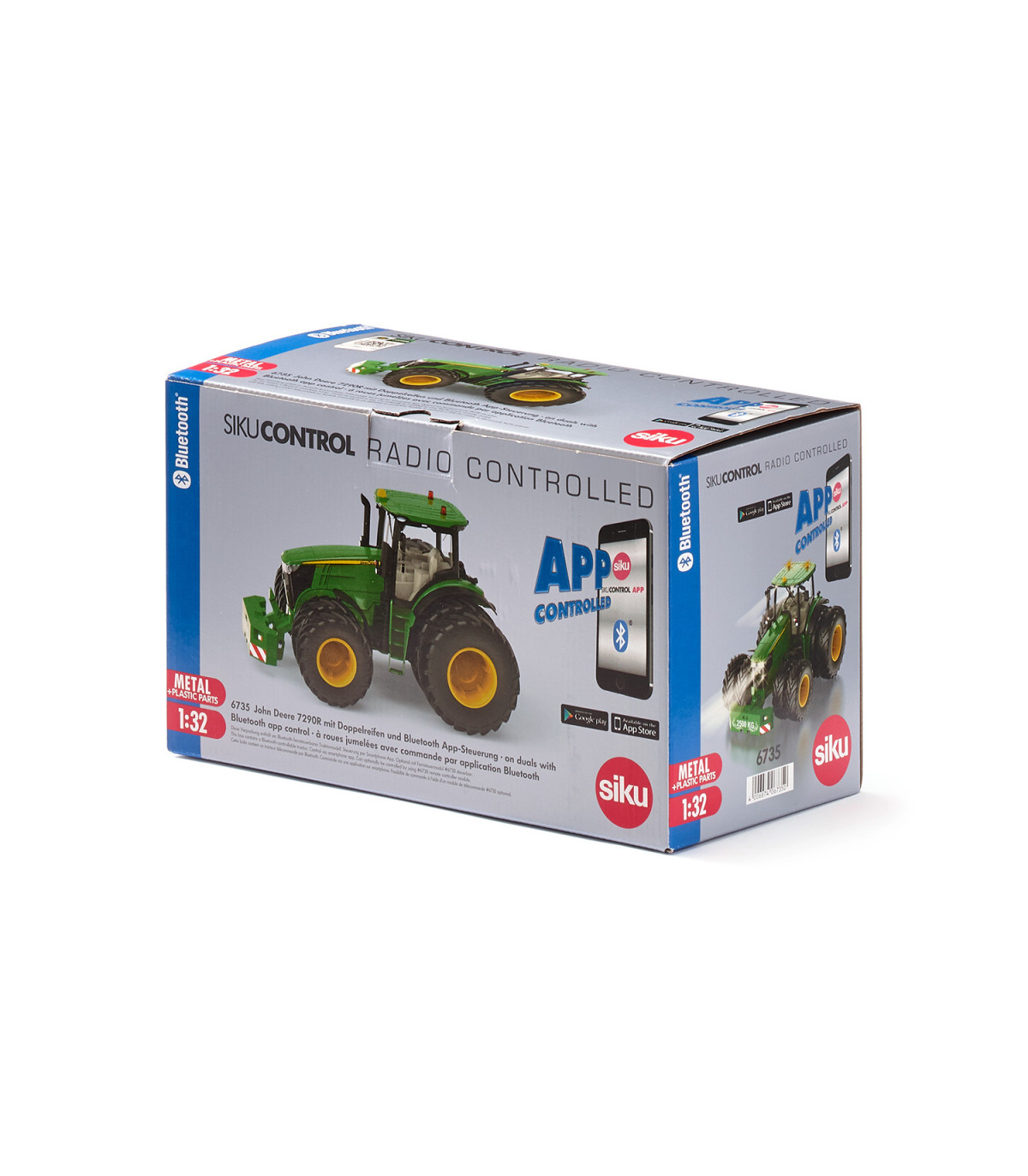 Tractor controlado por aplicación con neumáticos gemelosLos tractores modernos están equipados con tecnología digital para cultivar la superficie de la manera más eficiente posible. El nuevo SIKUCONTROL John Deere 7290R también utiliza la última tecnología digital: el tractor se controla con un teléfono inteligente o una tableta. La APP SIKUCONTROL y la tecnología Bluetooth lo hacen posible. Las numerosas funciones del tractor prometen diversión para los conductores de tractores jóvenes y con espíritu joven.