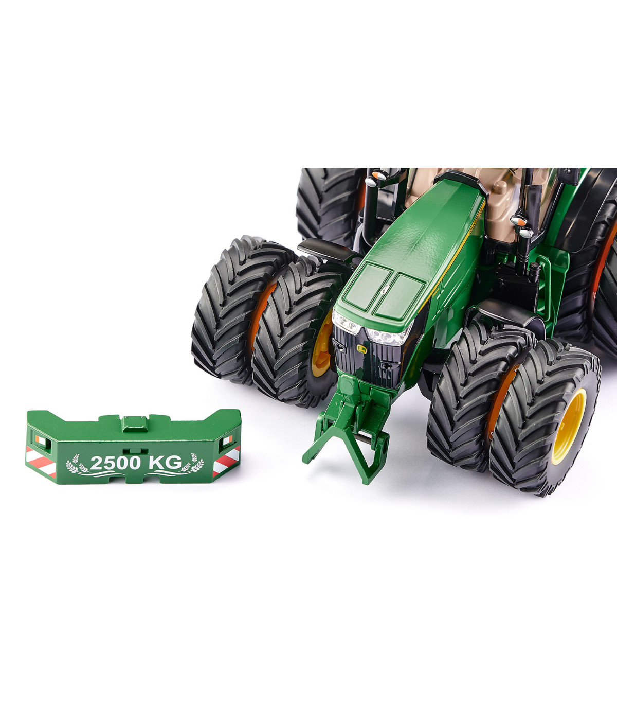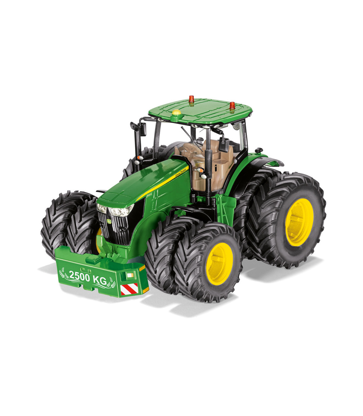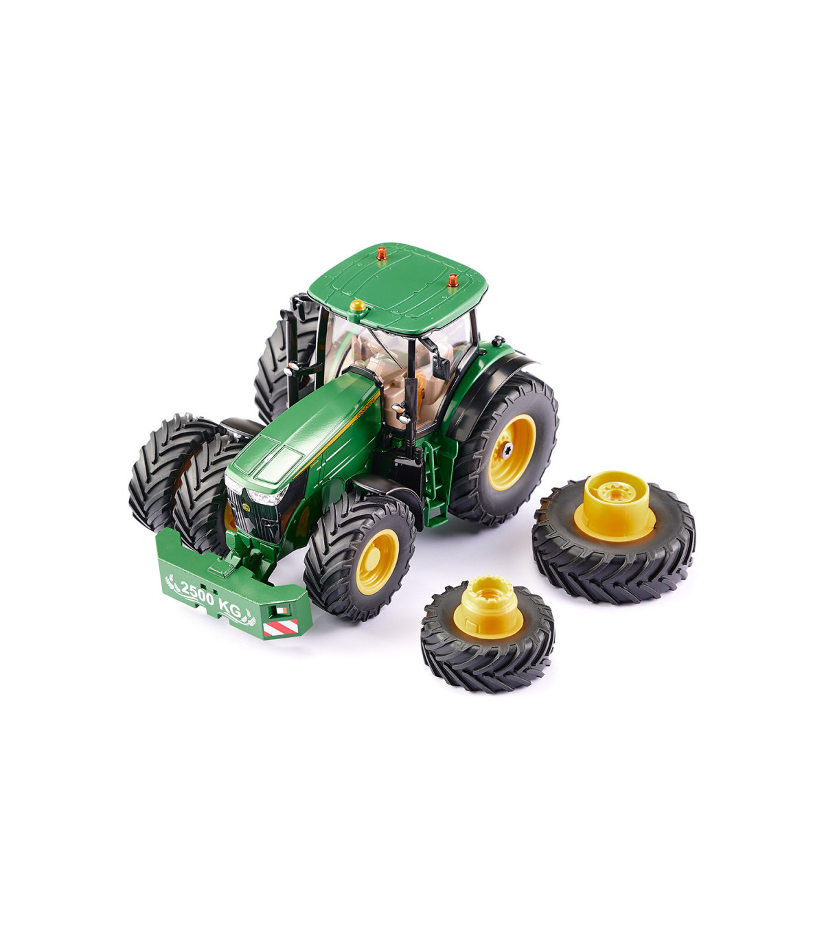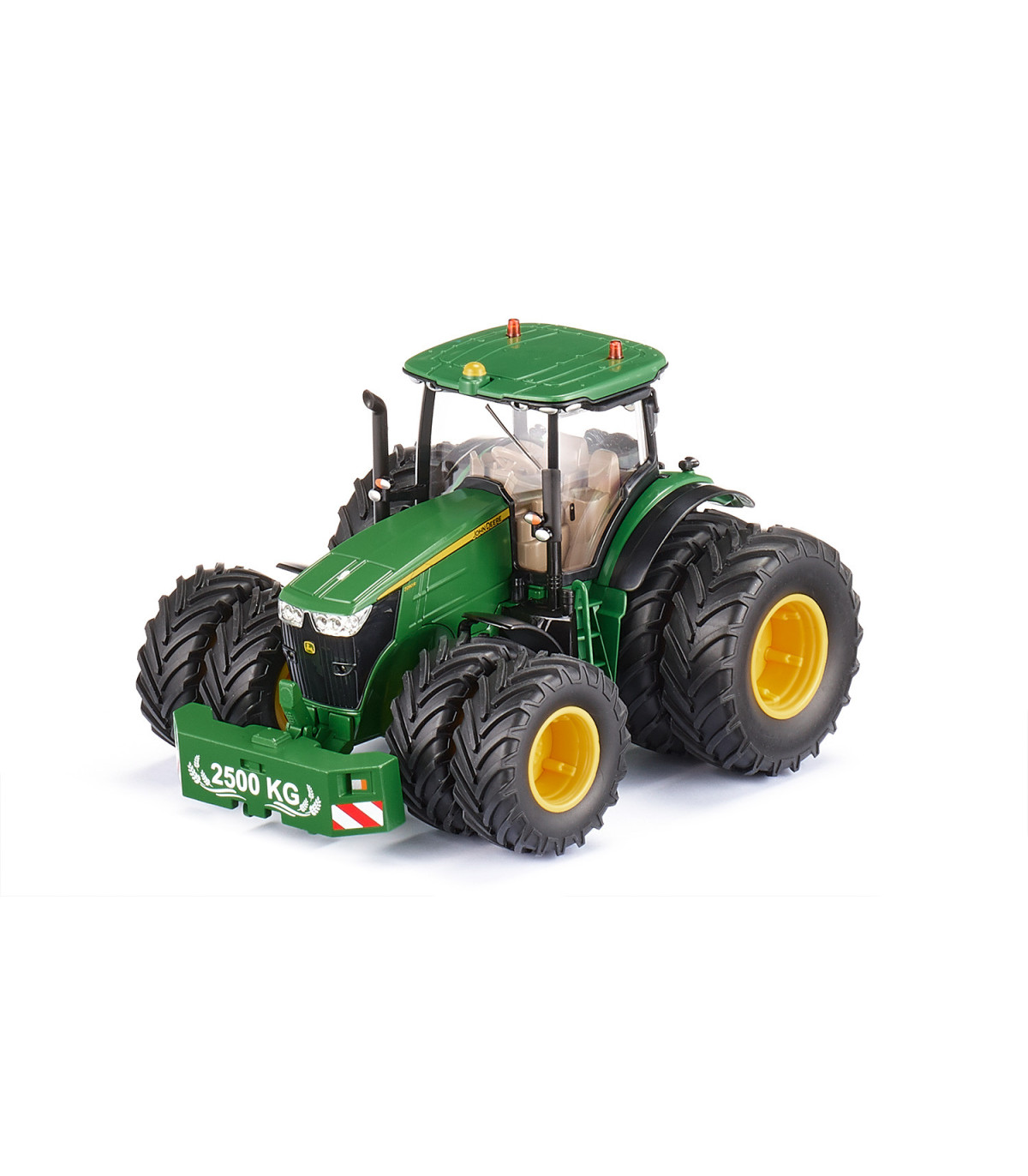 Tractor controlado por aplicación con neumáticos gemelosLos tractores modernos están equipados con tecnología digital para cultivar la superficie de la manera más eficiente posible. El nuevo SIKUCONTROL John Deere 7290R también utiliza la última tecnología digital: el tractor se controla con un teléfono inteligente o una tableta. La APP SIKUCONTROL y la tecnología Bluetooth lo hacen posible. Las numerosas funciones del tractor prometen diversión para los conductores de tractores jóvenes y con espíritu joven.