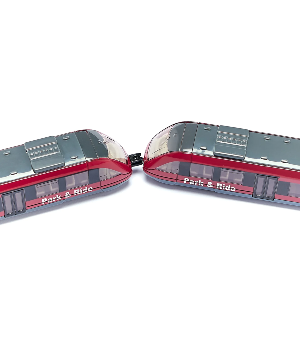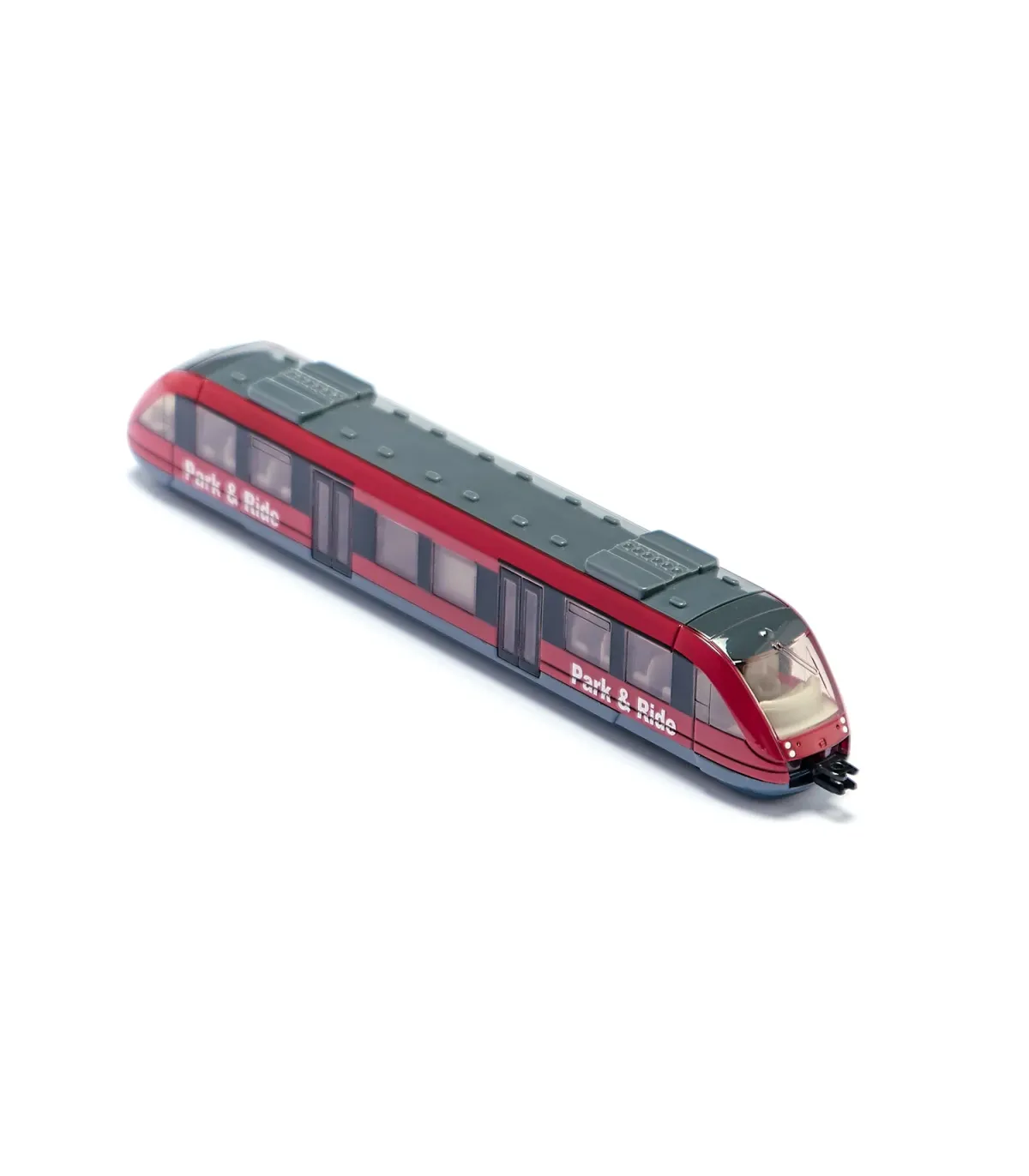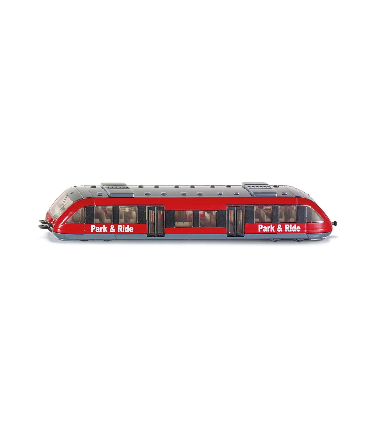 Para los niños y coleccionistas de SIKU ya no es un problema cambiarse al transporte público, porque con el tren local el tren ahora también está incluido en el ciclo del juego. Una característica especial de este modelo de metal, muy detallado, son los acoplamientos delanteros y traseros. Estos permiten acoplar varios vagones para formar un tren de cualquier longitud.