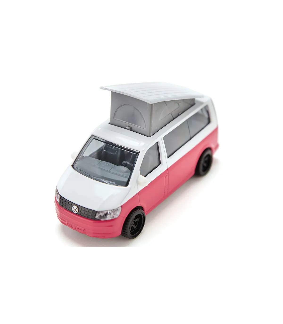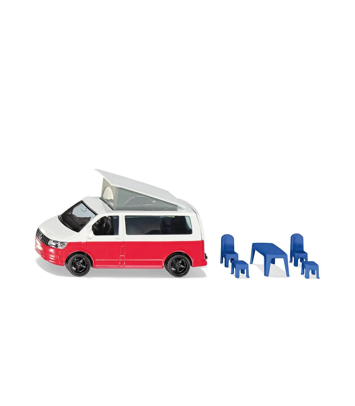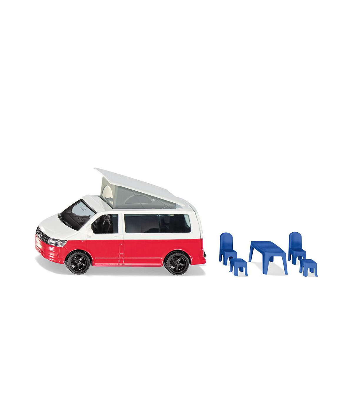Libertad sobre cuatro ruedas: Duerme bajo las estrellas y despiértate con el sonido del mar, todo desde la comodidad de tu propio coche. Esto es lo que representa el VW California desde hace 30 años. La furgoneta de camping es cómoda para largas distancias, lo suficientemente compacta para excursiones por la ciudad y la montaña y lo suficientemente independiente para acampar en cualquier lugar. Levante el techo, abra el portón trasero, coloque la mesa, las sillas y los taburetes y disfrute de la libertad. Siku entrega esta autocaravana de culto con una moderna pintura bicolor y con enganche para remolque y con ruedas también desmontables.