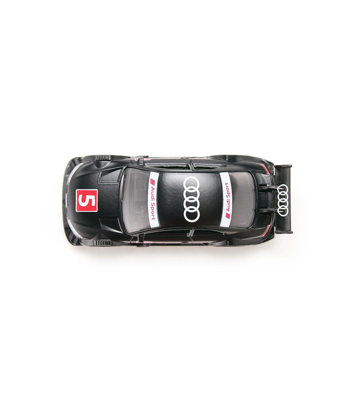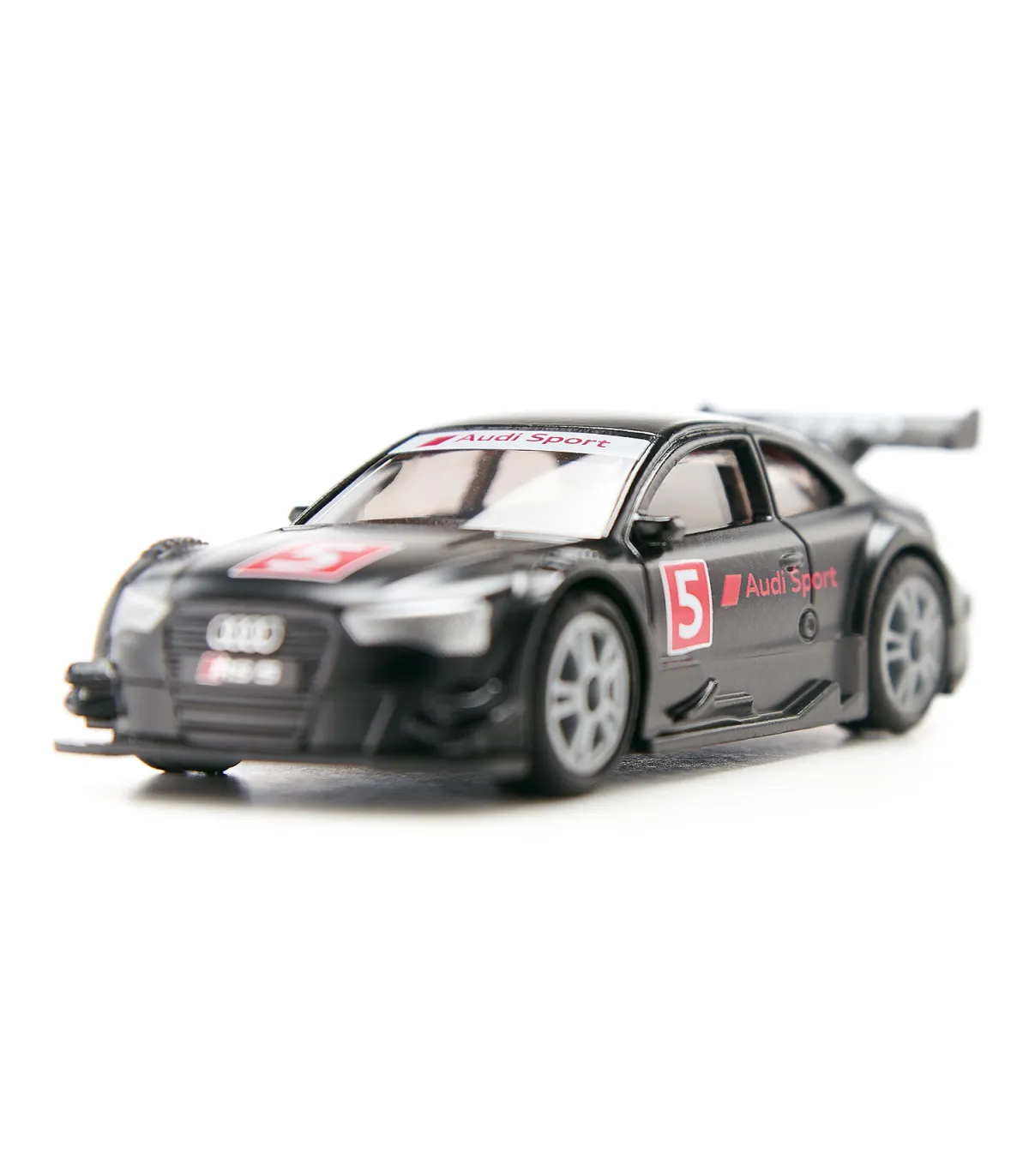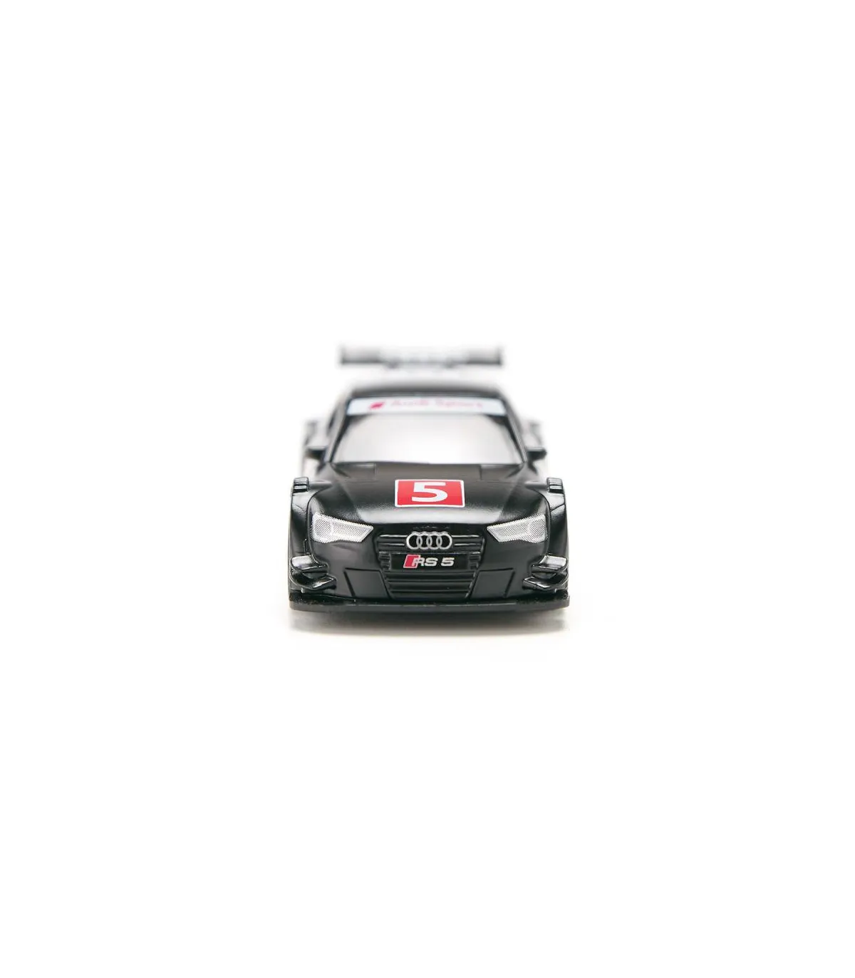Cuatro anillos para la victoriaAudi ha ganado el campeonato de pilotos y constructores con el Audi RS 5 Racing en el Campeonato Alemán de Turismos (DTM). El coche de los cuatro aros ha ido de victoria en victoria. Debajo del monocasco de fibra de carbono y la jaula de acero se esconde pura tecnología de competición: un motor turbo de 8 cilindros con más de 460 CV. En siku, el ganador de la serie llega a la salida vestido de negro mate, con un gran alerón trasero y con una elaborada impresión.