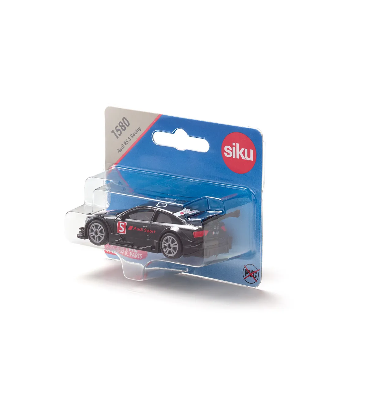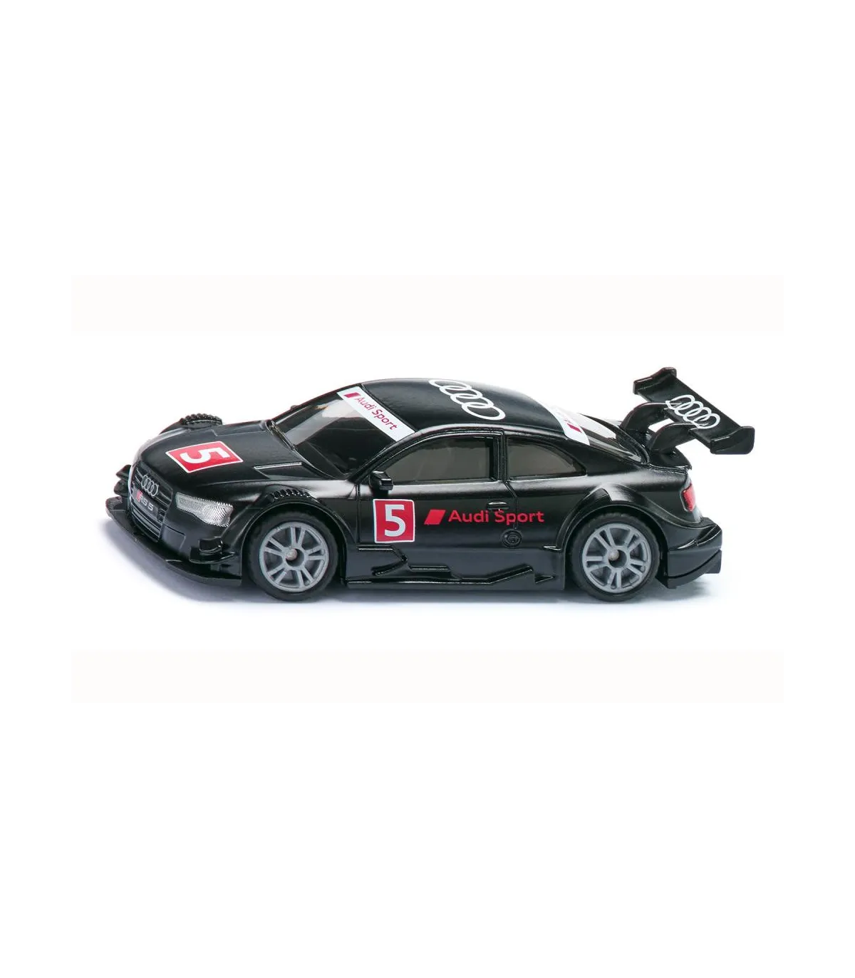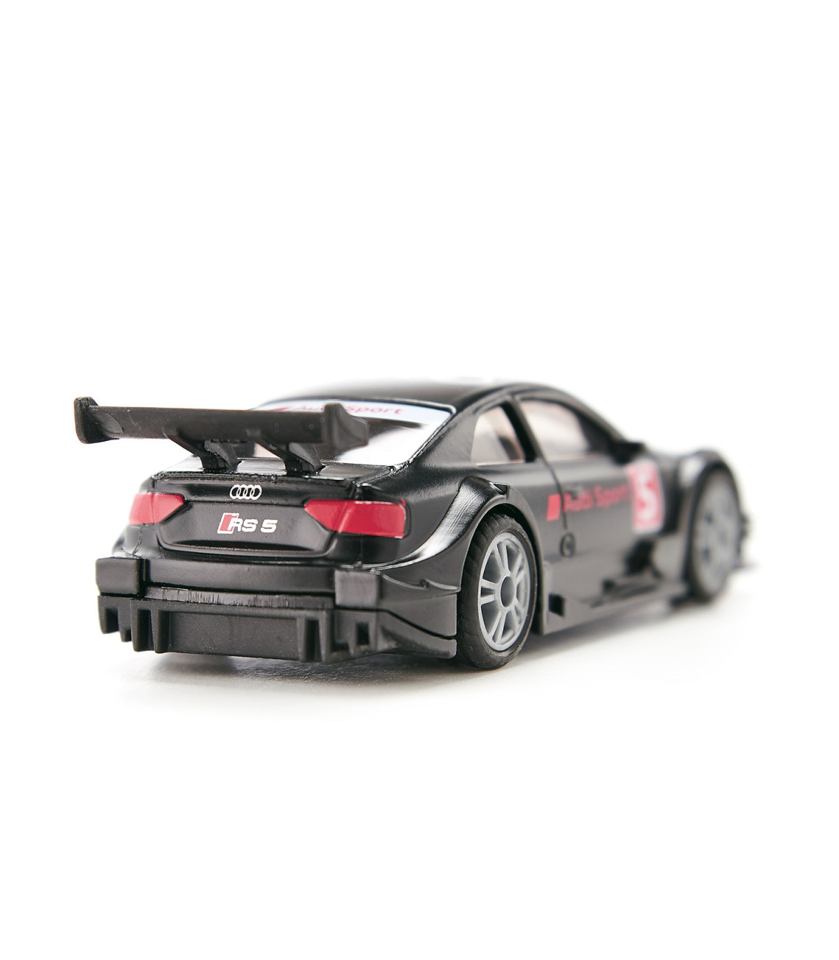 Cuatro anillos para la victoriaAudi ha ganado el campeonato de pilotos y constructores con el Audi RS 5 Racing en el Campeonato Alemán de Turismos (DTM). El coche de los cuatro aros ha ido de victoria en victoria. Debajo del monocasco de fibra de carbono y la jaula de acero se esconde pura tecnología de competición: un motor turbo de 8 cilindros con más de 460 CV. En siku, el ganador de la serie llega a la salida vestido de negro mate, con un gran alerón trasero y con una elaborada impresión.