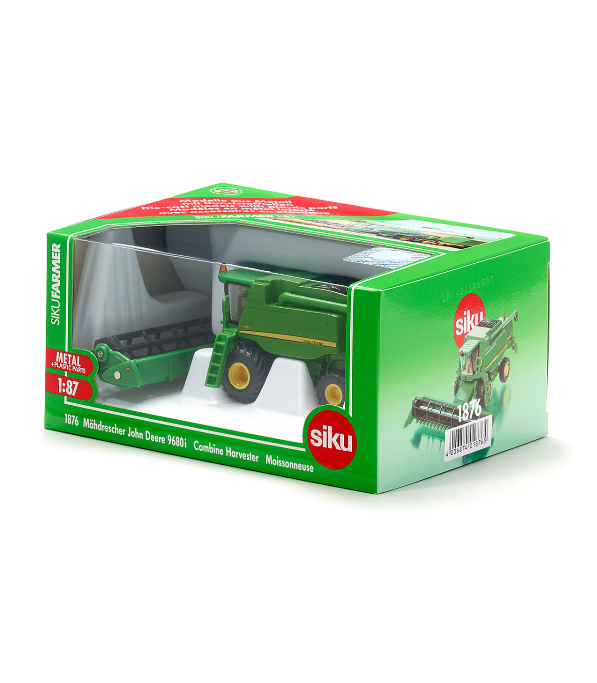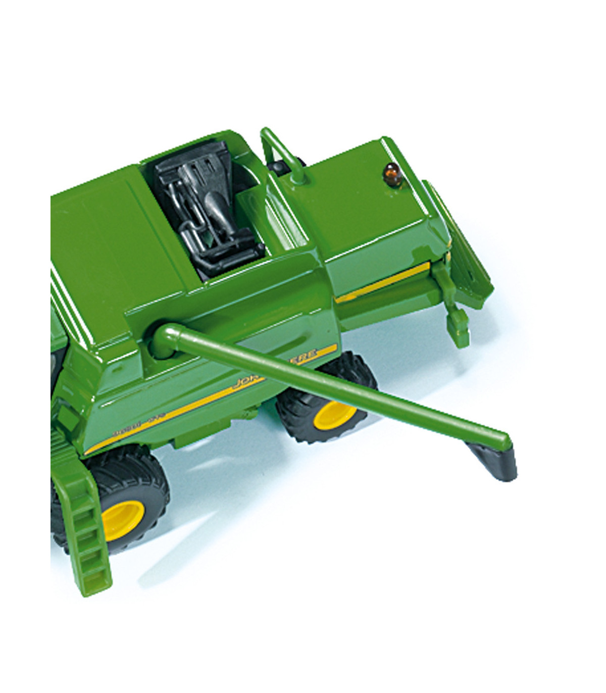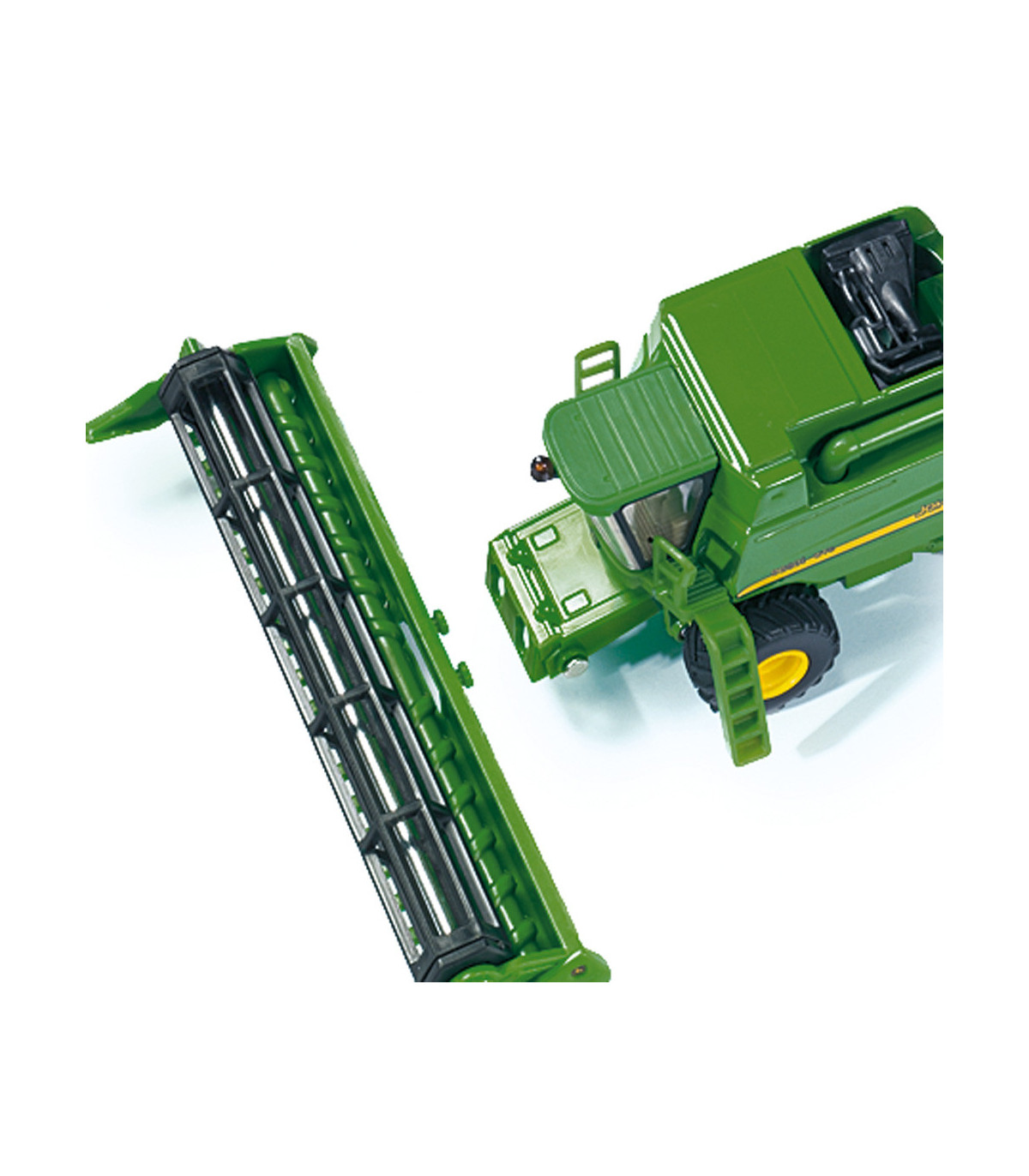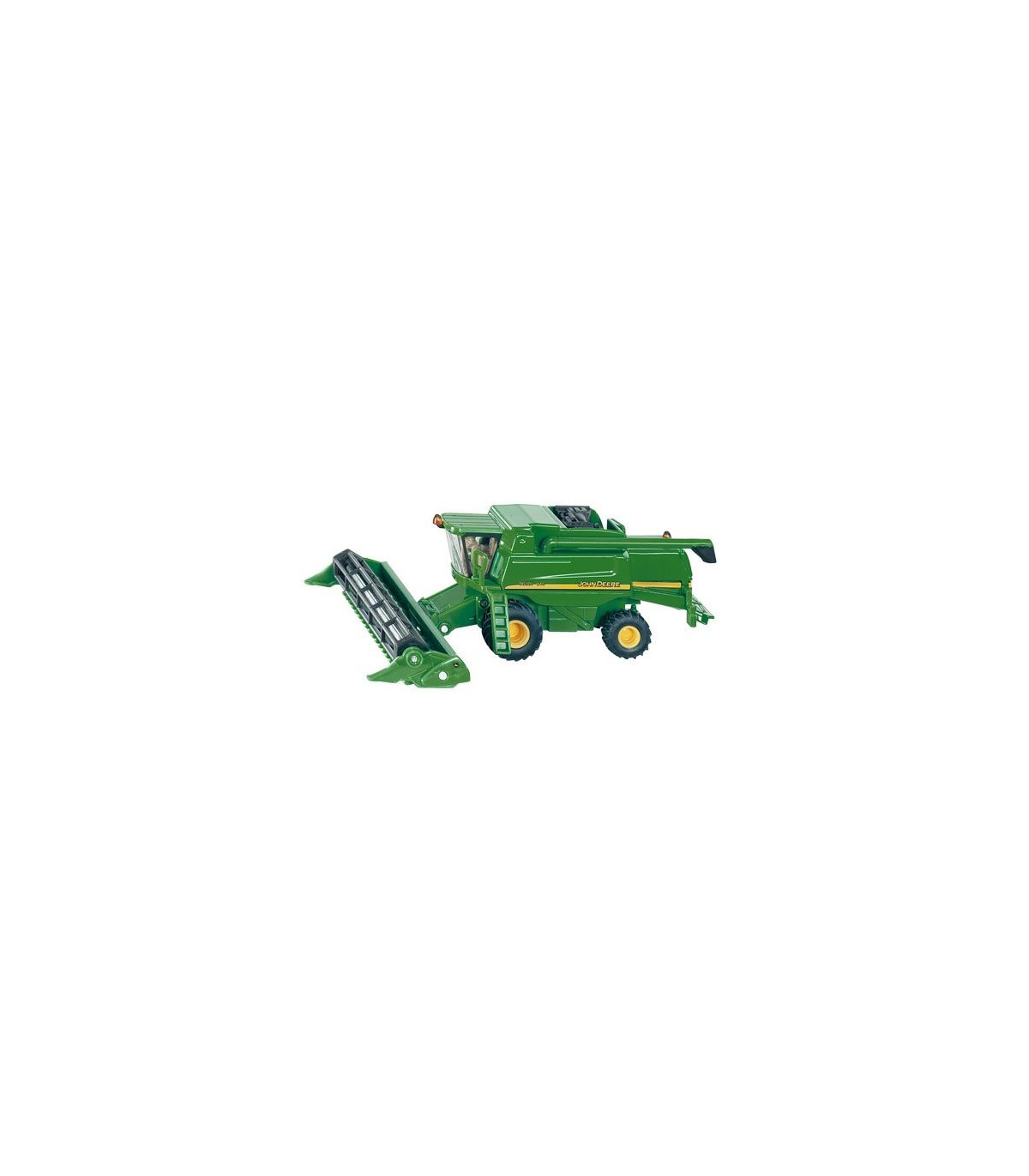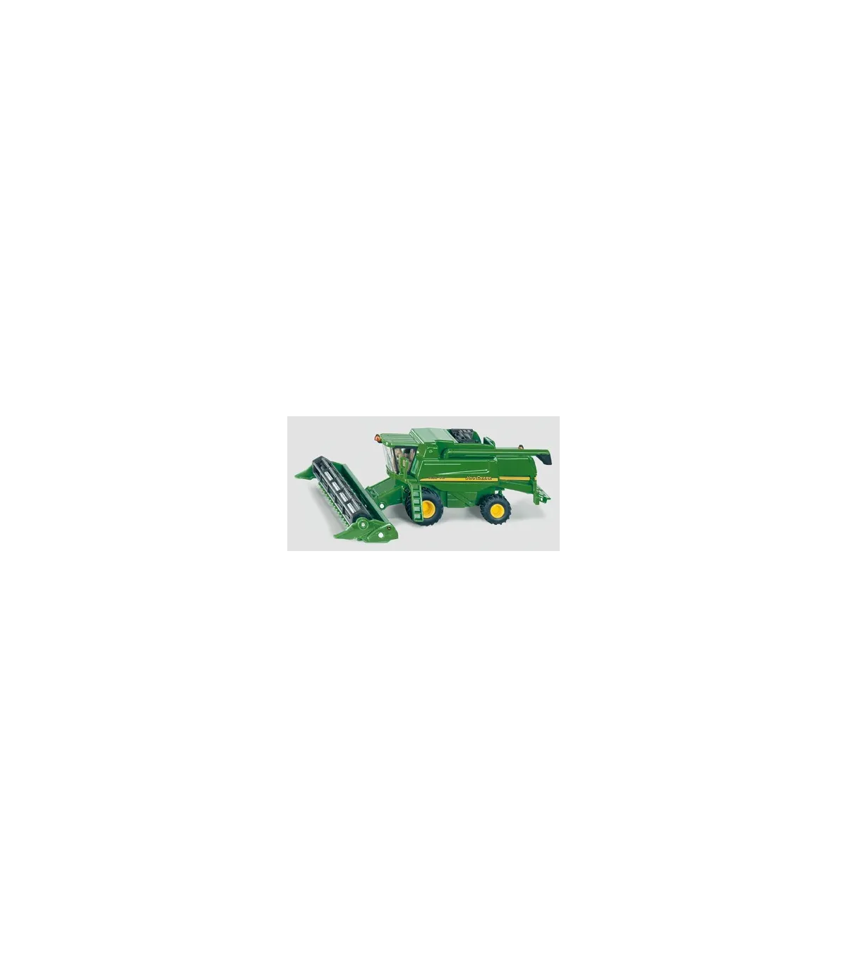 La cosechadora John Deere T670i más grande producida en Europa fue la inspiración para este modelo 1:87. El tamaño del original se desprende claramente de las dimensiones de este modelo, que está en la típica escala HO. El vehículo, fabricado casi en su totalidad en metal, está equipado con ruedas móviles cuyas llantas y neumáticos han sido fielmente reproducidos. La máquina, equipada con una unidad de corte móvil y extraíble, es un modelo muy maniobrable y fácil de usar. El vehículo está impreso fielmente al original y es una joya para cualquier escaparate de coleccionista, granja infantil o sistema ferroviario en miniatura.