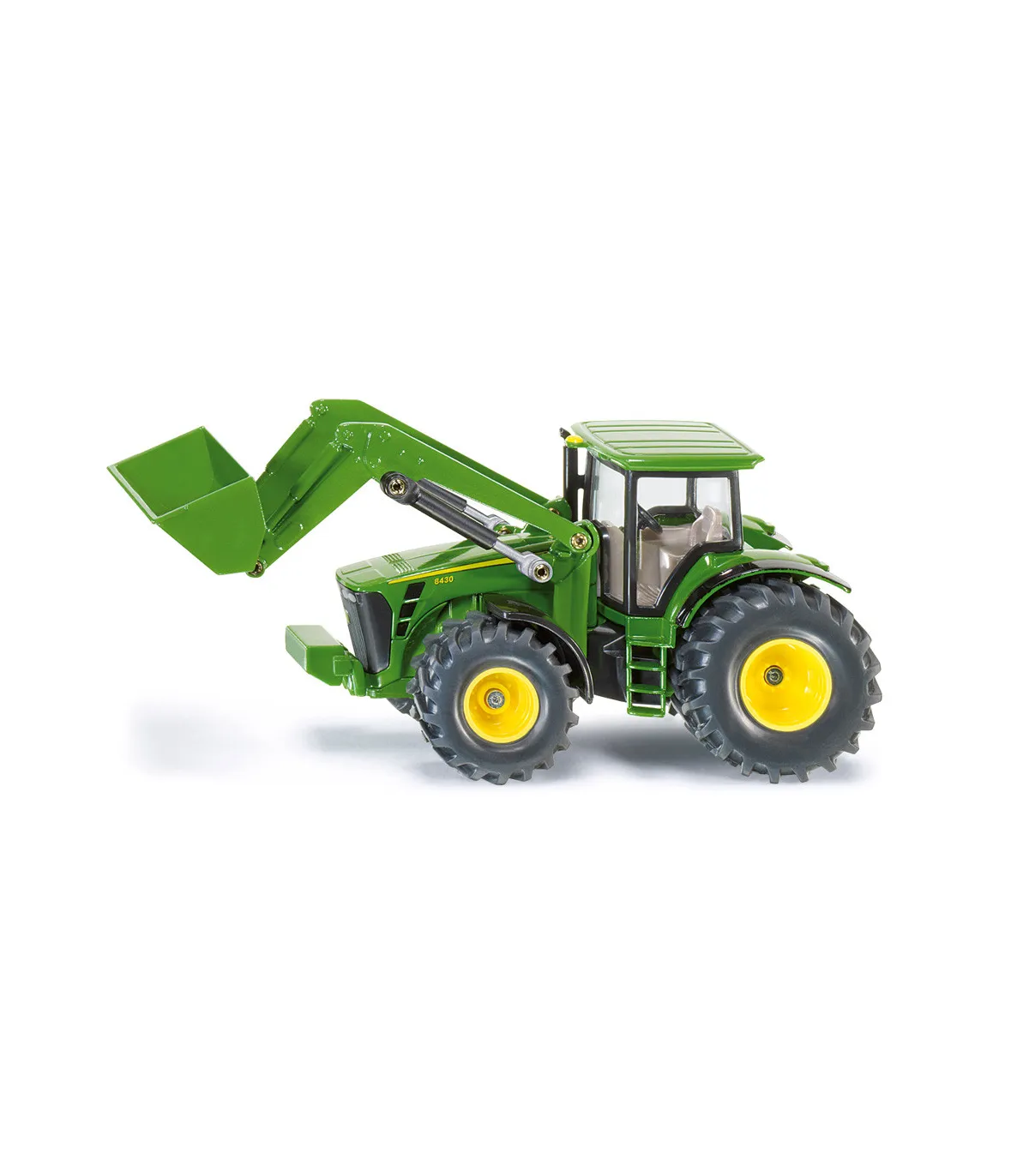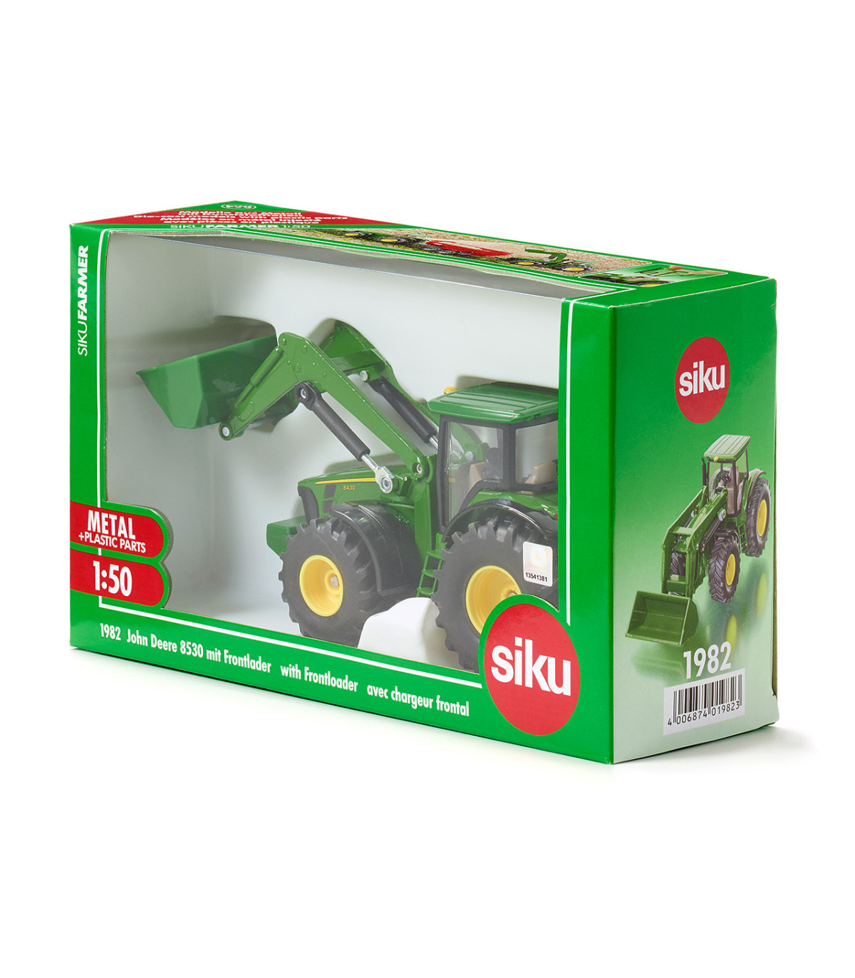 El John Deere 8430 con cargador frontal del nuevo segmento lúdico de modelos agrícolas en escala 1:50 enriquece la diversidad de esta serie con una variante potente. Con la pala móvil y el brazo oscilante se pueden cargar de forma segura los más diversos productos a granel. Este modelo se puede utilizar perfectamente en combinación con la combinación de un tractor con un remolque de esta serie.