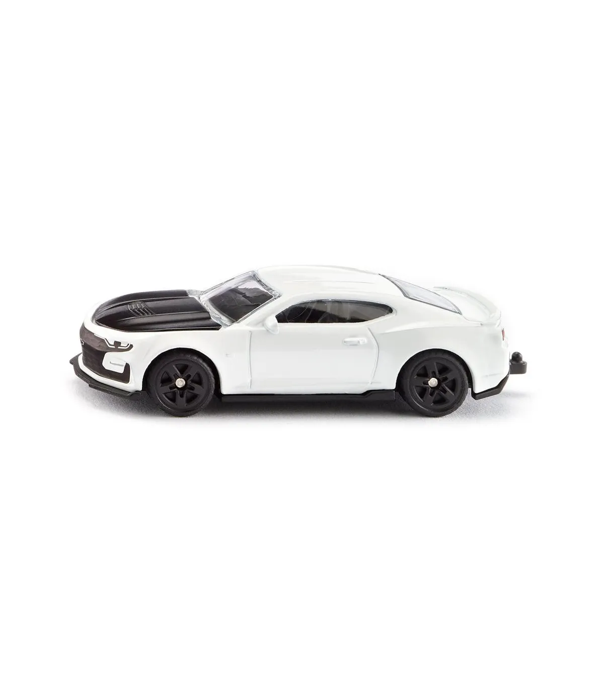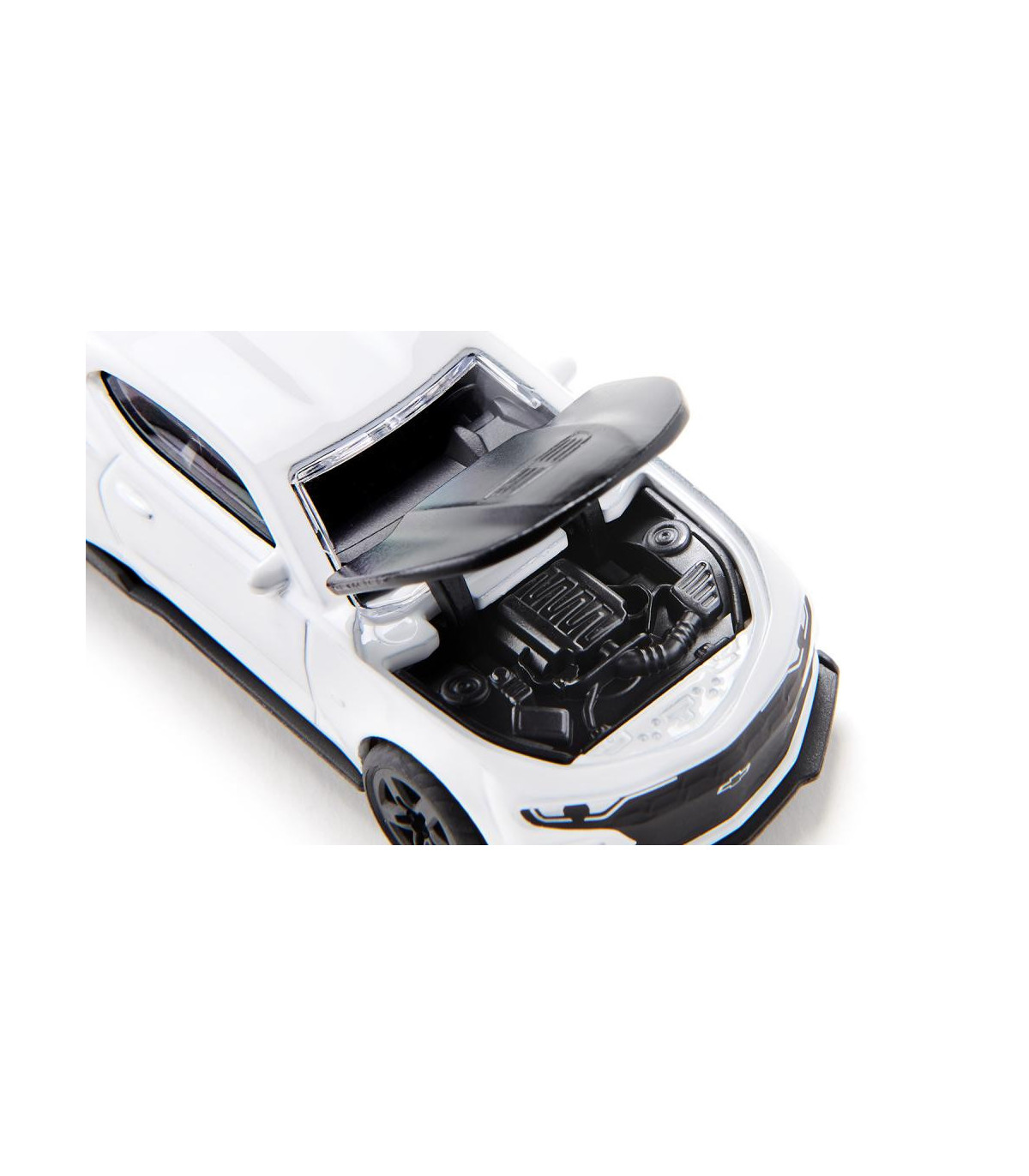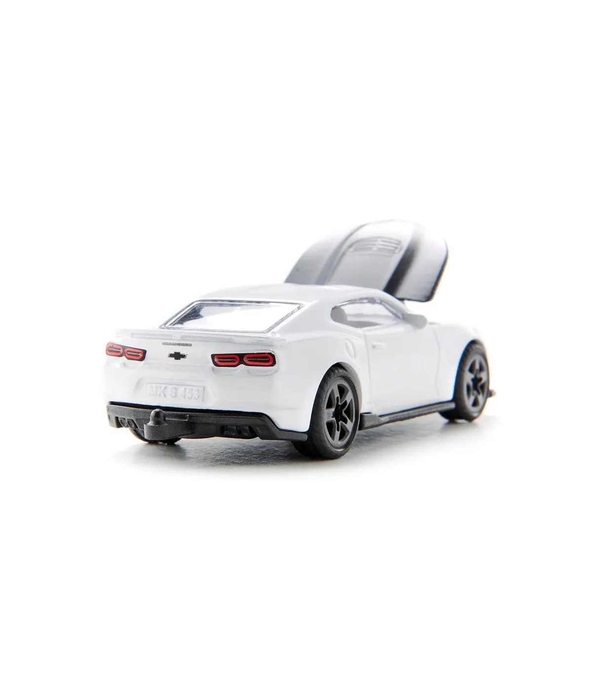 Muscle car con motor V8 - La sexta generación del Chevrolet Camaro también lleva los genes de un típico muscle car. Especialmente cuando el conductor ejercita sus músculos con el motor V8. También estando parado: abre el capó y podrás ver el motor, que se muestra en detalle. Esto coloca al Camaro en línea con los otros muscle cars de siku: Dodge Challenger, Chevrolet Corvette y Ford Mustang. Por supuesto, la última generación es incluso más rápida y manejable que sus predecesoras y ofrece suficiente agarre con sus neumáticos de goma. Pero el Chevrolet Camaro también puede hacer algo diferente: con el enganche de remolque se convierte en un fantástico vehículo tractor para un remolque de barco o de motocicleta.