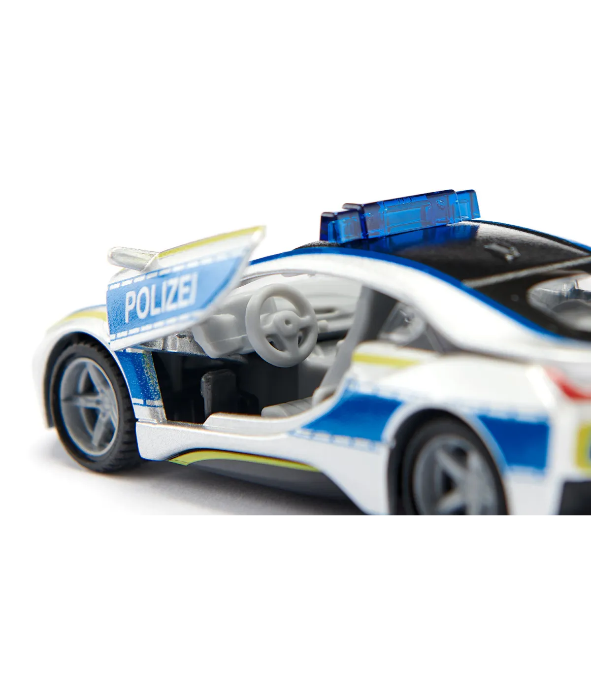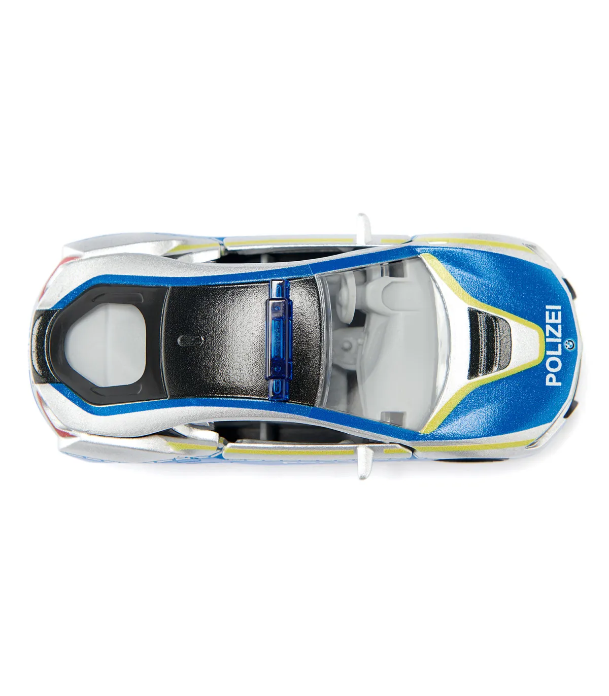 Caza de ladrones eléctrica - El diseño: premiado, la propulsión de un automóvil deportivo es revolucionaria: un motor eléctrico combinado con un motor turbo de tres cilindros. El resultado: rendimiento del sistema de 374 HP. Suficiente para alcanzar 250 km/h y acelerar de 0 a 100 km/h en 4,4 segundos. El atleta híbrido sale a la caza de los delincuentes con el típico diseño policial azul y amarillo y una barra de señales azul. El modelo se fabricó únicamente como coche de exhibición. Las puertas de mariposa garantizan el factor sorpresa al entrar.