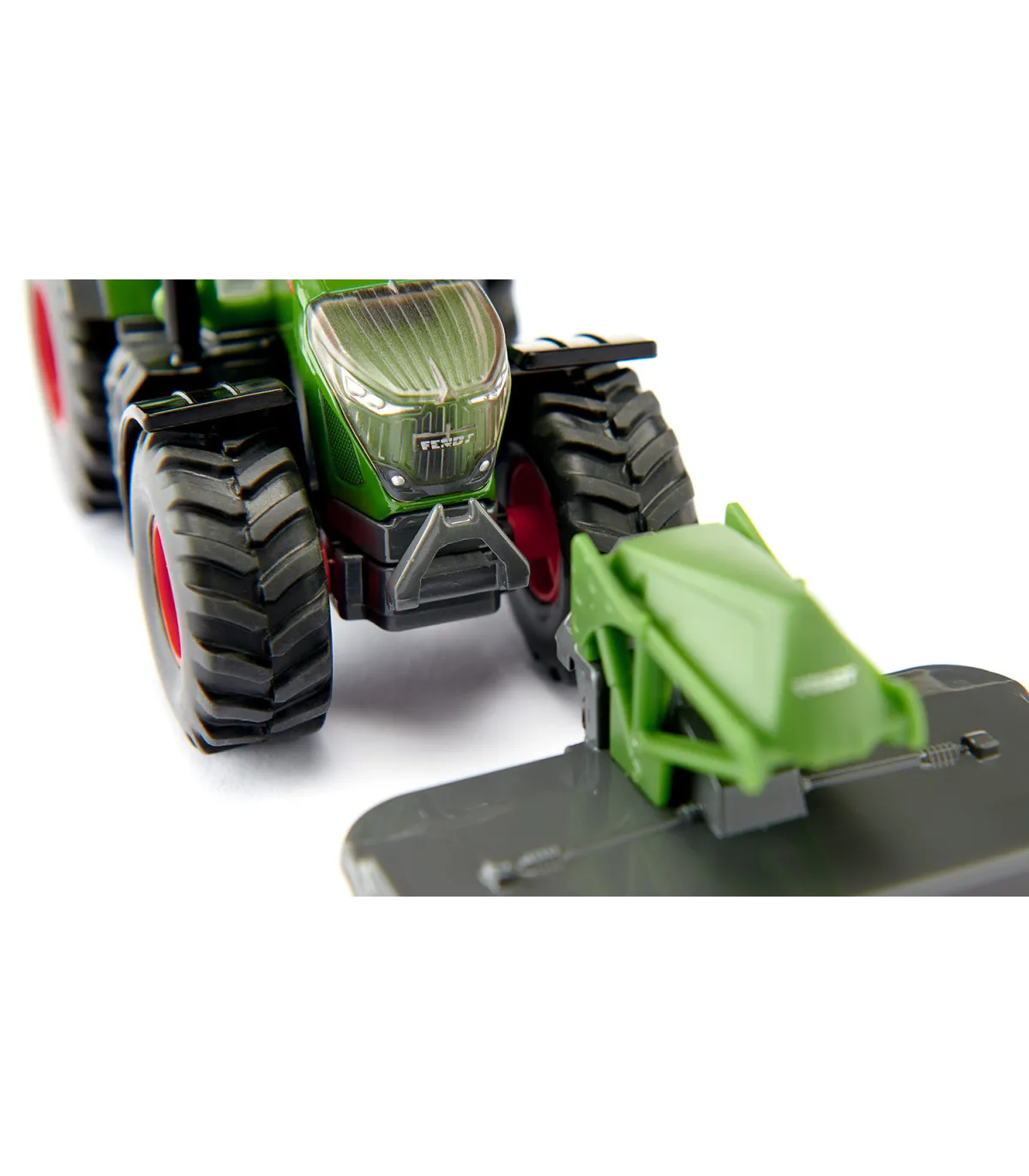 Tractor del año 2020: el Fendt 942 Vario es el nuevo modelo superior de la serie Fendt 900. El tractor de gran tamaño fue elegido Tractor del Año 2020. Bajo el distintivo morro de Fendt trabaja un motor MAN de nuevo desarrollo con más de 400 CV. El tractor a escala 1:50 viene de serie con una segadora cortadora Fendt. La segadora de discos permite una altura de corte perfecta y constante. La plataforma de corte y la cabina se pueden quitar. El Fendt 942 Vario también está equipado con un enganche de remolque.