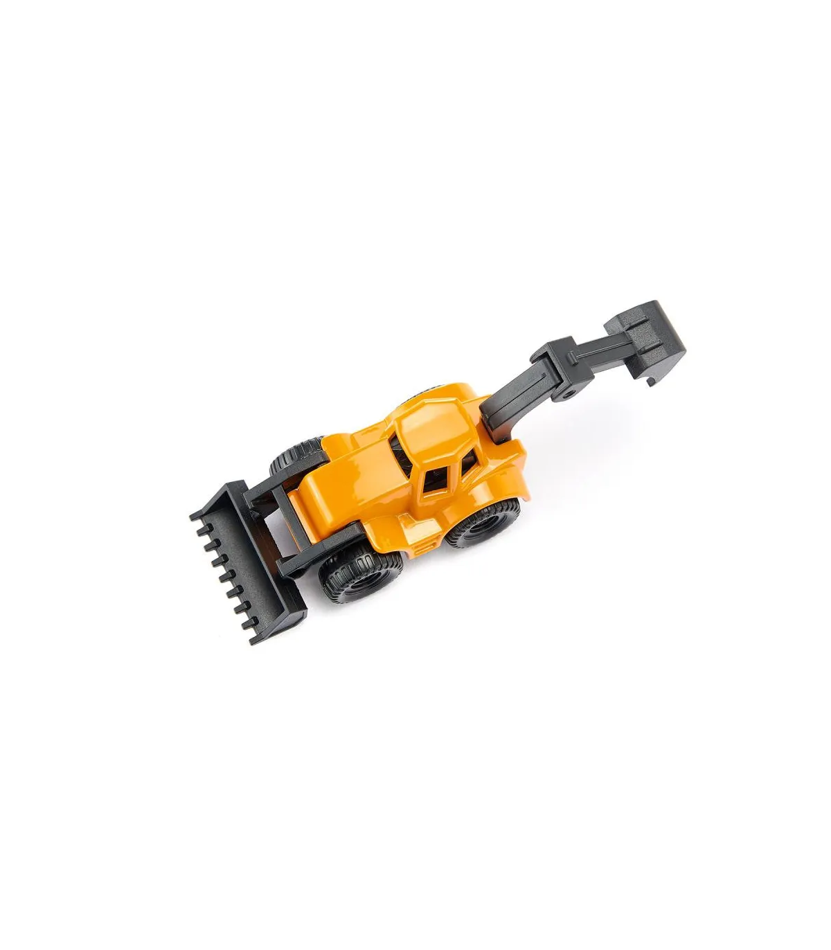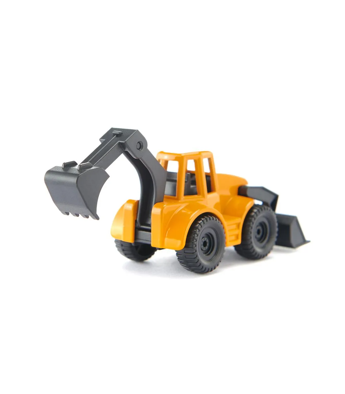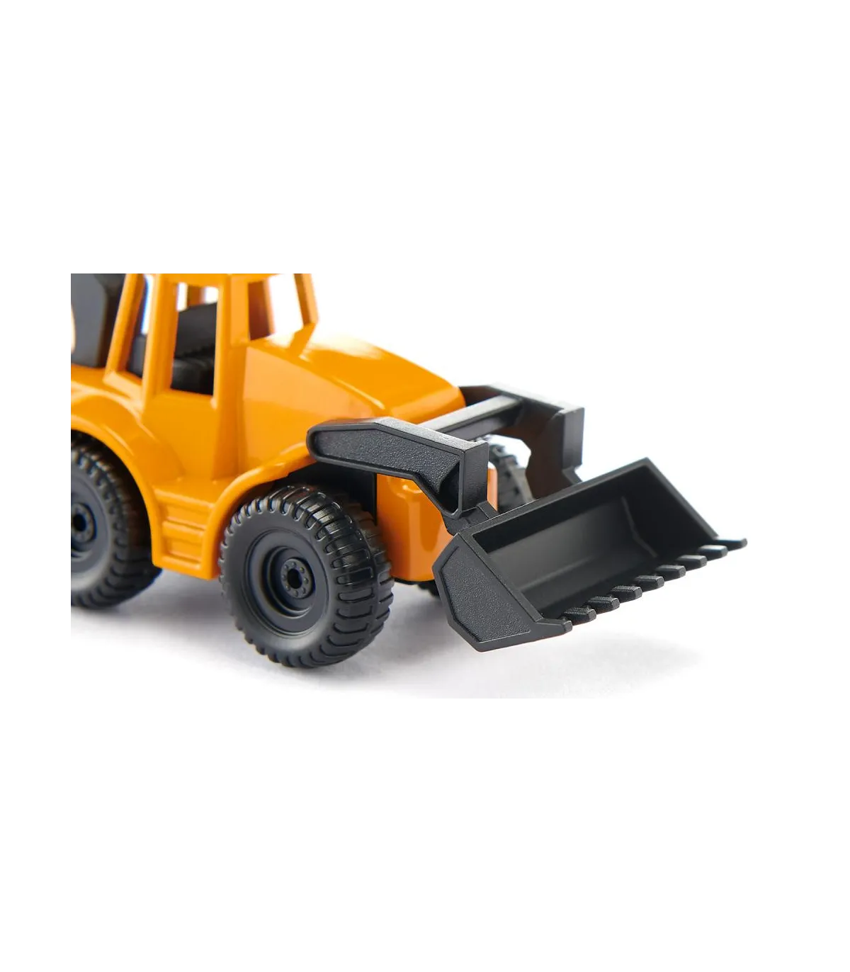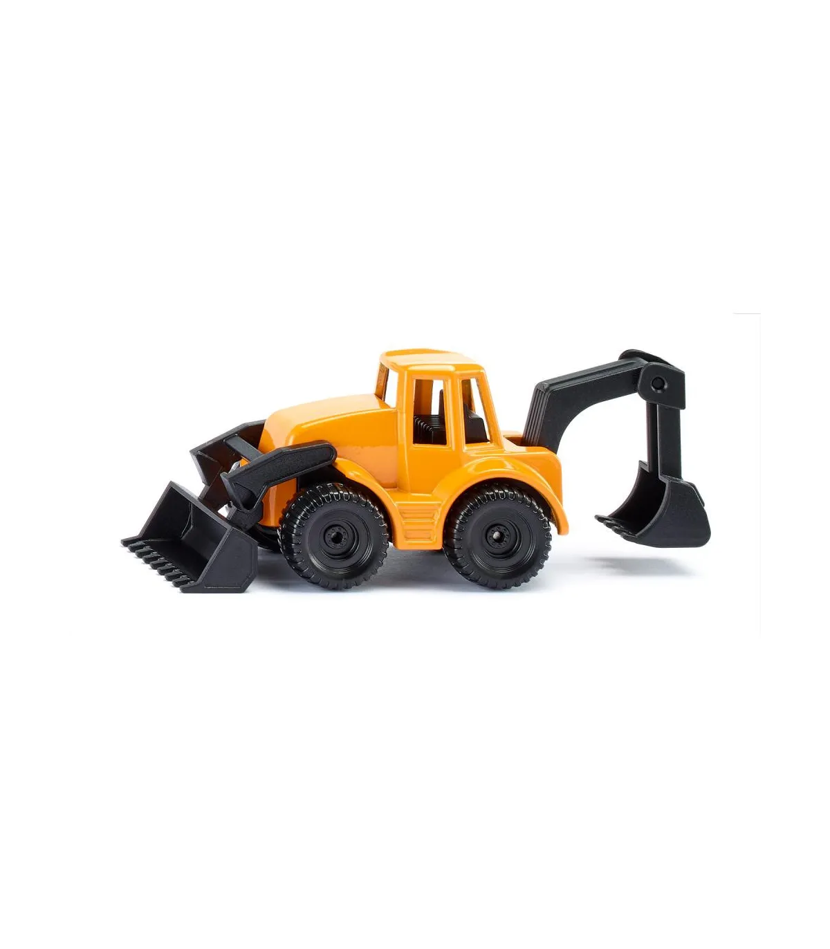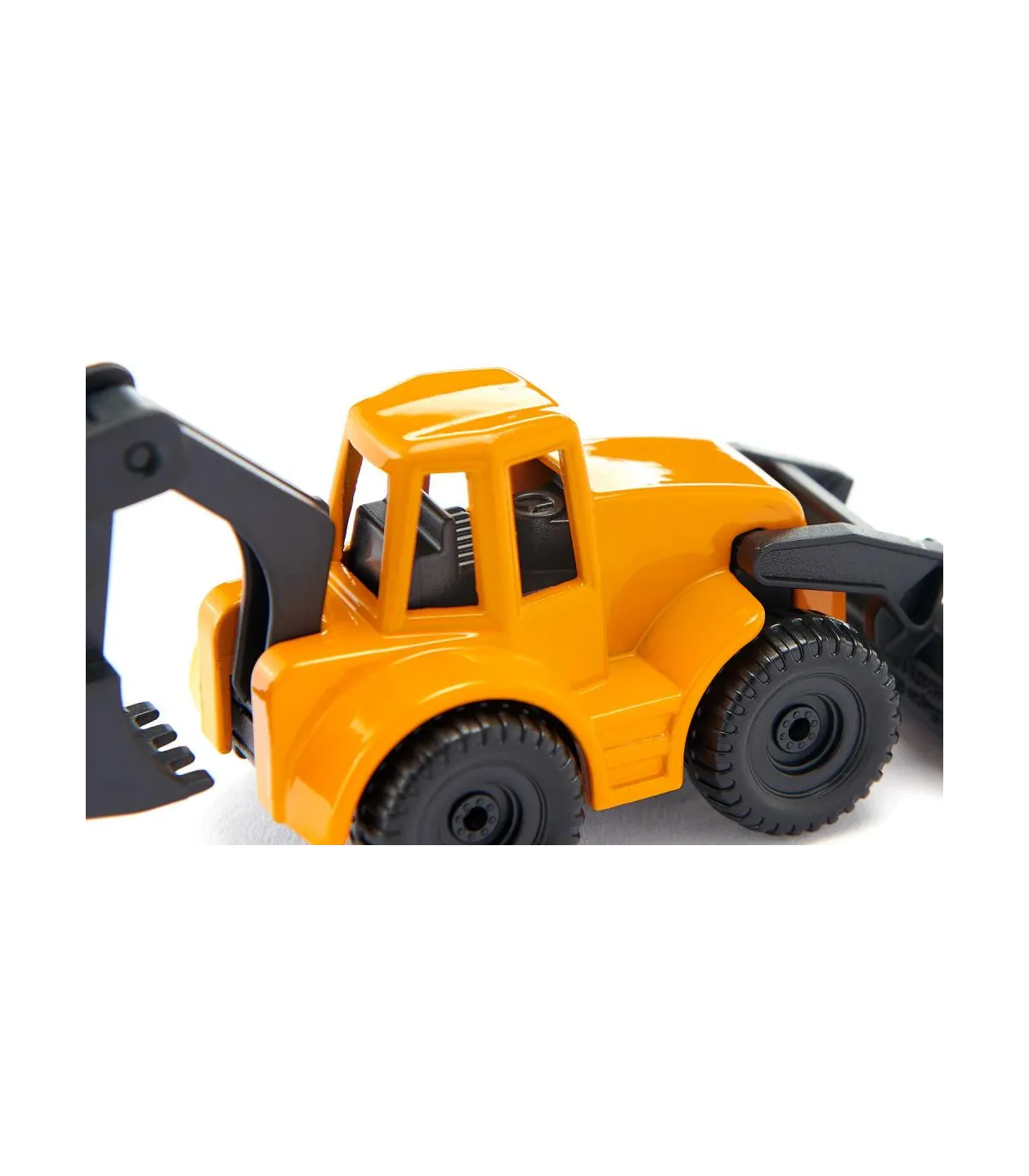 Un todoterreno para la obra: las retroexcavadoras son un todoterreno en la obra. Dos máquinas de construcción en una: una cargadora de ruedas con una pala grande delante y una excavadora con una pala estrecha detrás. Esto elimina algo. El cargador frontal y la cuchara de la excavadora se pueden mover hacia arriba y hacia abajo.