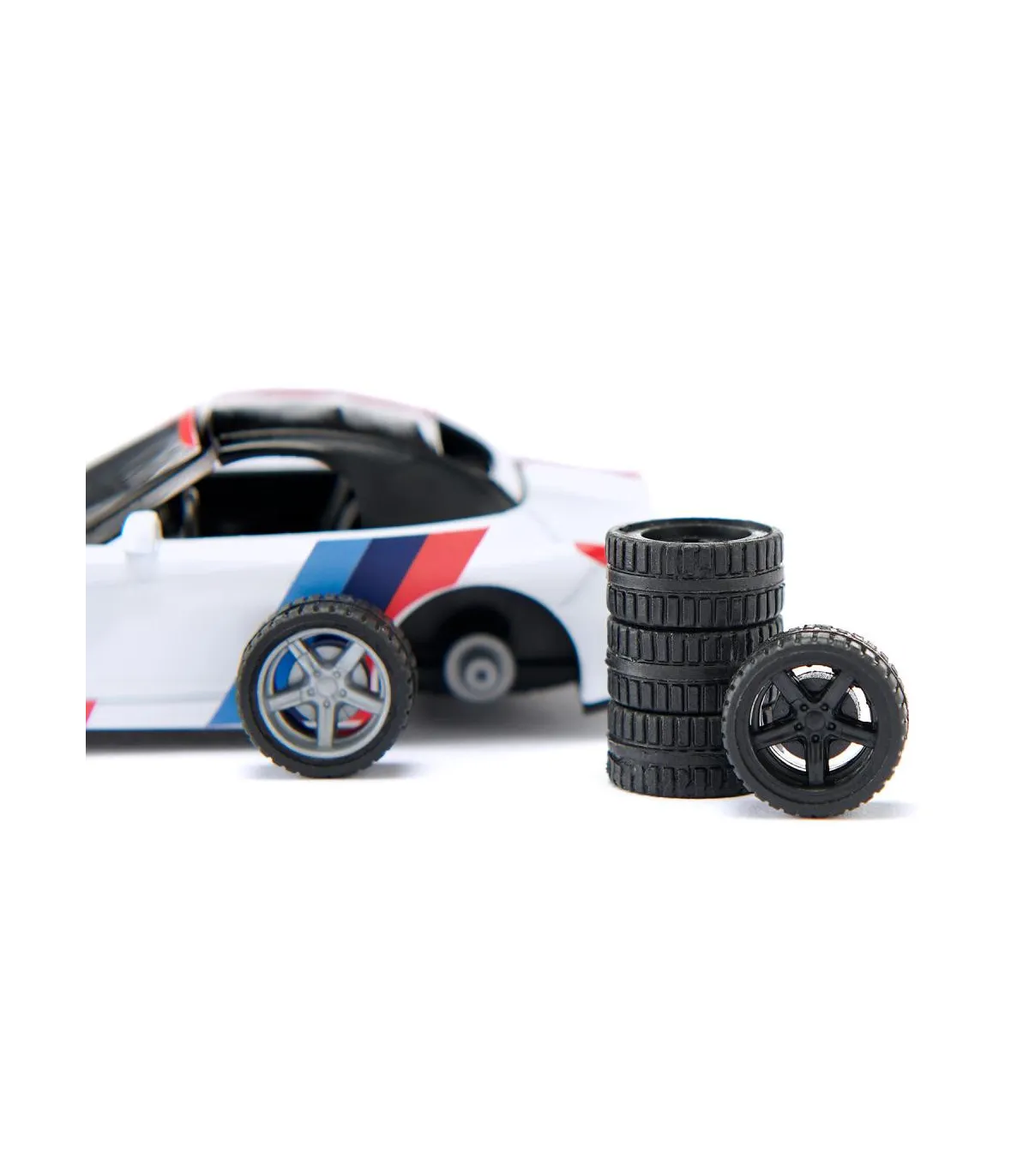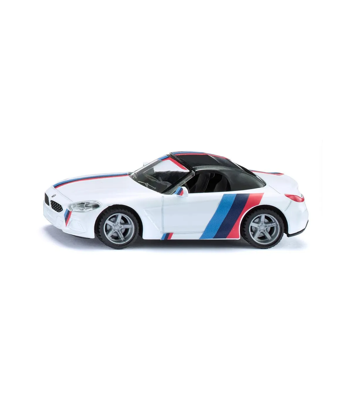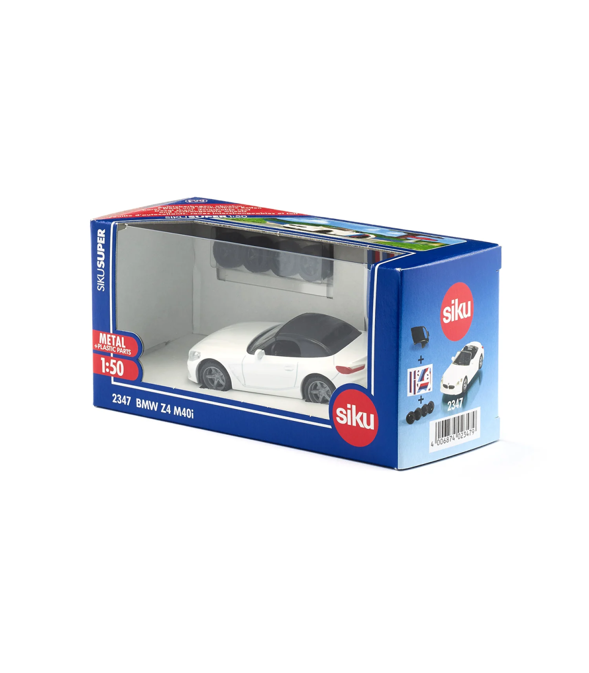 Convertible dinámico con un conjunto versátil: abierto, plano y recortado para darle dinamismo, especialmente en la variante BMW Z4 M40i. El motor de seis cilindros y 3 litros genera hasta 340 CV. siku ofrece el dinámico descapotable en color blanco. Con el kit de diseño y tuning de serie, el BMW Z4 puede decorarse individualmente con el diseño M y equiparse con llantas adicionales con llantas negras.