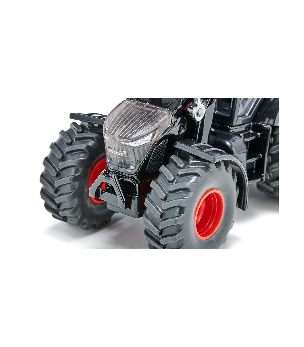 Potente motor MAN con 420 CV, cambio continuo Vario, máxima potencia y al mismo tiempo máxima flexibilidad: el Fendt 942 Vario es el nuevo modelo superior de la serie 900. Este gran tractor moderno convence por su eficiencia, confort y versatilidad y ya ha ganado numerosos premios del jurado. Como modelo siku en el color especial negro con cargador frontal móvil y pala, así como enganche delantero y trasero, está idealmente equipado para cualquier uso y puede realizar muchos trabajos en la granja. Gracias a las cuatro grandes ruedas con perfil agrícola, el 942 Vario siempre está bien cansado incluso fuera de la granja y puede usarse de diversas maneras en todas las situaciones de juego.