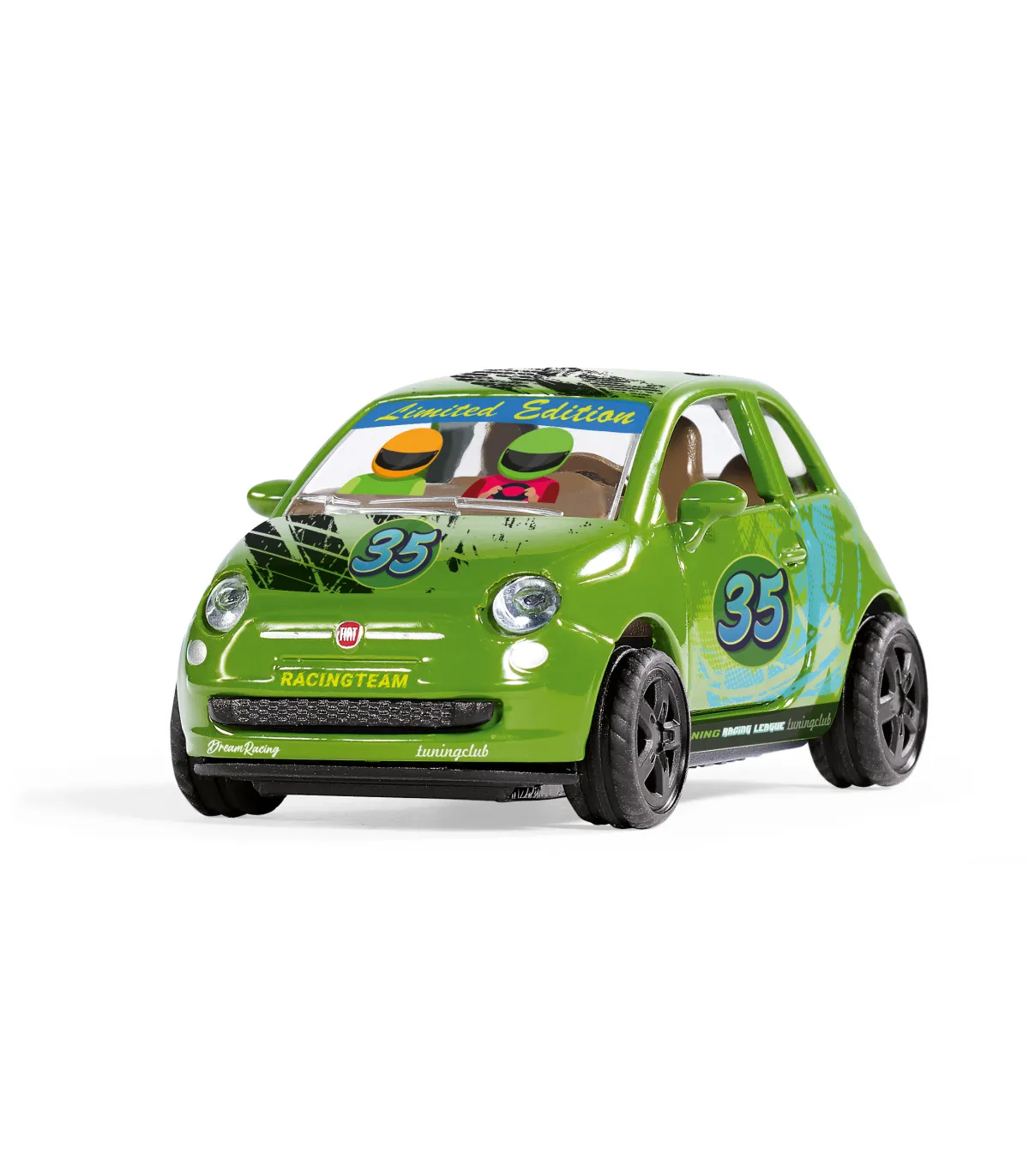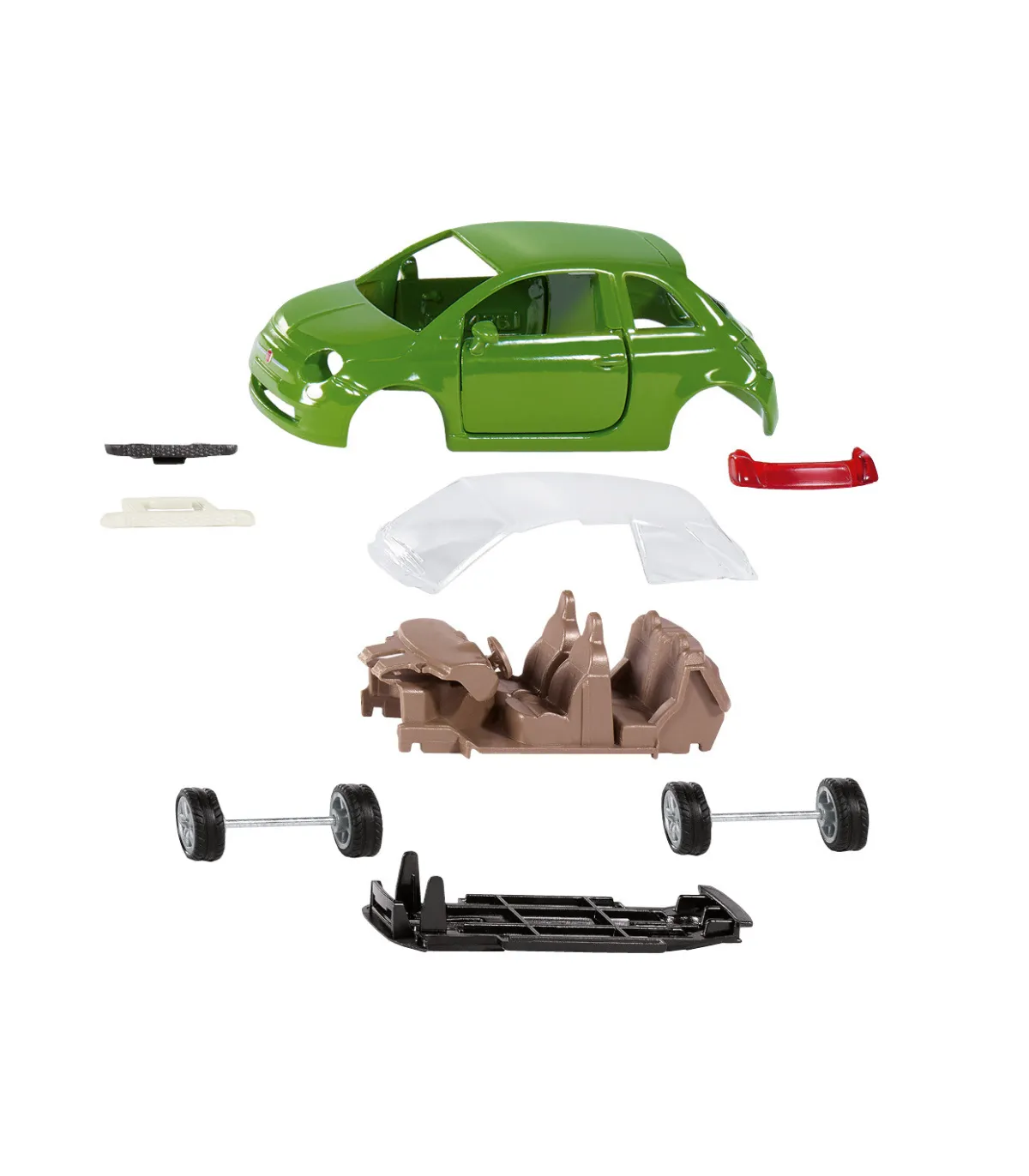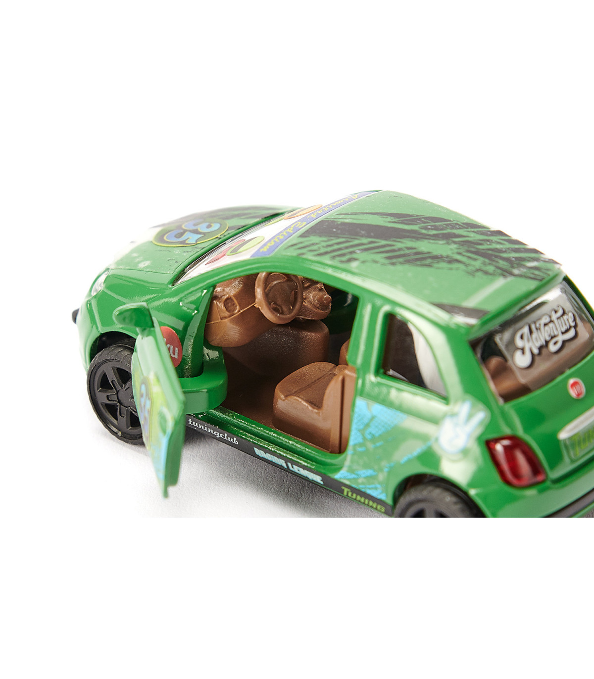 Pequeño, redondeado y con faros amigables, ¡así es el Fiat 500! Su diseño típicamente lindo hace que el pequeño automóvil italiano sea uno de los favoritos también en este país. El Fiat 500 es sinónimo de Dolce Vita, aporta un toque de estilo italiano a las calles alemanas y, por lo tanto, tiene una gran base de seguidores. ¡Especialmente como modelo artesanal de “aventura” de siku! Con una variedad de pegatinas incluidas puedes decorarlo individualmente y transformar el modelo de vehículo verde en un colorido aventurero con números iniciales, rayas, dientes de monstruo y motivos de camuflaje. La diversión comienza con el montaje, ya que el conjunto con cuerpo de metal y puertas que se abren viene en piezas que se pueden montar fácilmente.