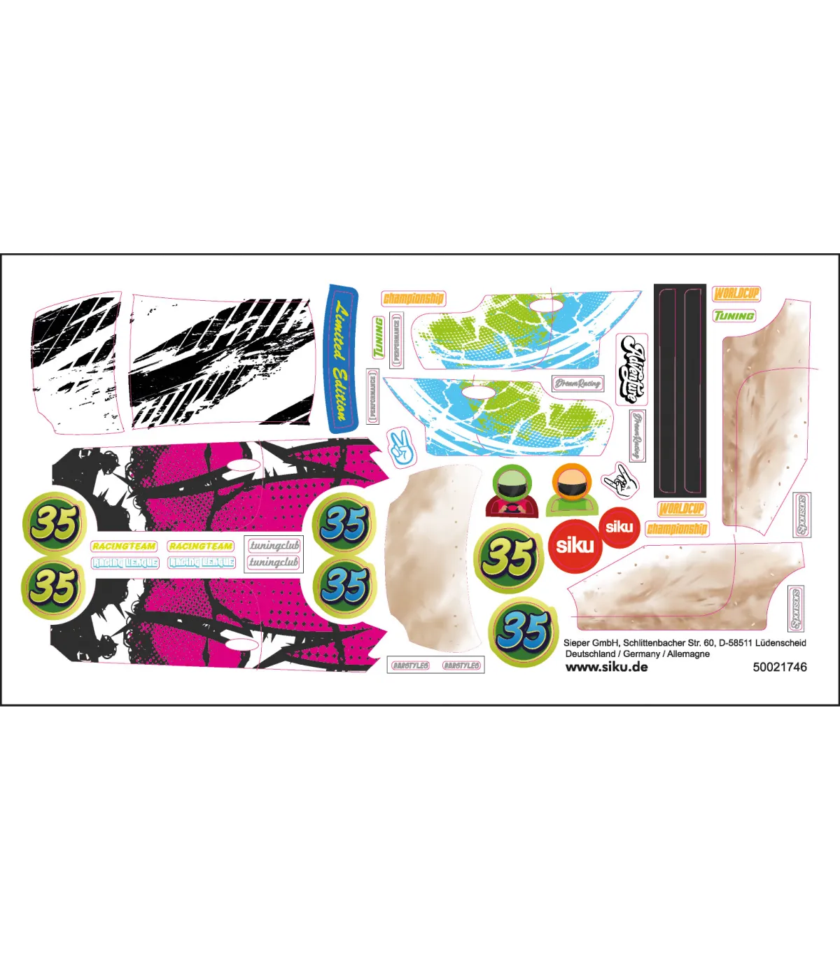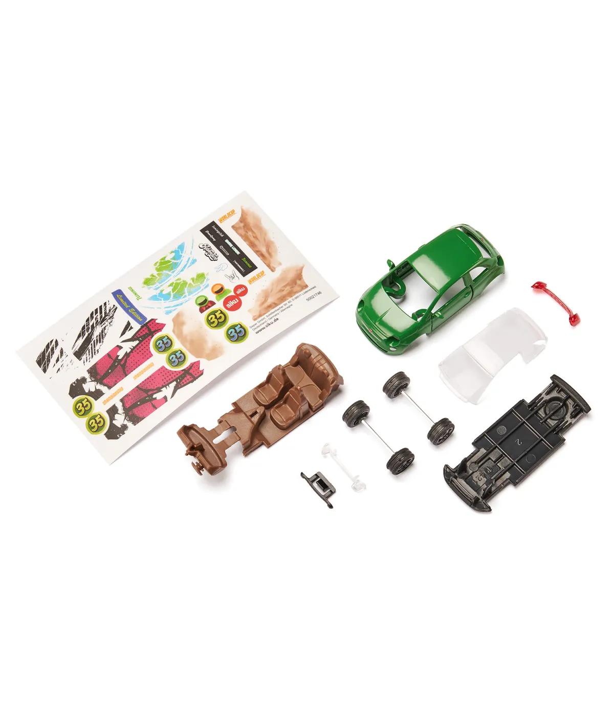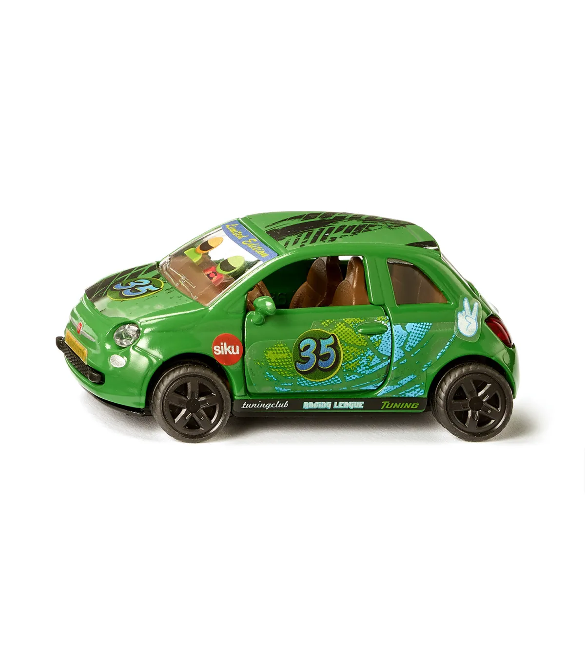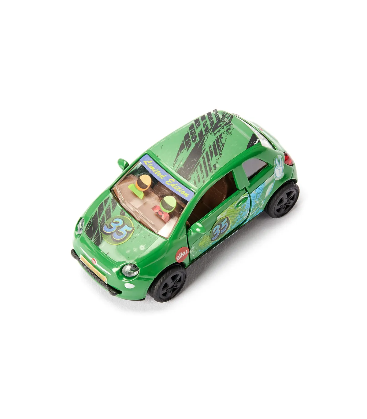 Pequeño, redondeado y con faros amigables, ¡así es el Fiat 500! Su diseño típicamente lindo hace que el pequeño automóvil italiano sea uno de los favoritos también en este país. El Fiat 500 es sinónimo de Dolce Vita, aporta un toque de estilo italiano a las calles alemanas y, por lo tanto, tiene una gran base de seguidores. ¡Especialmente como modelo artesanal de “aventura” de siku! Con una variedad de pegatinas incluidas puedes decorarlo individualmente y transformar el modelo de vehículo verde en un colorido aventurero con números iniciales, rayas, dientes de monstruo y motivos de camuflaje. La diversión comienza con el montaje, ya que el conjunto con cuerpo de metal y puertas que se abren viene en piezas que se pueden montar fácilmente.