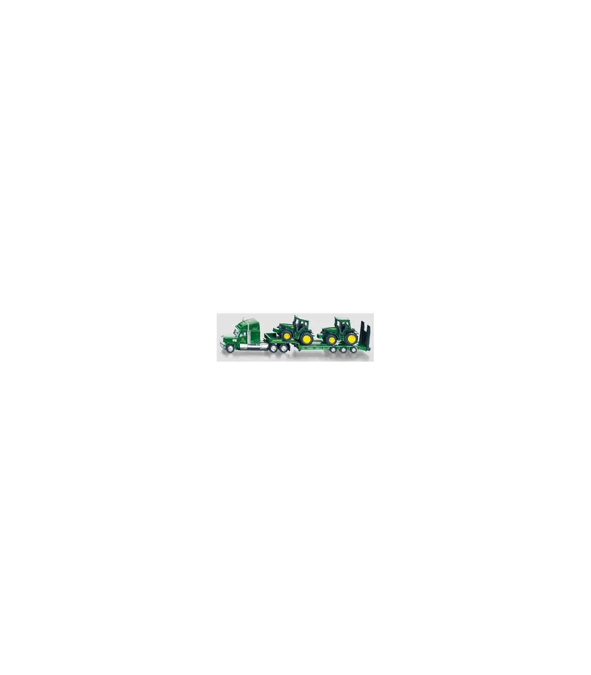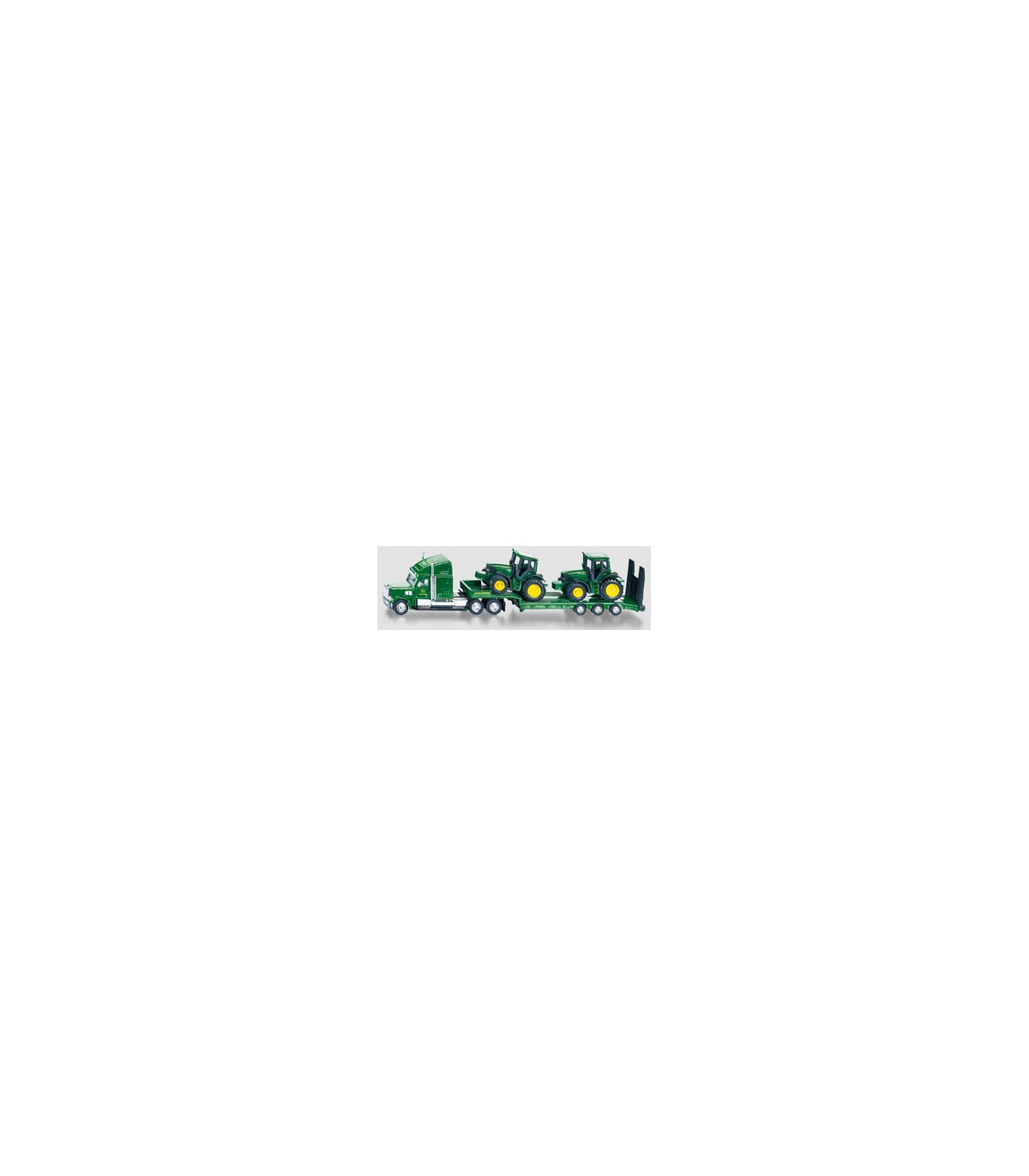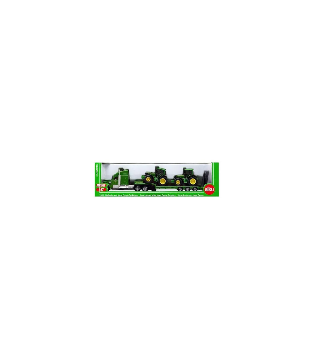 El exclusivo camión con remolque transporta fácilmente 2 tractores SIKU. Todos los vehículos están fabricados con piezas de metal y plástico de alta calidad en escala 1:87 y los neumáticos de goma permiten un fácil transporte sobre diversas superficies. El camión no es sólo un juguete, sino también una interesante incorporación a muchas colecciones.