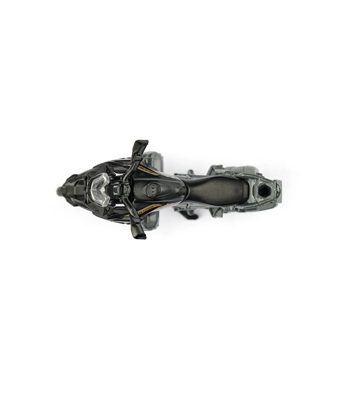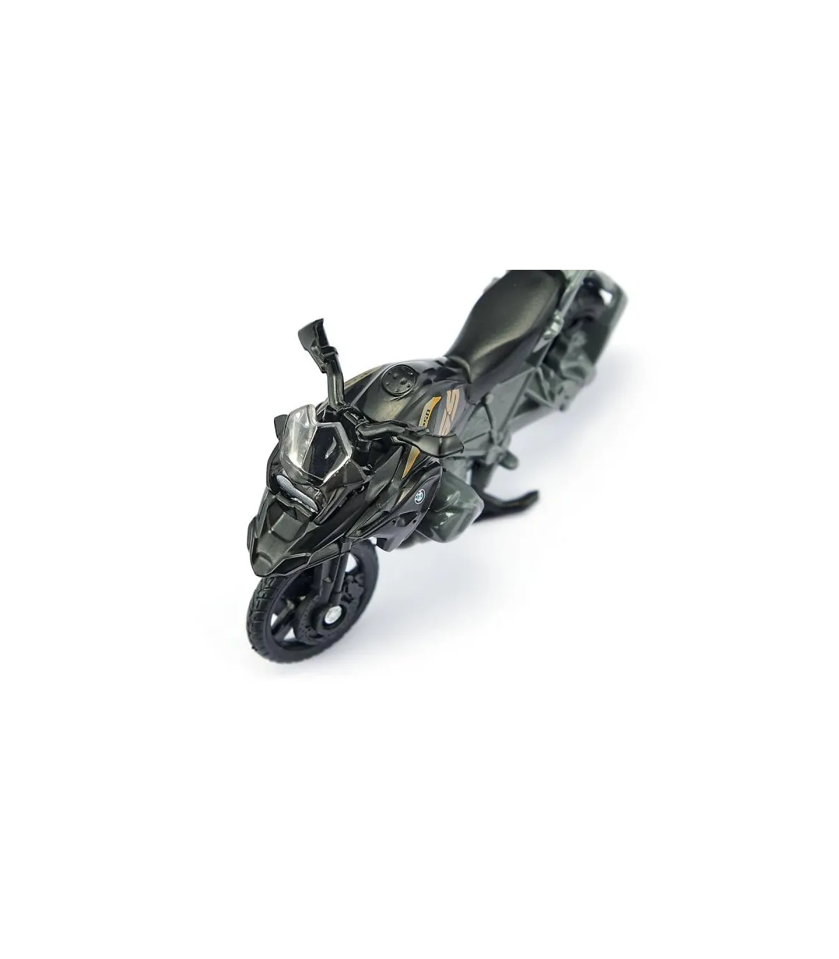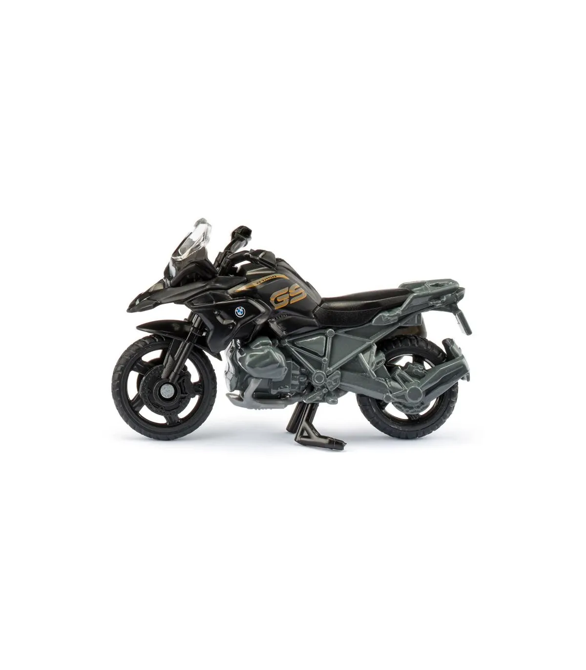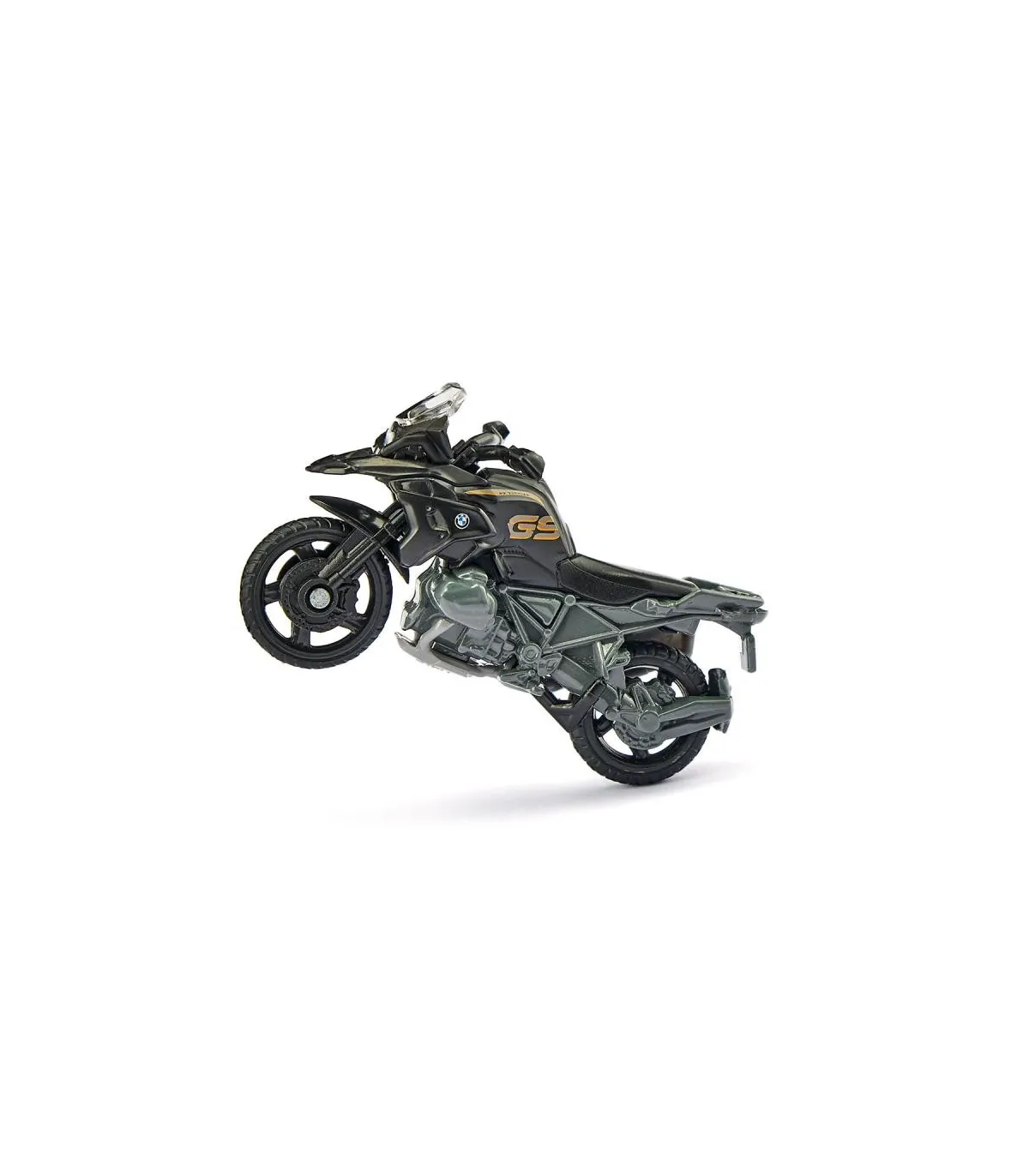 Los corazones de los aficionados a las motos se aceleran cuando ven esta máquina: después de todo, la BMW R1250 GS LCI es desde hace años la motocicleta más vendida en Alemania y ahora es un auténtico icono desde hace cuatro décadas. Ya sean carreteras de asfalto o grava, cambios rápidos de curvas o una conducción relajada, esta elegante máquina está disponible para cada aventura. Con su diseño deportivo y su aspecto elegante en negro/plata atrae todas las miradas. El bastidor y el depósito están hechos de metal, el manillar y el soporte son móviles y las ruedas están equipadas con neumáticos de goma auténtica, por lo que esta motocicleta clásica ofrece diversión realista para los aficionados a los caballos pequeños y grandes.