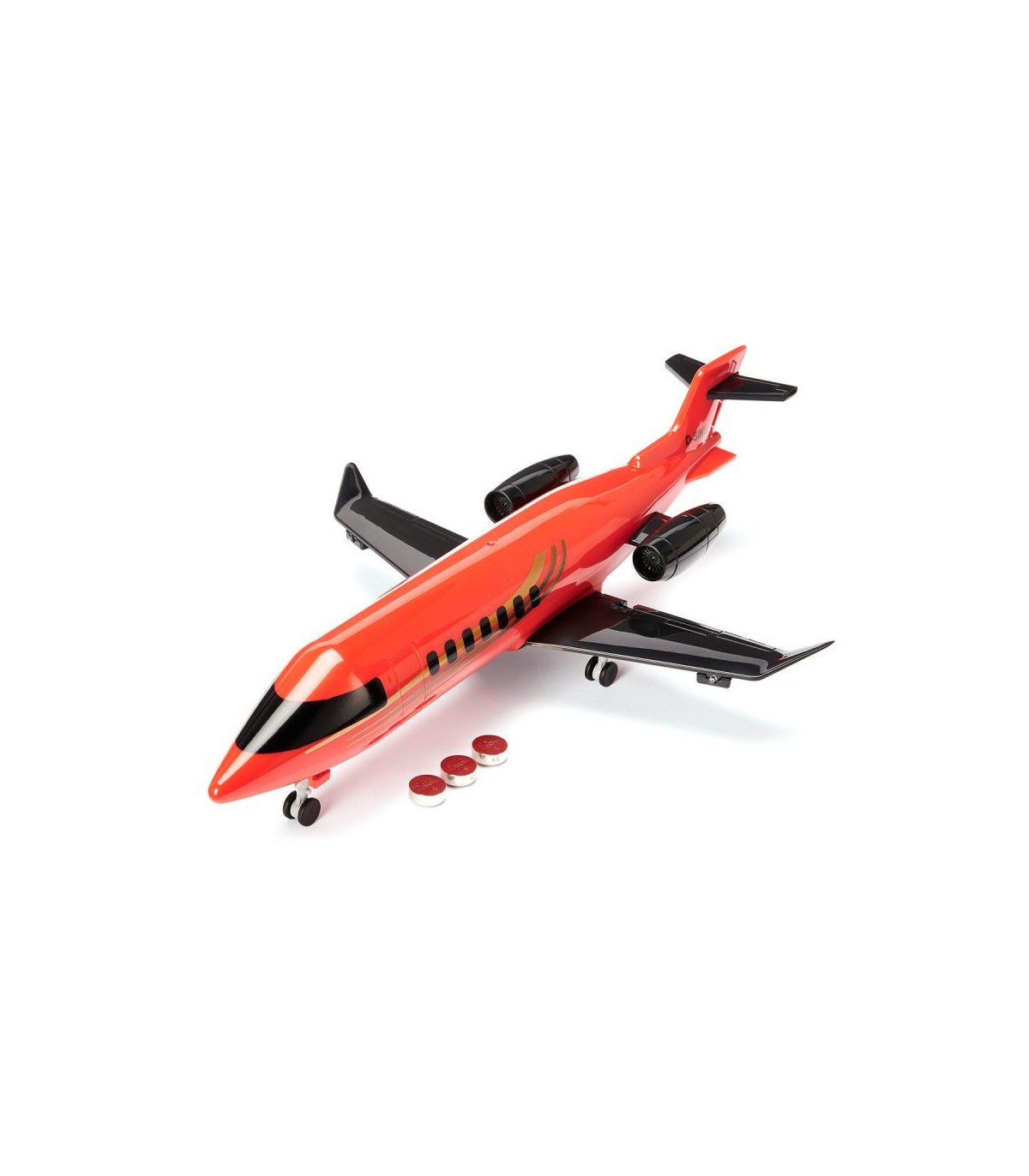 Las estrellas de alto perfil y los empresarios importantes disfrutan regularmente del lujo, pero para la mayoría sigue siendo sólo un deseo anhelante: ¡volar en un avión de negocios! Independientemente de los horarios de vuelo fijos y de los lugares de salida, siempre despega cuando es necesario, sin necesidad de hacer colas molestas en el mostrador de facturación. Para despegar con los modernos aviones de negocios de la flota siku no es necesario ni siquiera haber llegado a la liga de los grandes vuelos. Su tren de aterrizaje con ruedas de goma se puede plegar y extender para el despegue y el aterrizaje. Su fuselaje de plástico es rojo, las alas y la cola son negras. El avión dispone de siete luces LED cuya disposición y frecuencia de intermitencia se han reproducido fielmente, a saber: una luz de aterrizaje y una luz de posición trasera con luz blanca, dos luces de posición rojas intermitentes debajo y encima del avión, una luz de posición verde en el punta del ala derecha y una luz de posición roja en la punta del ala izquierda. Así podrás salir libre y espontáneamente en cualquier momento, ¡al menos en la habitación de los niños! Incluye 3 pilas LR44.