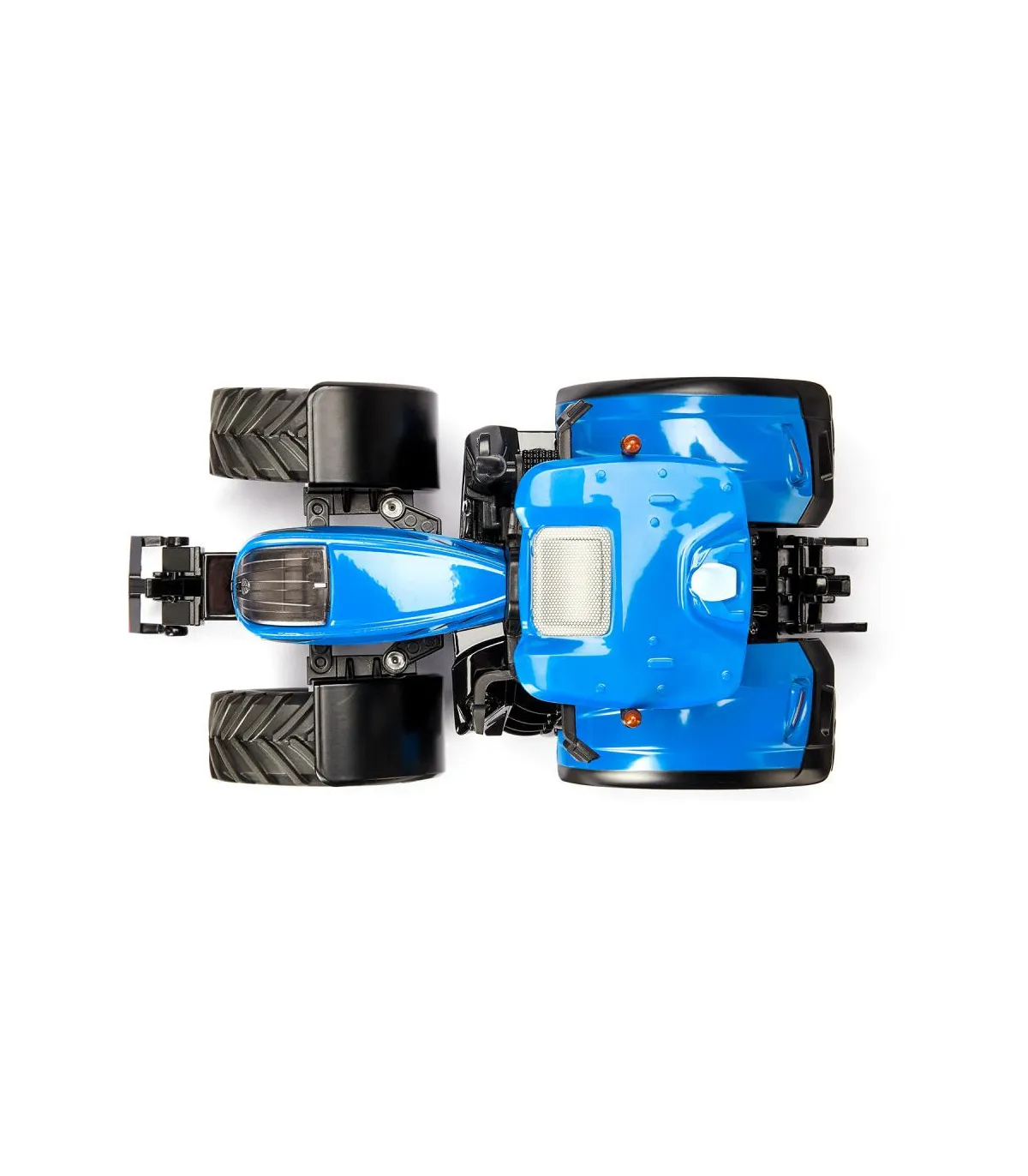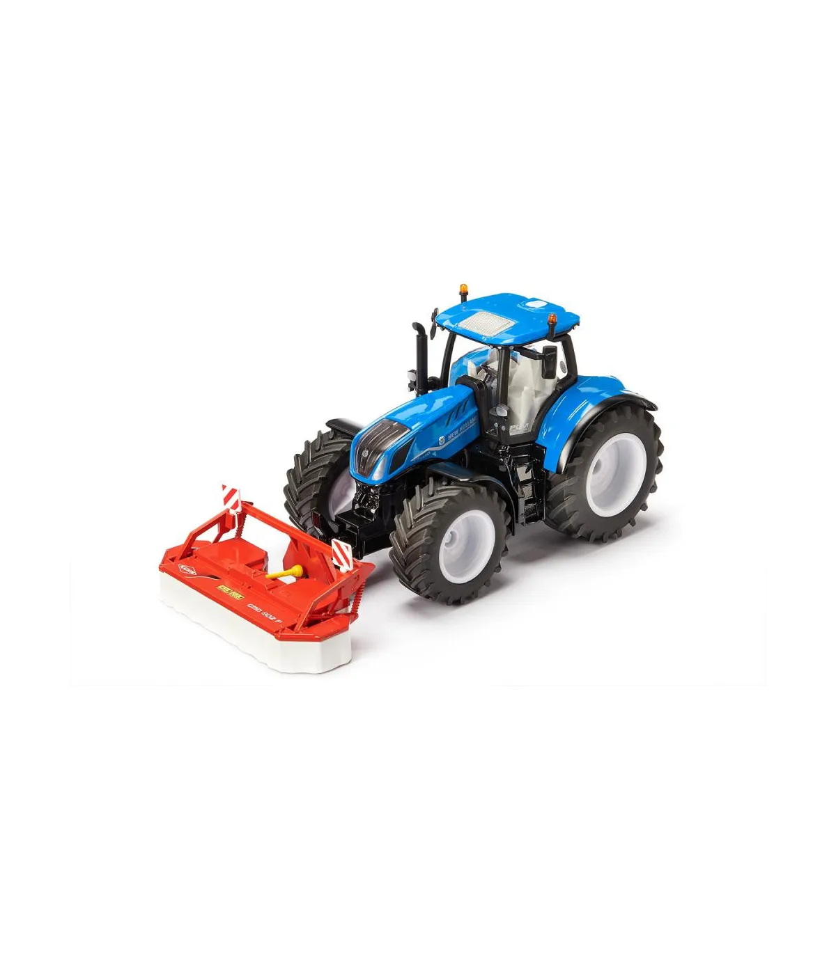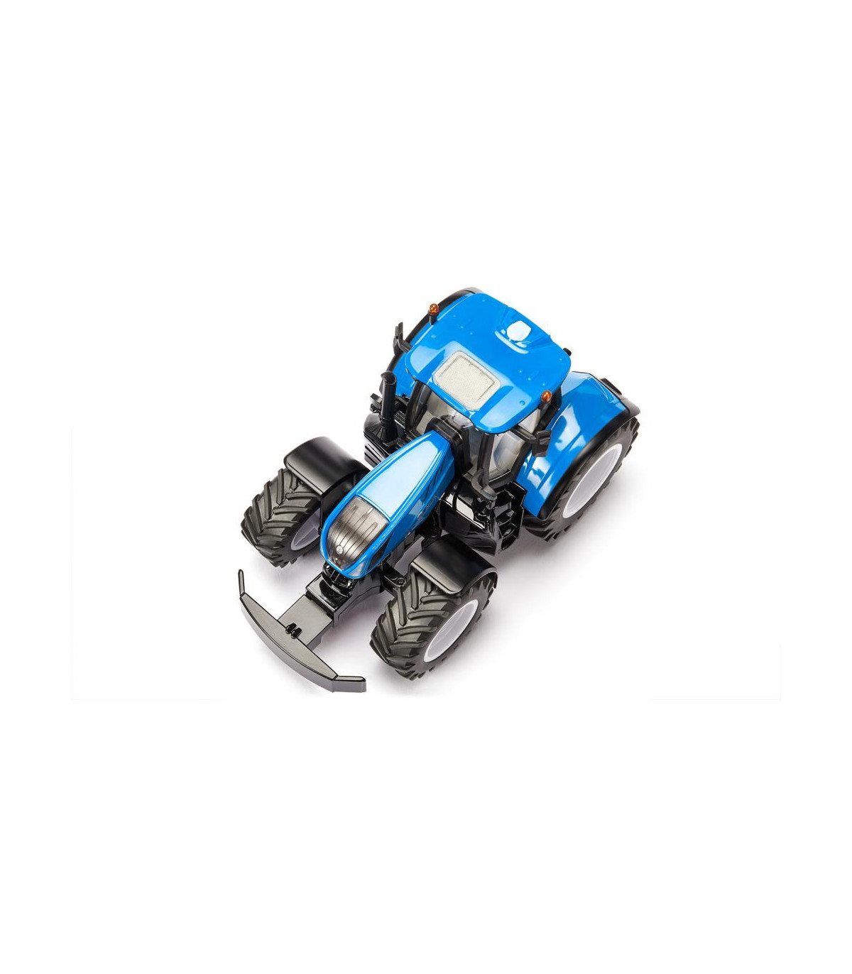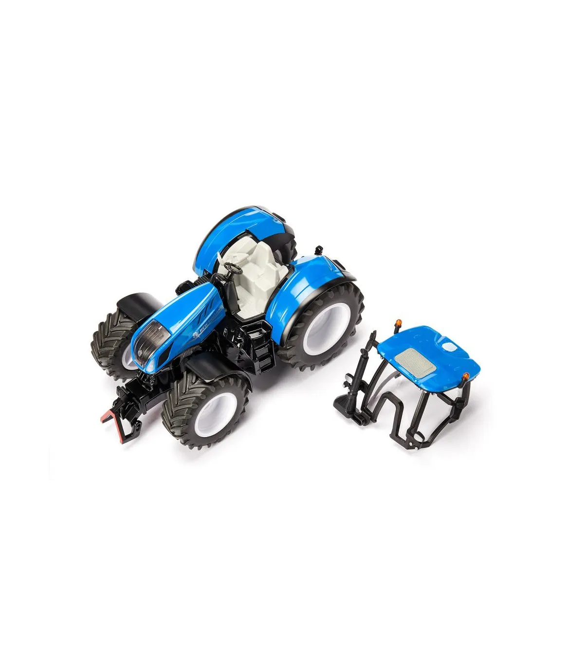 Si se quiere avanzar en la agricultura moderna, hay que ser fuerte. Y eso es exactamente lo que es el T7 Heavy Duty de New Holland. Un tractor de alta gama con más potencia y un confort de primer nivel que también tiene algo que ofrecer visualmente. El T7 Heavy Duty puede entregar hasta 315 hp para el uso de los equipos de trabajo más pesados. El modelo superior entre los tractores grandes es lo suficientemente potente para trabajos de tracción, labranza, empacado y transporte. La carrocería del modelo siku está fabricada en metal, la cabina es acristalada y desmontable. El detallado diseño también crea una auténtica sensación de tractor en el interior. El eje delantero se mueve mediante un muñón de dirección y el capó se puede abrir. El tractor New Holland tiene un acoplamiento estándar siku en la parte trasera y delantera y, por lo tanto, se puede combinar con todos los remolques y accesorios de la serie siku Farmer. Se incluye como accesorio un peso frontal que se puede intercambiar con el enganche frontal mediante un sencillo mecanismo. No importa lo que se necesite, ¡el T7 Heavy Duty lo hará de manera confiable!
