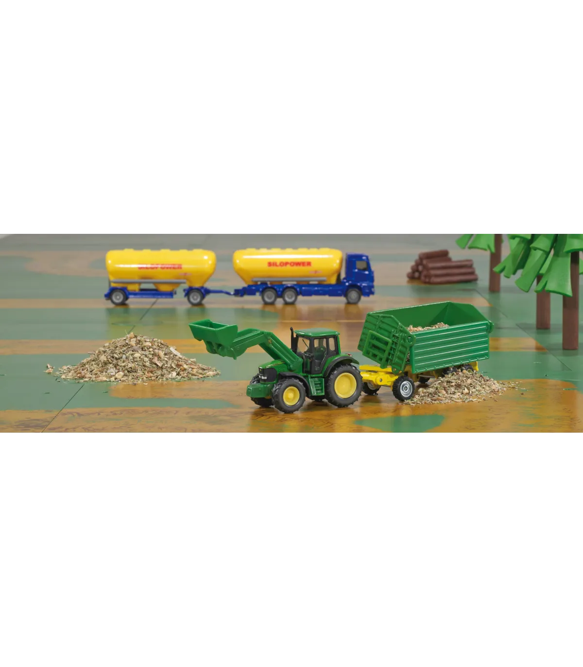 Información del producto "John Deere con cargador frontal y remolque"