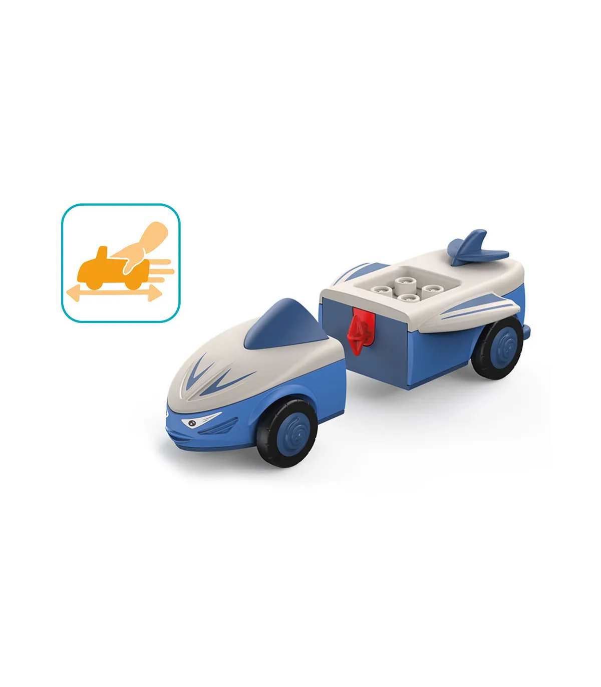 Cuando hace mal tiempo, Mike y Moby son realmente creativos: no hay rastro de aburrimiento. Primero que nada, construyeron una cometa cuando llovía y hoy van a poder volarla. ¿A quién no le gustaría ser su amigo y unirse? Emocionante juguete de primera calidad para niños a partir de 18 meses, con motor de fricción (motor volante) para fomentar la motricidad fina, la constancia, la paciencia y la diversión. La figura de Mike tiene partes móviles: se puede girar la cabeza, levantar los brazos y doblar las piernas. El vehículo Moby se puede dividir en dos partes y combinar con otros vehículos Toddys. Es compatible con componentes de otros fabricantes. Sistema siku “Click&Play”: fácil de combinar gracias al sistema de giro y empuje de las piezas del vehículo