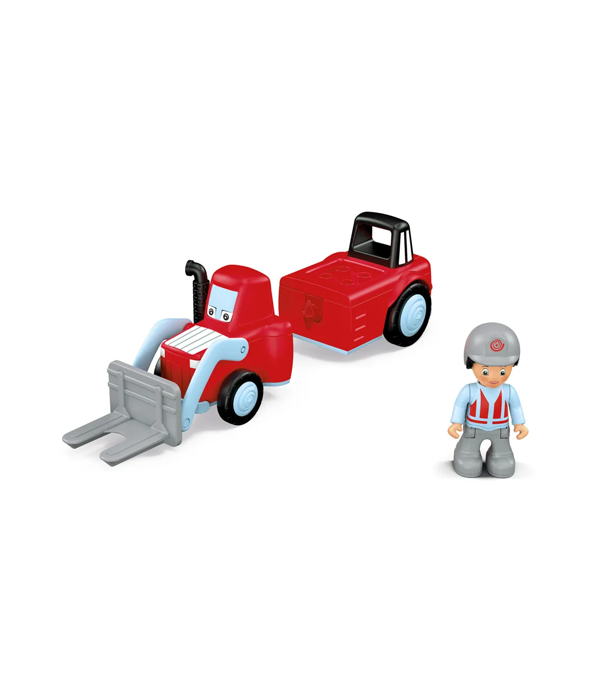 ¡El trabajo llama! Willy, el experto artesano, realiza cada nuevo trabajo en su granja con alegría y gran energía. Cuando se rompió la vieja puerta de su granero, hizo una nueva en un abrir y cerrar de ojos. La puerta se encuentra ahora en su nuevo esplendor. Gracias a la protección mejorada contra la lluvia y el viento, se pueden volver a almacenar paja y madera para el invierno. Pero Willy no puede hacer todos los trabajos de la granja por sí solo, por lo que su fiel amigo Worky, el cargador agrícola, lo ayuda en lo que puede. Willy trabaja duro apilando madera, cajas y piedras en paletas. Worky los transporta a donde Willy los necesite. Las brillantes ideas de Willy y los fuertes brazos elevadores de Worky hacen que los dos formen un equipo dedicado. Emocionante juguete de primera calidad para niños a partir de 24 meses, con motor de fricción para fomentar la motricidad fina, la constancia, la paciencia y la diversión. El muñeco de Willy tiene partes móviles: se puede girar la cabeza, levantar los brazos y doblar las piernas. El vehículo Worky se puede dividir en dos partes y combinar con otros vehículos Toddys. La carretilla elevadora regulable y el palé también estimulan la experiencia de juego. Willy Worky es compatible con componentes de otros fabricantes. Sistema siku “Click&Play”: Fácil de combinar gracias al sistema de giro y empuje de las piezas del vehículo; Esto fomenta la motricidad y garantiza una diversión duradera. Construcción robusta con calidad siku