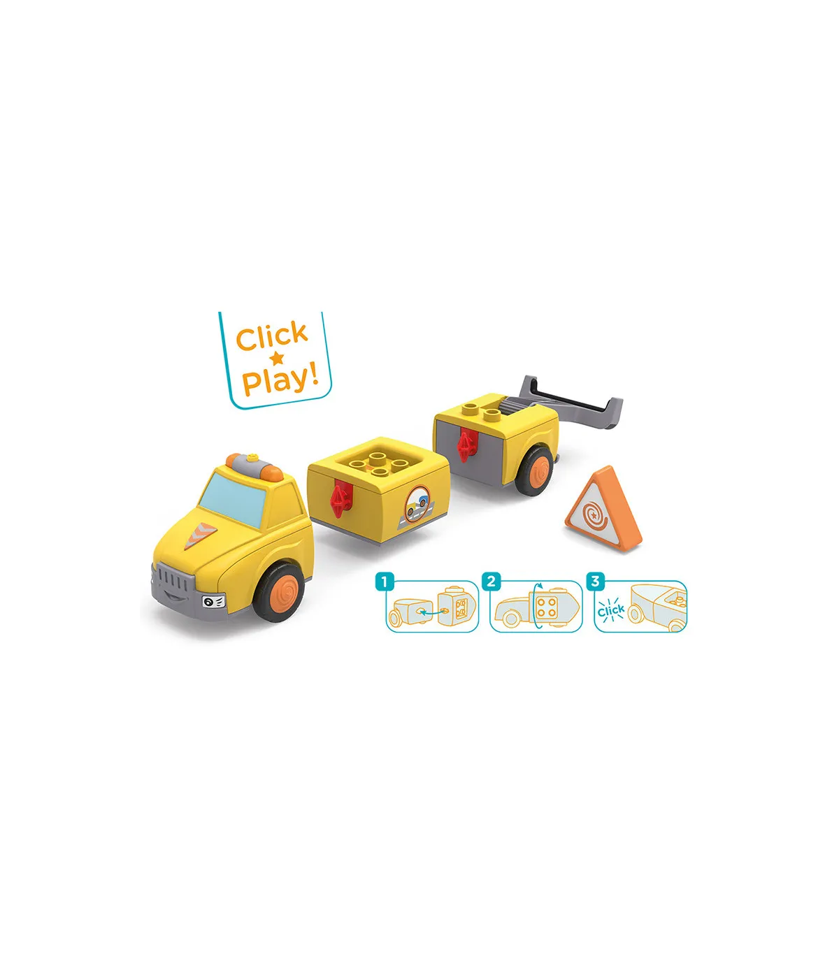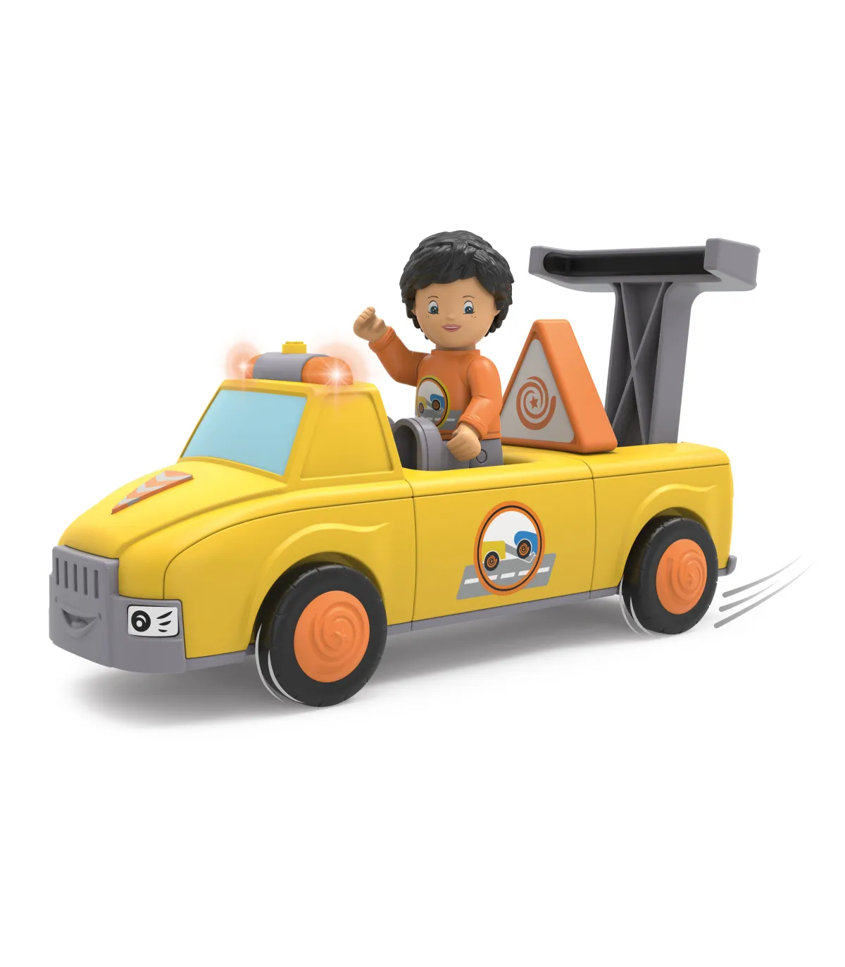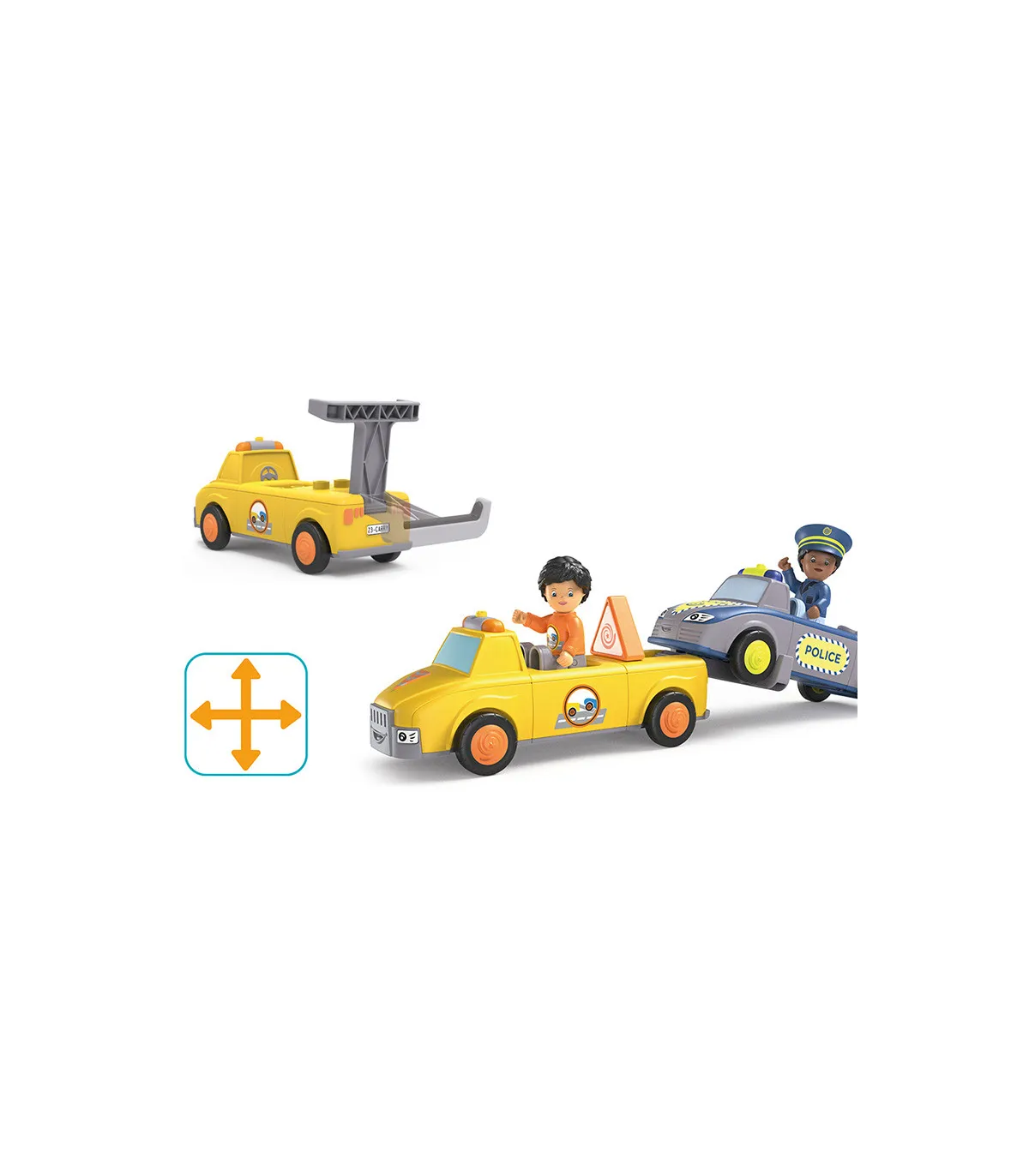 Chris y Carry están rápidamente en el lugar si Oldy se detiene o si otro equipo de Toddy tiene una avería. El equipo de remolque de color amarillo brillante es visible desde lejos. Ambos están bien equipados y son incansables en sus esfuerzos por recoger a sus amigos dondequiera que estén. Chris y Carry llegan con fuertes gritos y la luz amarilla parpadeando. En el lugar, Chris primero protege el punto de peligro con su triángulo de advertencia muy prominente. Pregunta qué ha pasado e inspecciona de cerca el vehículo. Si Chris no puede reparar el daño en el acto, pliega el súper soporte de remolque de Carry y fija de forma segura el coche averiado detrás de él. Ahora sólo tiene que recoger rápidamente su triángulo de advertencia y volver a insertarlo. Y luego se pasa al siguiente taller para que el coche vuelva a estar en condiciones. Emocionante juguete de primera calidad para niños a partir de 24 meses, con motor de fricción (motor volante) para fomentar la motricidad fina, la constancia, la paciencia y la diversión. El muñeco de Chris tiene partes móviles: la cabeza se puede girar, los brazos se pueden levantar y las piernas se pueden doblar. El vehículo Carry se puede dividir en tres partes y combinar con otros vehículos Toddys. Efectos de luz y sonido para apoyar las características del vehículo. El dispositivo de remolque abatible y el triángulo extraíble también estimulan la experiencia de juego. Chris Carry es compatible con componentes de otros fabricantes. Sistema siku “Click&Play”: Fácil de combinar gracias al sistema de giro y empuje de las piezas del vehículo