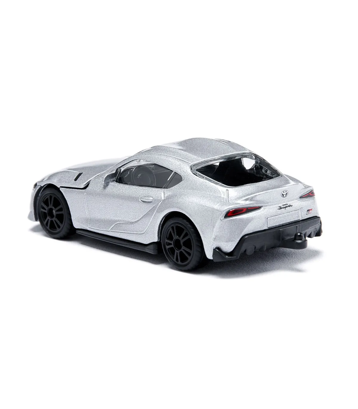 Nada es imposible toyota. Lo que el fabricante de automóviles japonés alguna vez prometió en su publicidad, hoy lo cumple al 100 por ciento: con el GR Supra, Toyota demuestra que el fabricante de automóviles también puede desarrollar vehículos deportivos modernos e impresionantes con un absoluto estilo de culto. El diseño del deportivo GR impresiona inmediatamente por su aspecto moderno: Toyota combina hábilmente un elegante tono plateado carbón oscuro con llantas de color negro intenso. Lo que sugiere su aspecto se puede admirar en realidad como una réplica en miniatura bajo el capó del modelo: debajo se encuentra una réplica detallada del impresionante motor de 3,0 litros. No sólo permite una marcha extremadamente suave sino, sobre todo, una aceleración directa de 0 a 100 km/h en 4,3 segundos. El motor, así como el chasis y el interior, están fabricados en plástico negro resistente. La carrocería, por otro lado, está hecha de metal, los faros y las luces traseras, como siempre en siku, se ven como una impresión fiel al original. También típico de siku: las llantas deportivas con banda de rodadura de goma para un agarre perfecto en todas las carreteras y circuitos de carreras en las habitaciones de los niños de todo el mundo.