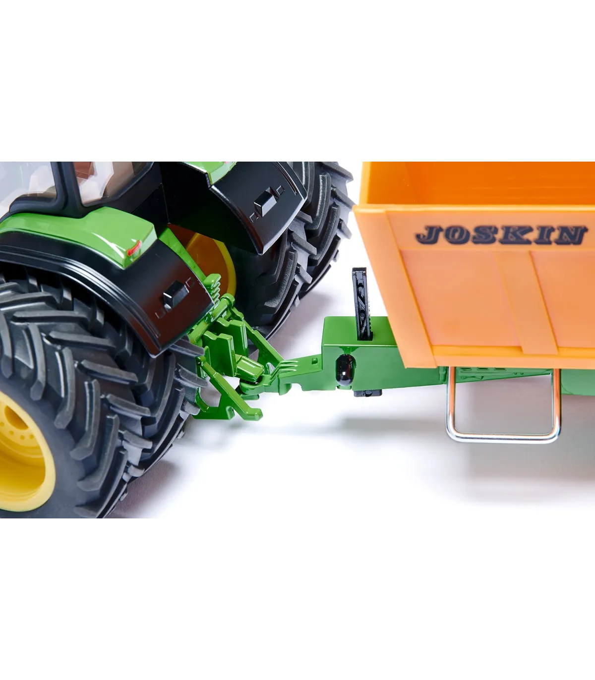 La nueva cabina del conductor ampliada con espejos plegables también ofrece una mejor visibilidad y visión general cuando se trabaja en el campo o en el jardín. Se puede quitar, no solo facilitando el acceso del conductor, sino que también ofrece un mejor acceso al volante. El tractor se puede controlar con el y, por lo tanto, permite una experiencia de juego y conducción aún más realista: una dirección de doble pivote en el eje delantero hace que el tractor sea fácil de maniobrar. Además, el enganche delantero y trasero estándar siku de metal con elementos móviles permite subir y bajar máquinas agrícolas. Como siempre ocurre con siku, los faros y las luces también se indican en este modelo en la impresión fiel al original.
