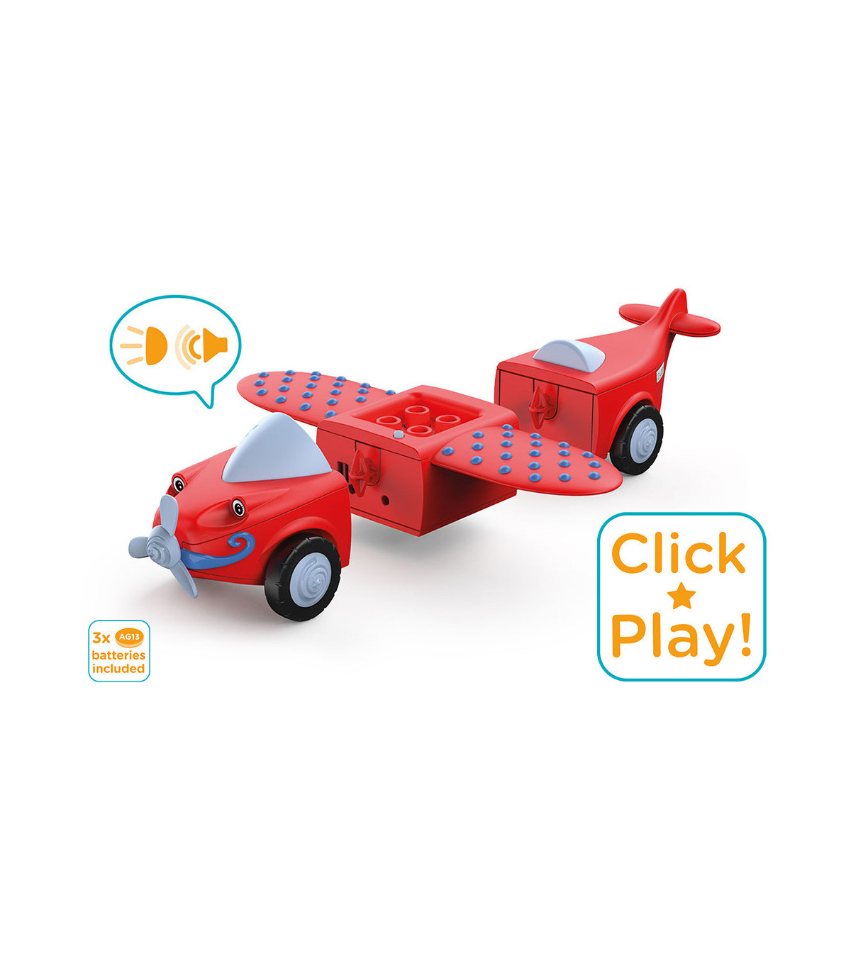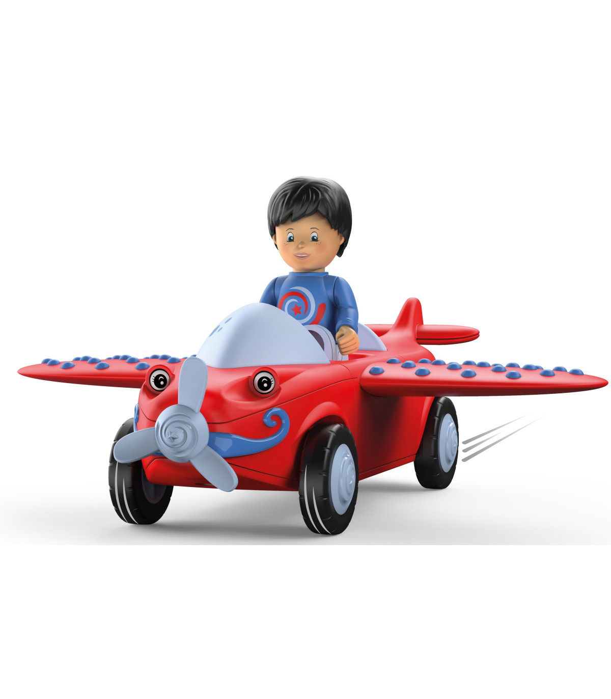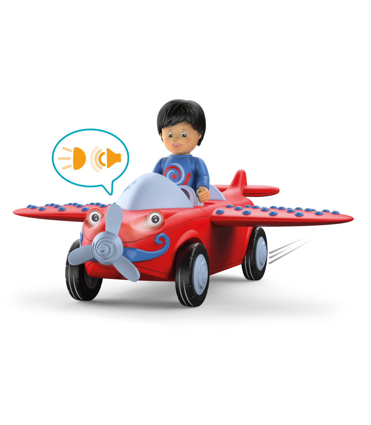 ¡Todos aman a este equipo! Son verdaderos artistas, y donde otras personas sólo ven nubes y estrellas, Leo ve la oportunidad de realizar los trucos y acrobacias de vuelo más salvajes. Su amigo Loopy es un auténtico maestro en el arte de volar. Ninguna nube está a salvo de ellos. ¡Abróchate el cinturón y únete a nosotros!Emocionante juguete de primera calidad para niños a partir de 18 meses, con motor de fricción (motor de volante) para fomentar la motricidad fina, la constancia, la paciencia y la diversión. La figura de Leo tiene partes móviles: se puede girar la cabeza, levantar los brazos y doblar las piernas. El avión Loopy se puede dividir en tres partes y combinar con otros vehículos Toddys. Efectos de luz y sonido para apoyar las características del vehículo. Las suaves protuberancias de las alas son estímulos táctiles y fomentan el sentido del tacto. Leo Loopy es compatible con componentes de otros fabricantes. Sistema siku “Click&Play”: fácil de combinar gracias al sistema de giro y empuje de las piezas del vehículo