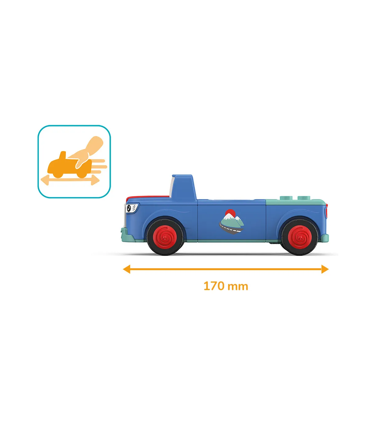 Para Mio y Mounty, ni siquiera las montañas más altas suponen un desafío. Siempre quieren llegar más alto y juntos lo conseguirán. Son amigos de las marmotas y saben dónde tiene su nido el águila. Por las noches, se sientan alrededor de la fogata y planean sus aventuras. Juguete emocionante y de primera calidad para niños a partir de 18 meses, con motor de fricción (motor de volante) para fomentar la motricidad fina, la perseverancia, la paciencia y la diversión. La figura de juego Mio tiene partes móviles: se puede girar la cabeza, levantar los brazos y doblar las piernas. El vehículo Mounty se puede dividir en tres partes y combinar con otros vehículos Toddys. Mounty tiene un segundo asiento reservado para los amigos de Mio. Mio Mounty es compatible con componentes de otros fabricantes. Sistema siku “Click&Play”: fácil de combinar gracias al sistema de giro y empuje de las piezas del vehículo