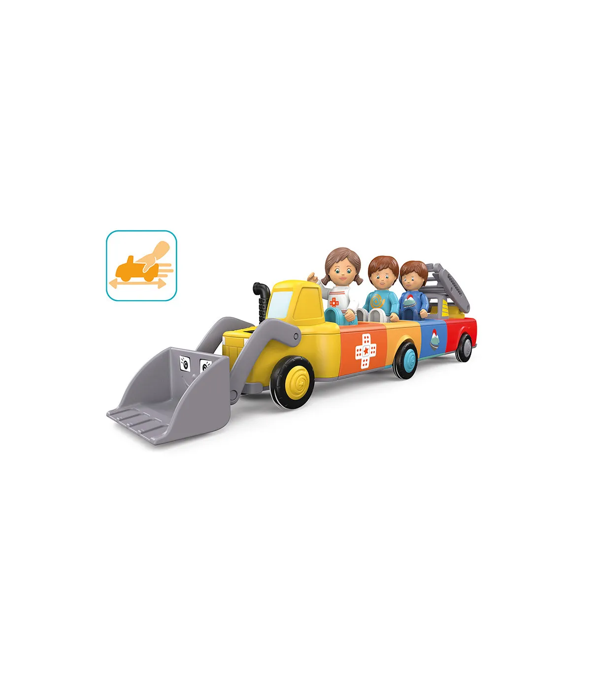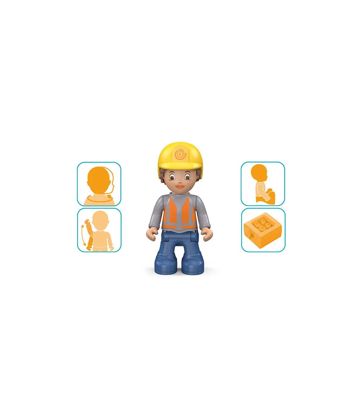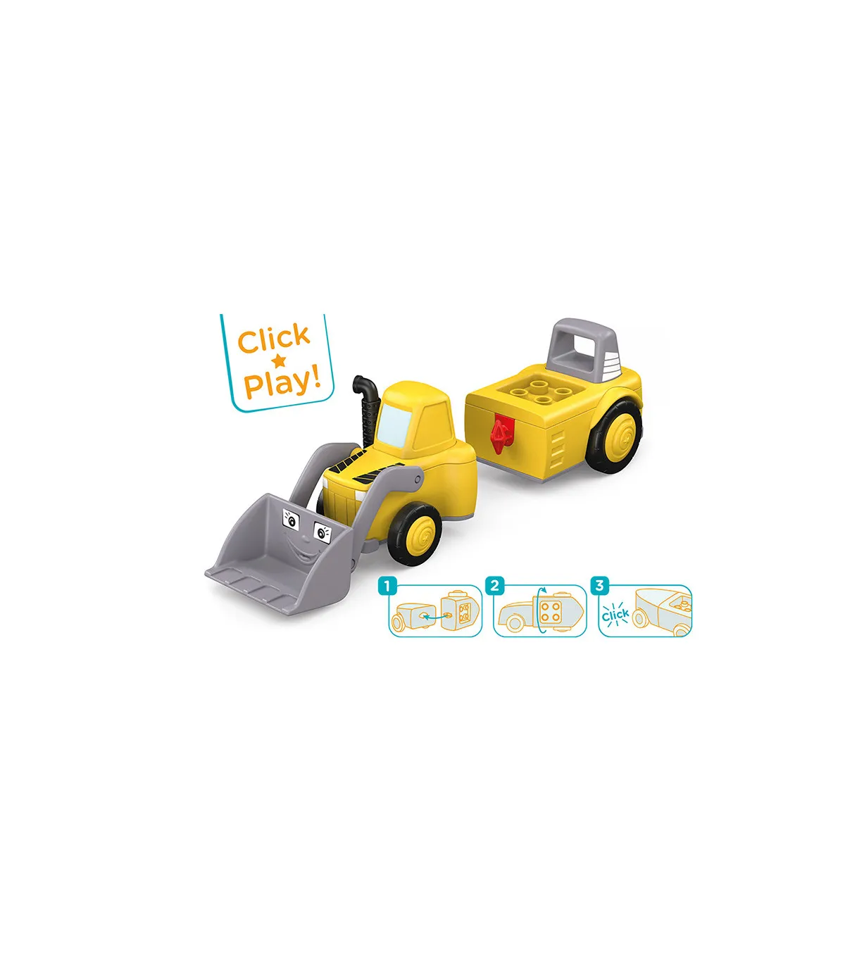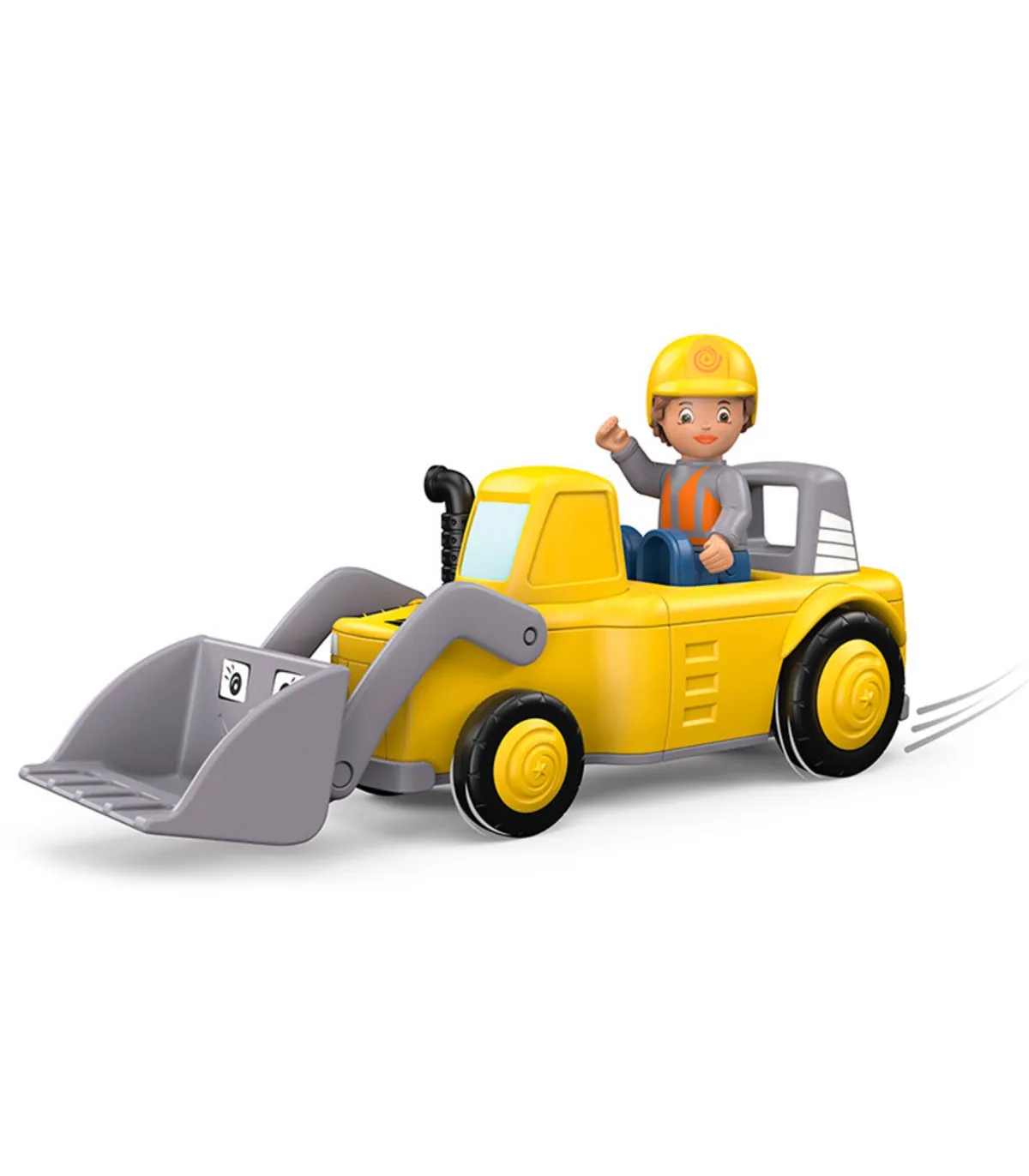 Luke y Loady, el cargador de ruedas amarillo, forman un equipo realmente fuerte. Su lema es: “¡Sigamos atrapados! ¡Ponte el casco y nos vamos! Los dos no tienen ningún problema para enfrentarse a un enorme montón de piedras o arena. Están felices cuando todos sus amigos en el mundo de Toddys pueden viajar con seguridad y no hay baches que puedan causar accidentes. Luke se arremanga y le echa una mano a Loady siempre que puede. Hay un agujero en el camino, así que Loady lo llena con arena y grava usando su súper pala para repararlo. Luke salta detrás de los controles y los dos pasan varias veces sobre el agujero lleno para compactarlo. ¡Brillante! El agujero ya ha sido llenado y los dos inspeccionan con orgullo su trabajo. Y ahora vamos a la siguiente obra. Emocionante juguete de primera calidad para niños a partir de 24 meses, con motor de fricción (motor volante) para fomentar la motricidad fina, la constancia, la paciencia y la diversión. El muñeco de Luke tiene partes móviles: la cabeza se puede girar, los brazos se pueden levantar y las piernas se pueden doblar. El vehículo Loady se puede dividir en dos partes y combinar con otros vehículos Toddys. La pala móvil y el enganche del remolque también estimulan la experiencia de juego. Luke Loady es compatible con componentes de otros fabricantes. Sistema siku “Click&Play”: Fácil de combinar gracias al sistema de giro y empuje de las piezas del vehículo