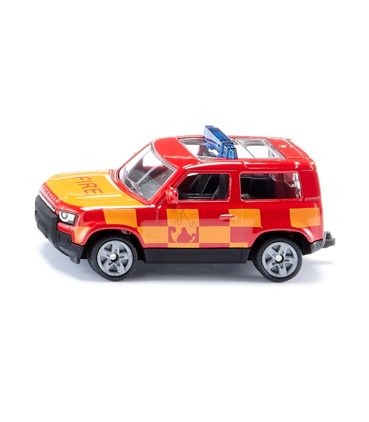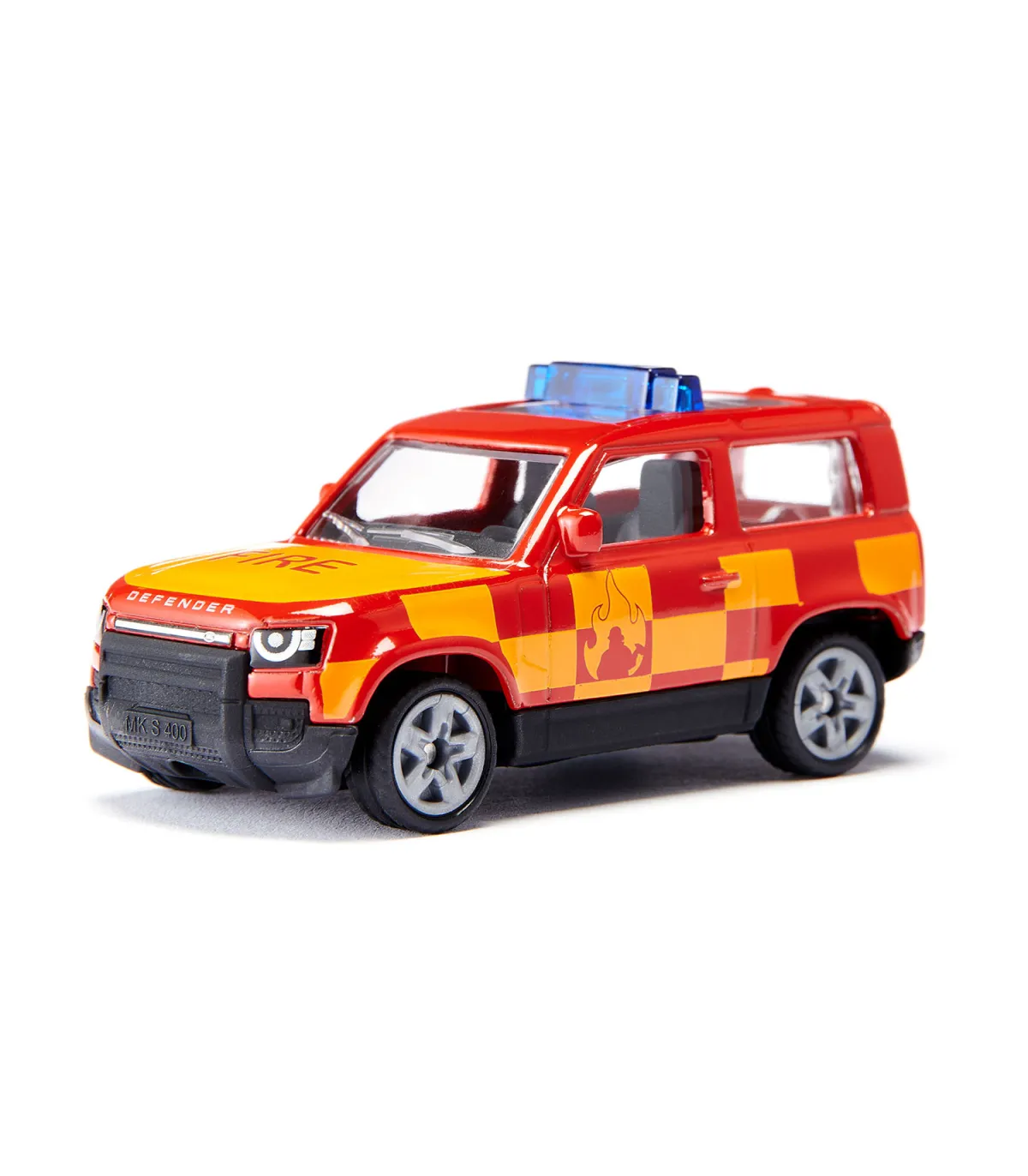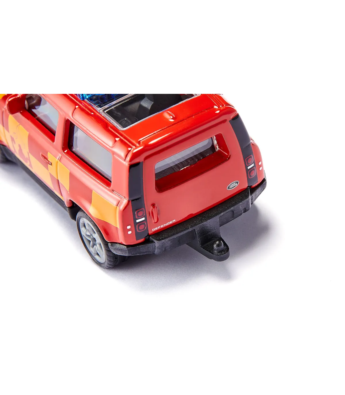 ¡Robusto, poderoso, imparable! El Land Rover Defender es uno de los vehículos todoterreno más legendarios del mundo del automóvil y lo es desde hace más de 70 años. No es de extrañar que los bomberos también confíen en el Defender y lo utilicen para operaciones en terrenos difíciles. Con su carrocería de metal y sus llantas deportivas con banda de rodadura de goma, el modelo Defender también desafía el viento y las inclemencias del tiempo durante el juego. El gran techo corredizo acristalado ofrece una visión clara del interior del vehículo, que también es fiel al original en pequeñas dimensiones y está fabricado en plástico resistente. La llamativa pintura roja de bomberos con detalles en amarillo y la barra de señales azul en el techo lo dejan claro de inmediato: este Defender está siempre en uso y siempre listo para pequeñas y grandes operaciones de rescate todoterreno. Como siempre en siku, los faros y las luces traseras se reproducen fielmente al original. El Land Rover Defender Fire Department también viene de serie con llantas plateadas y un enganche de remolque integrado, gracias al cual se puede combinar con varios modelos de remolques siku.