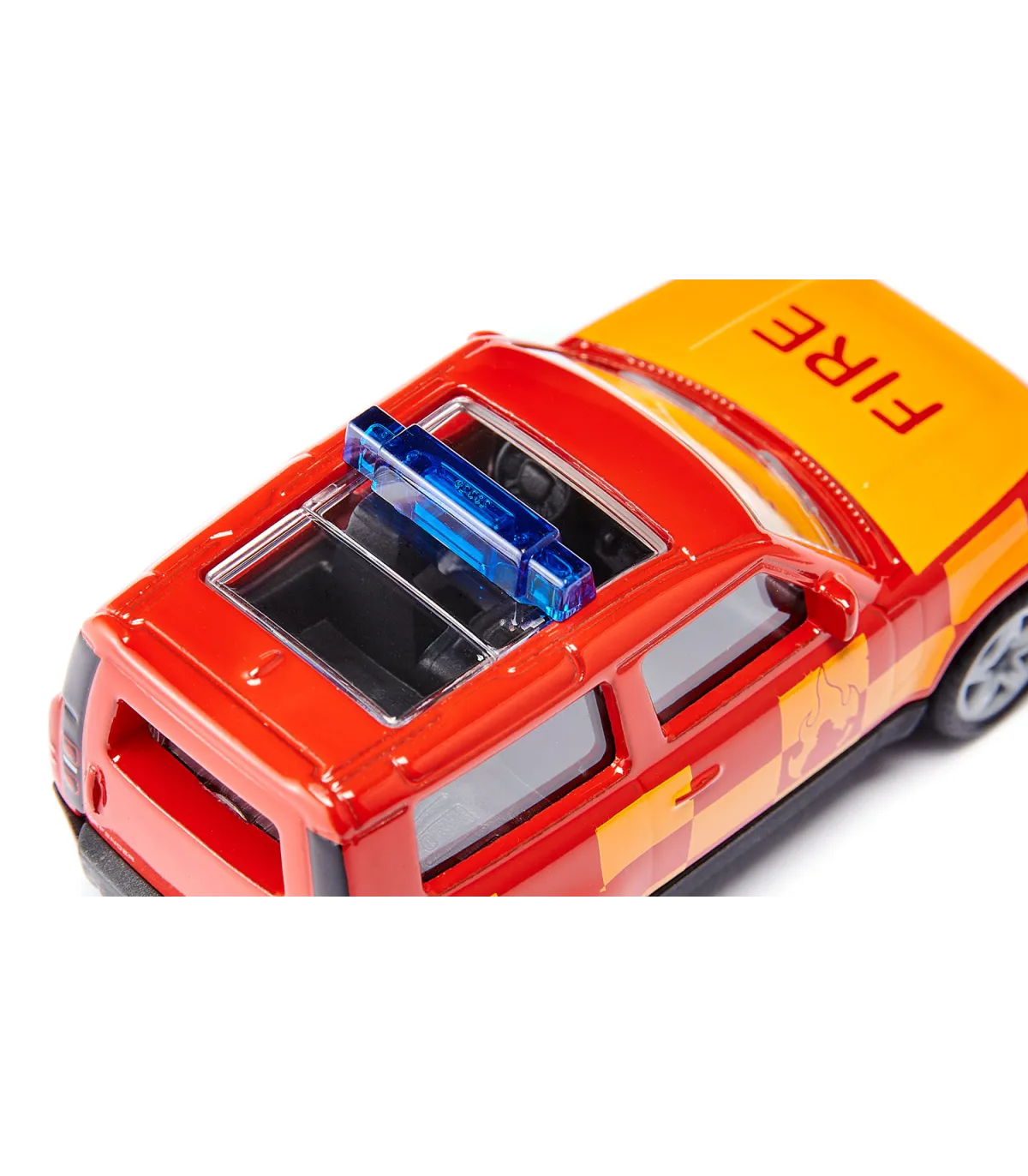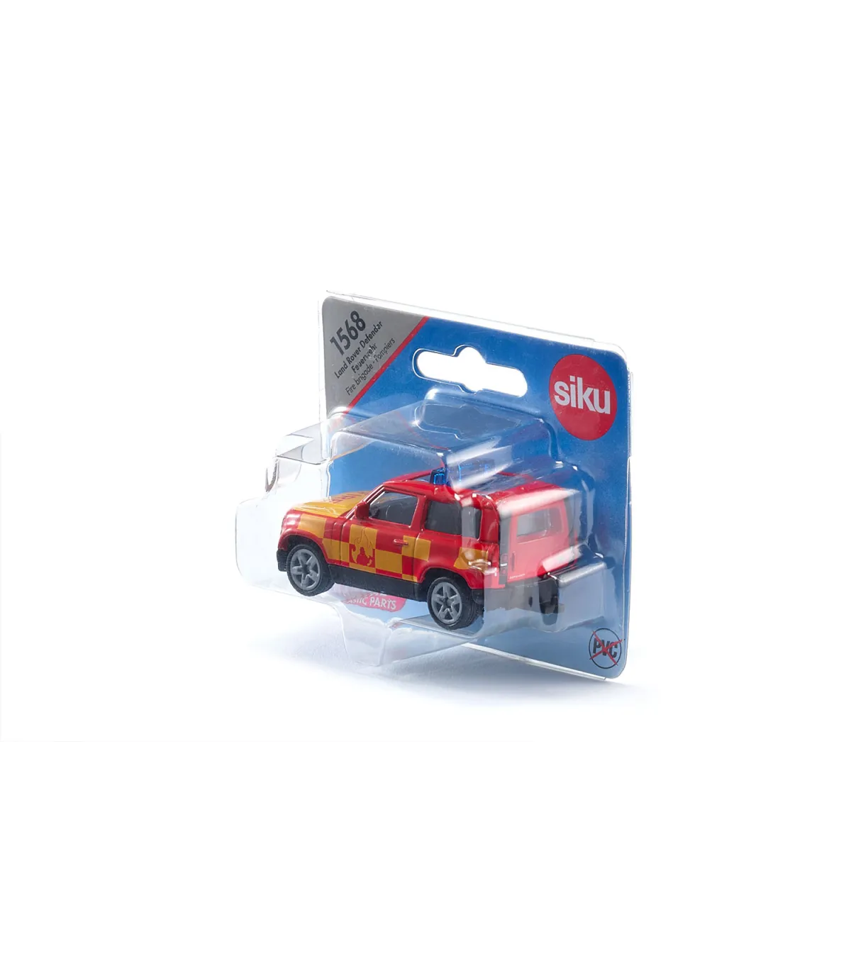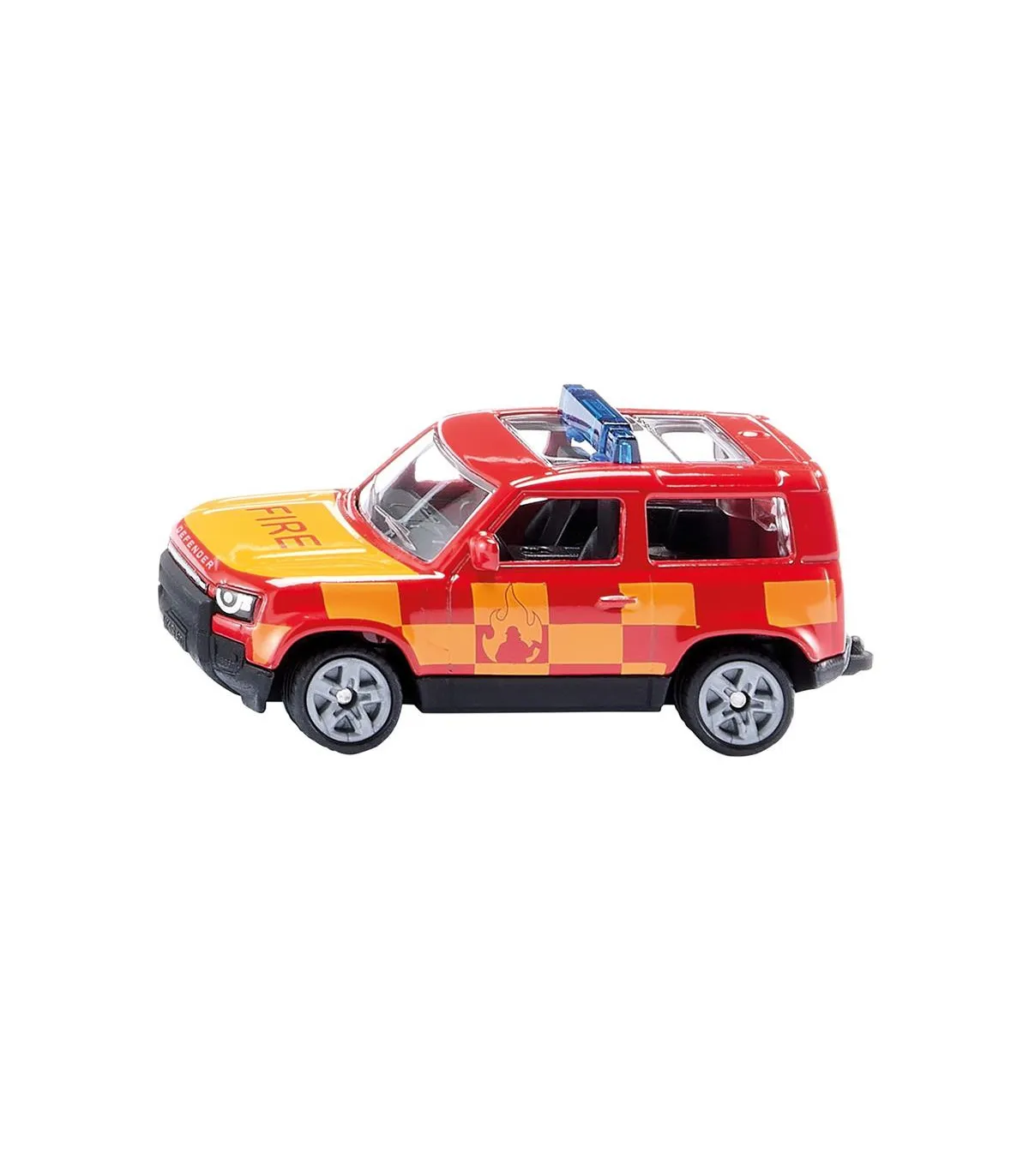¡Robusto, poderoso, imparable! El Land Rover Defender es uno de los vehículos todoterreno más legendarios del mundo del automóvil y lo es desde hace más de 70 años. No es de extrañar que los bomberos también confíen en el Defender y lo utilicen para operaciones en terrenos difíciles. Con su carrocería de metal y sus llantas deportivas con banda de rodadura de goma, el modelo Defender también desafía el viento y las inclemencias del tiempo durante el juego. El gran techo corredizo acristalado ofrece una visión clara del interior del vehículo, que también es fiel al original en pequeñas dimensiones y está fabricado en plástico resistente. La llamativa pintura roja de bomberos con detalles en amarillo y la barra de señales azul en el techo lo dejan claro de inmediato: este Defender está siempre en uso y siempre listo para pequeñas y grandes operaciones de rescate todoterreno. Como siempre en siku, los faros y las luces traseras se reproducen fielmente al original. El Land Rover Defender Fire Department también viene de serie con llantas plateadas y un enganche de remolque integrado, gracias al cual se puede combinar con varios modelos de remolques siku.