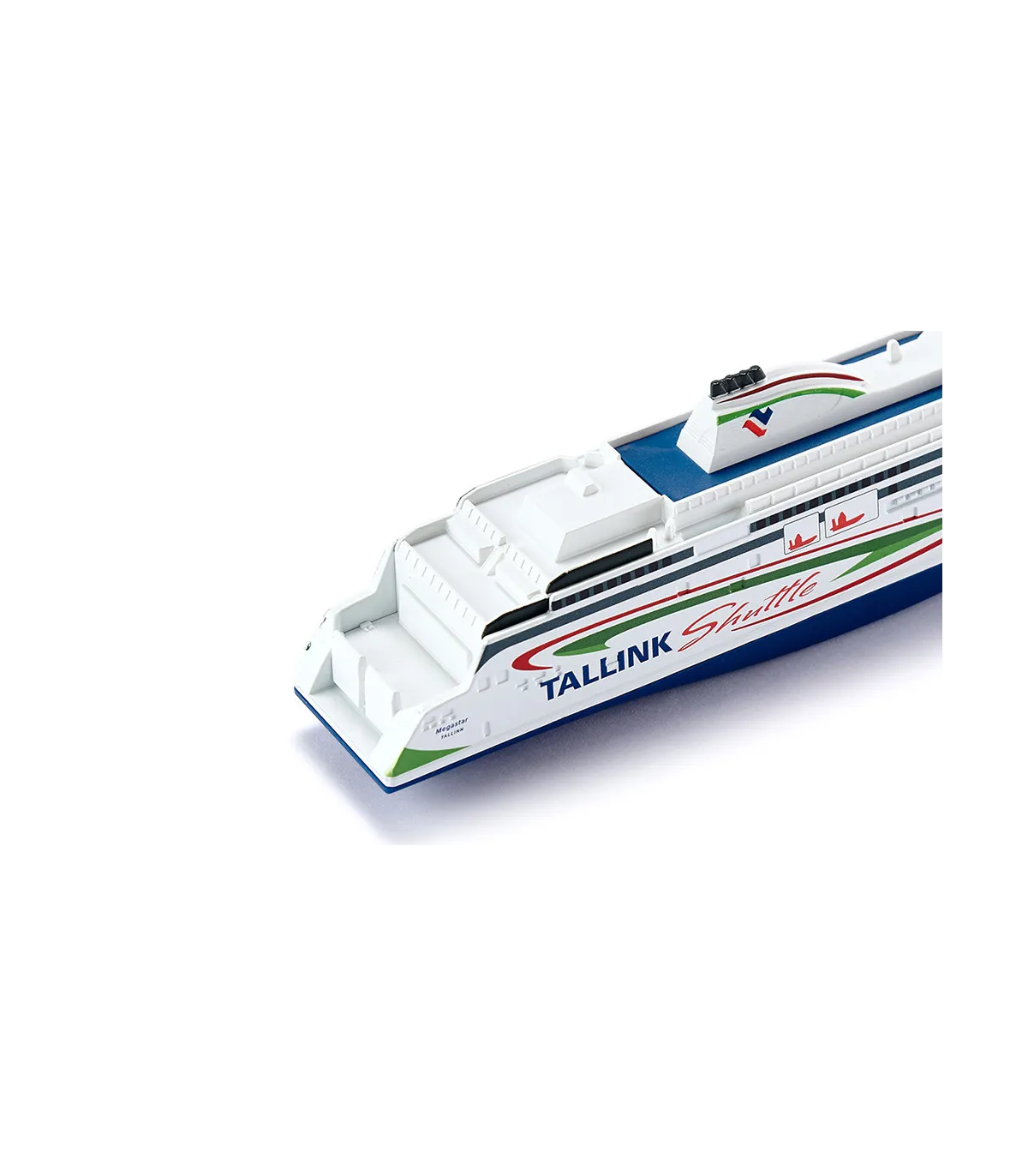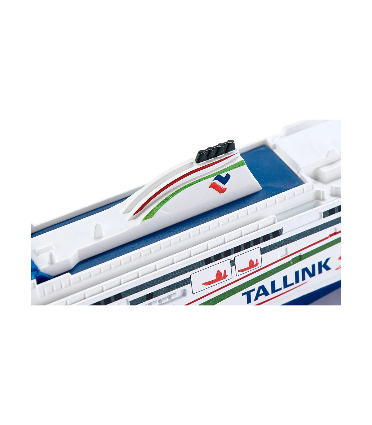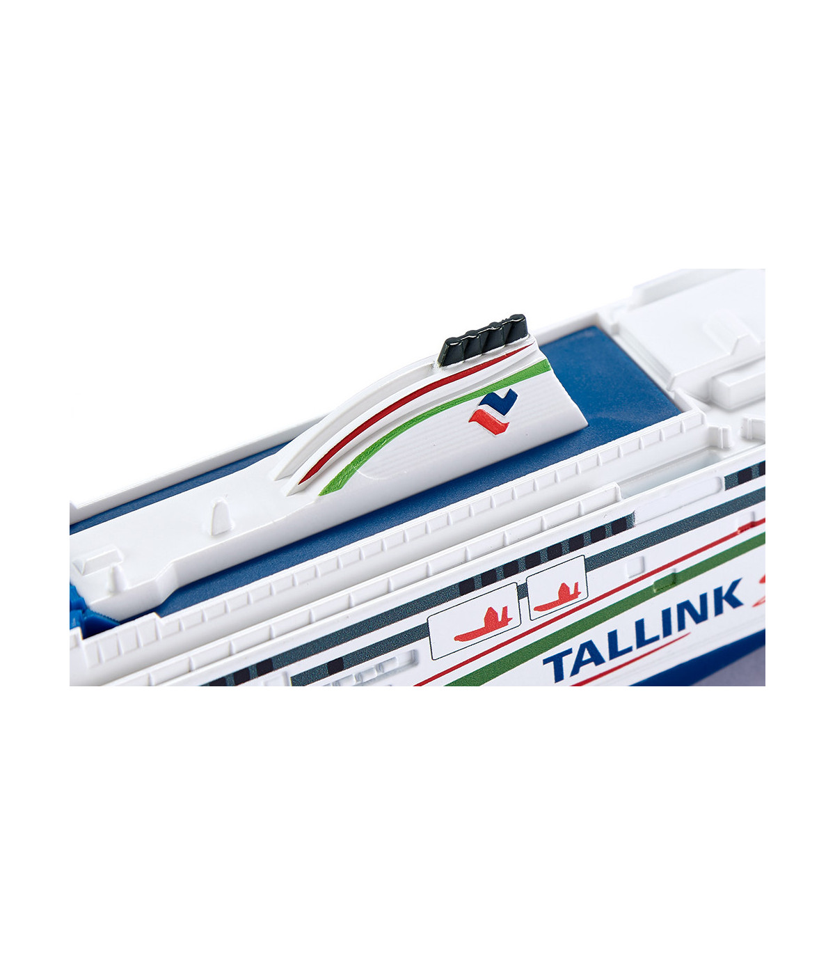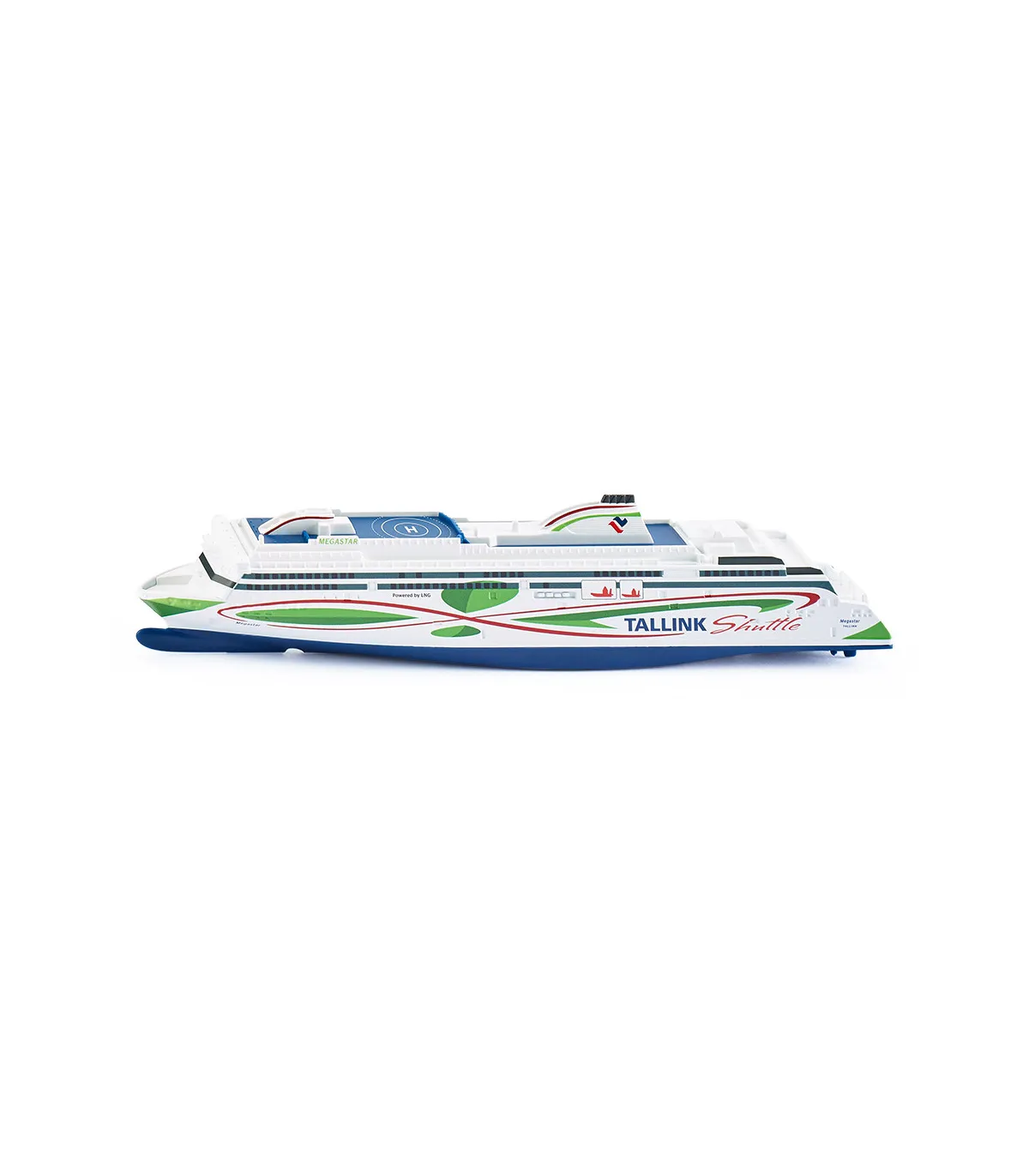 Comodidad como en un cruceroEl Tallink Megastar conecta Tallin en Estonia y la capital finlandesa, Helsinki, en tan solo dos horas de travesía. El ferry de 212,2 metros de largo transporta hasta 2.800 pasajeros. En las espaciosas cubiertas de pasajeros se sienten tan cómodos como en un crucero. El barco, que puede viajar hasta 27 nudos, funciona con gas ecológico. En siku se lanzó el ferry, que entró en servicio en 2017, con la elaborada impresión original. El modelo de metal y plástico no flota.
