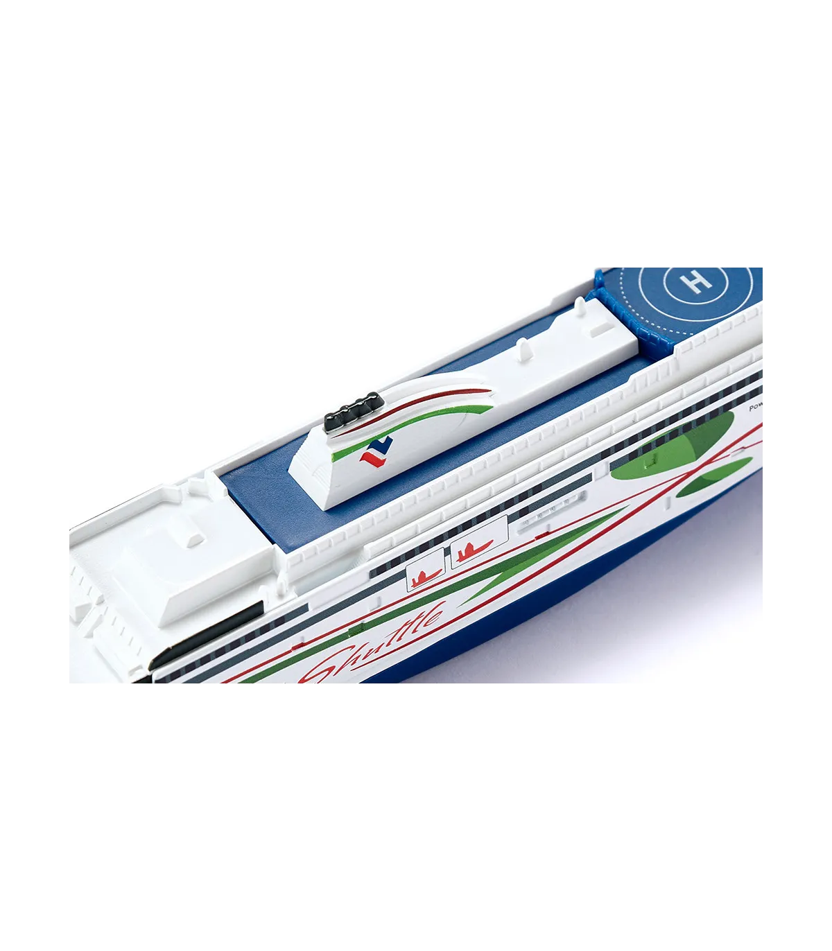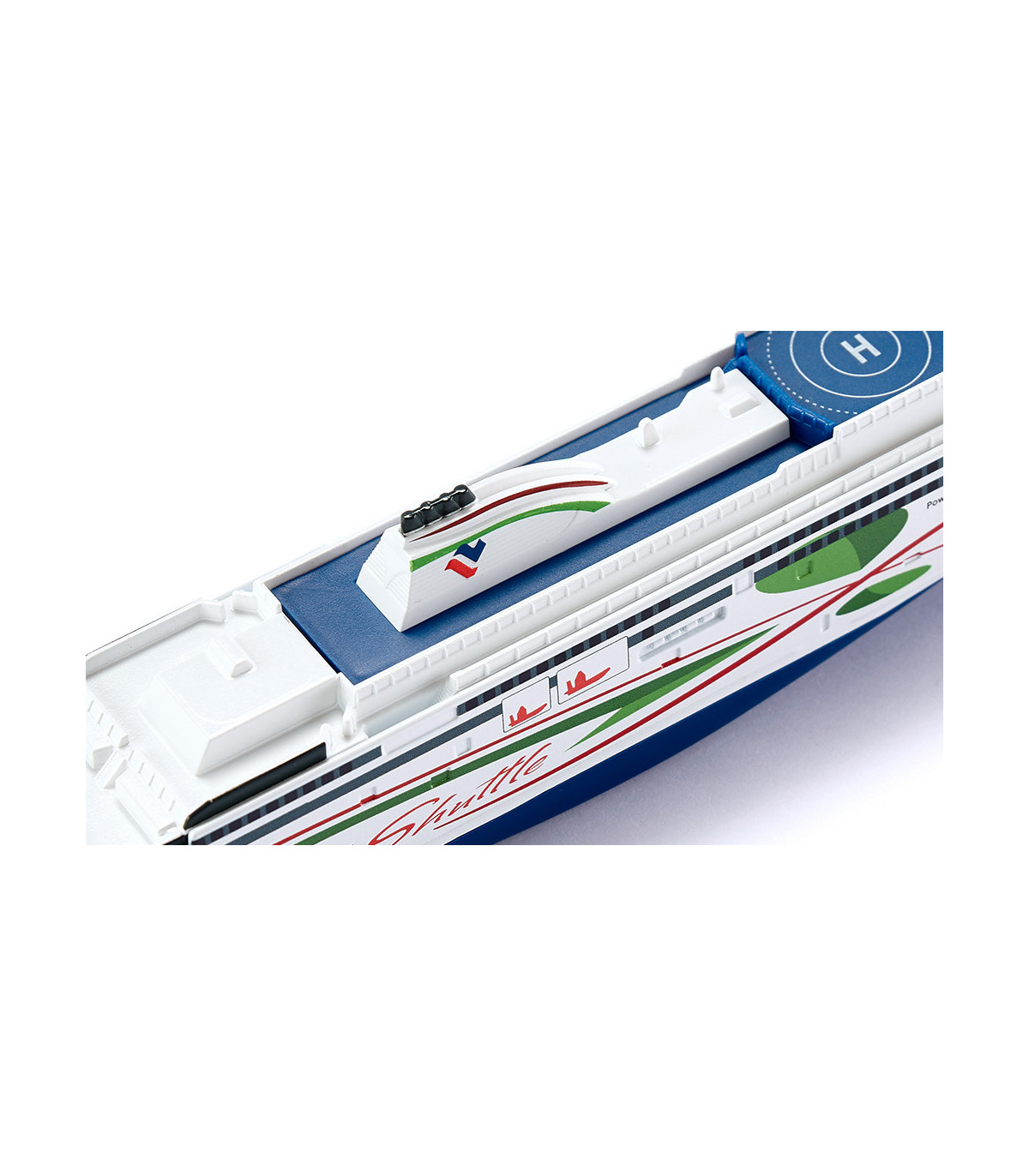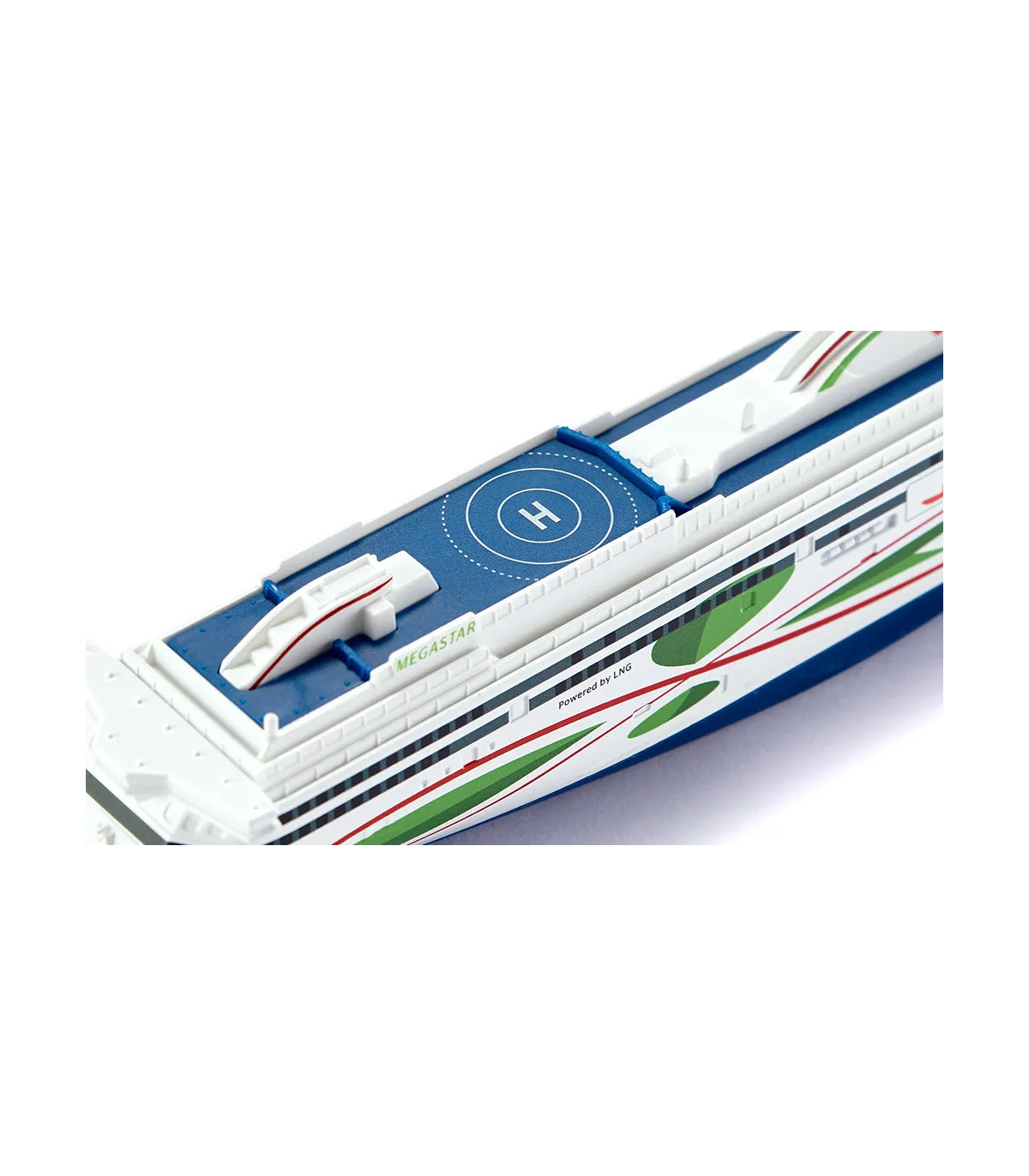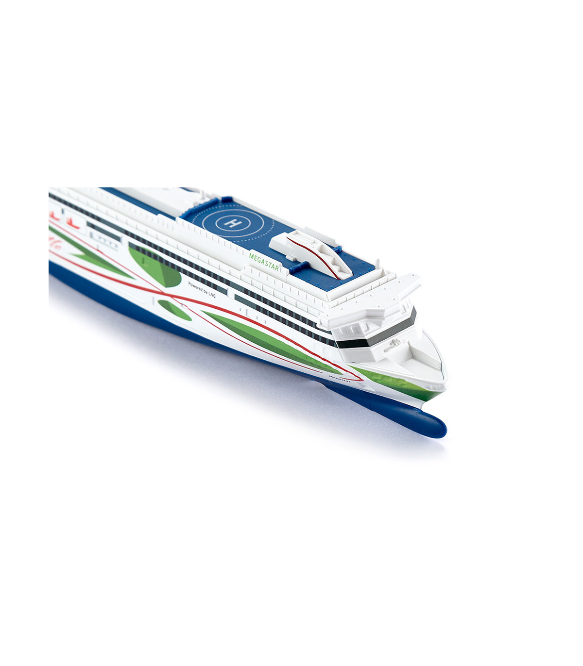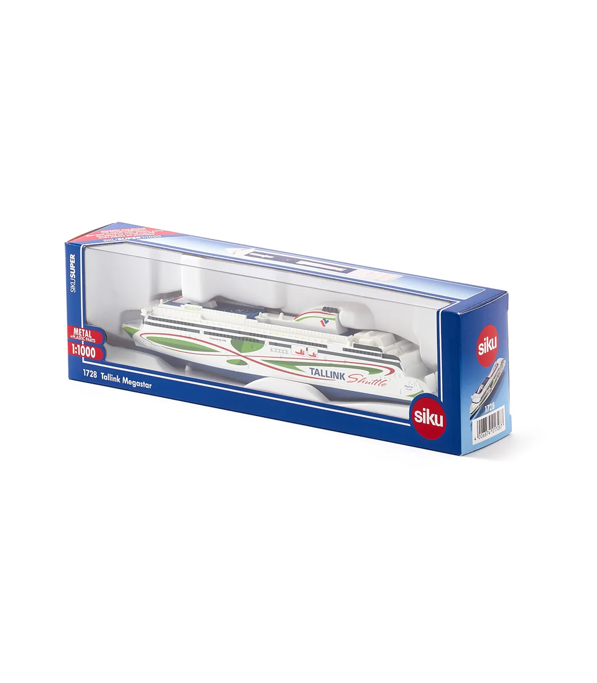 Comodidad como en un cruceroEl Tallink Megastar conecta Tallin en Estonia y la capital finlandesa, Helsinki, en tan solo dos horas de travesía. El ferry de 212,2 metros de largo transporta hasta 2.800 pasajeros. En las espaciosas cubiertas de pasajeros se sienten tan cómodos como en un crucero. El barco, que puede viajar hasta 27 nudos, funciona con gas ecológico. En siku se lanzó el ferry, que entró en servicio en 2017, con la elaborada impresión original. El modelo de metal y plástico no flota.