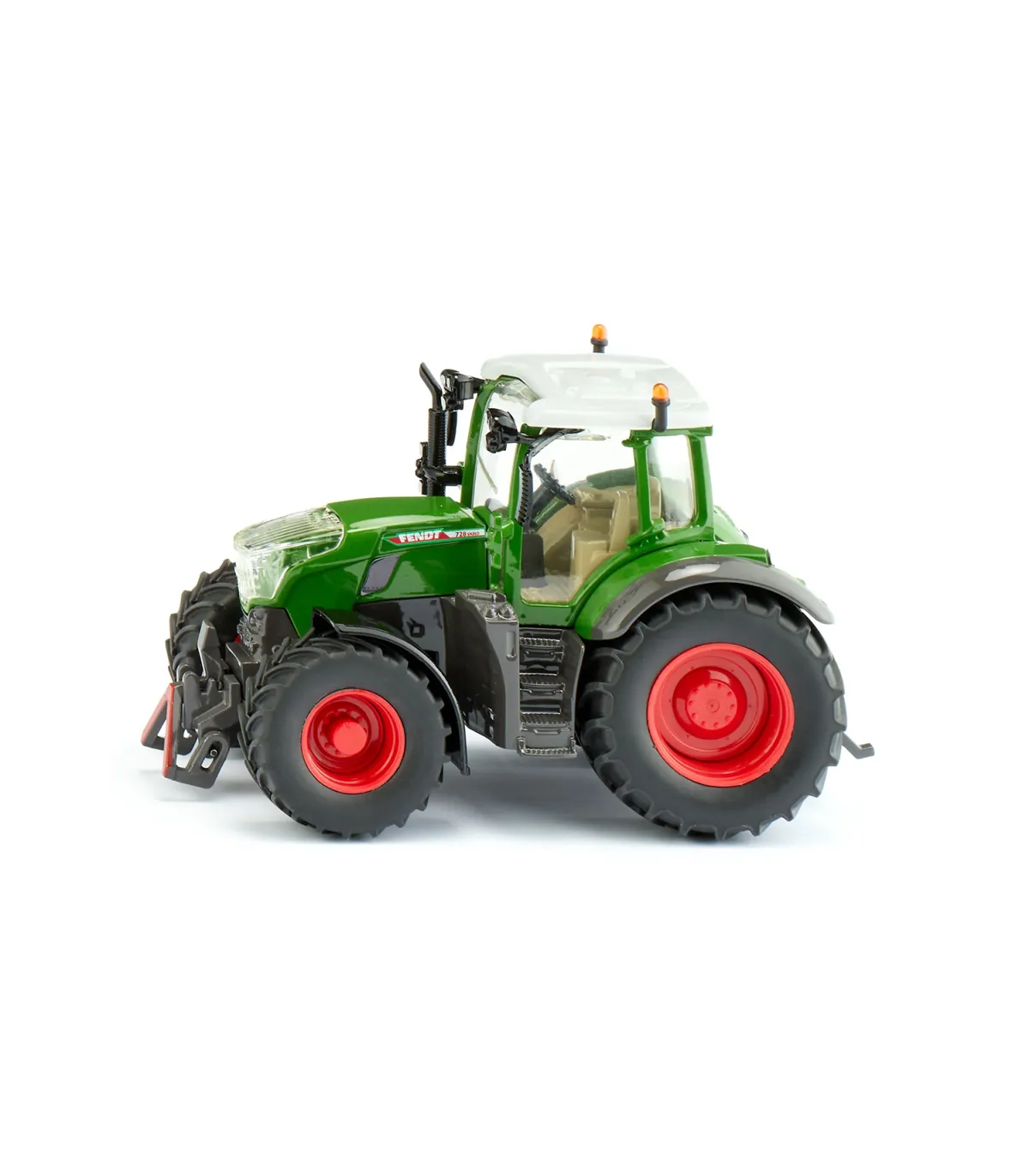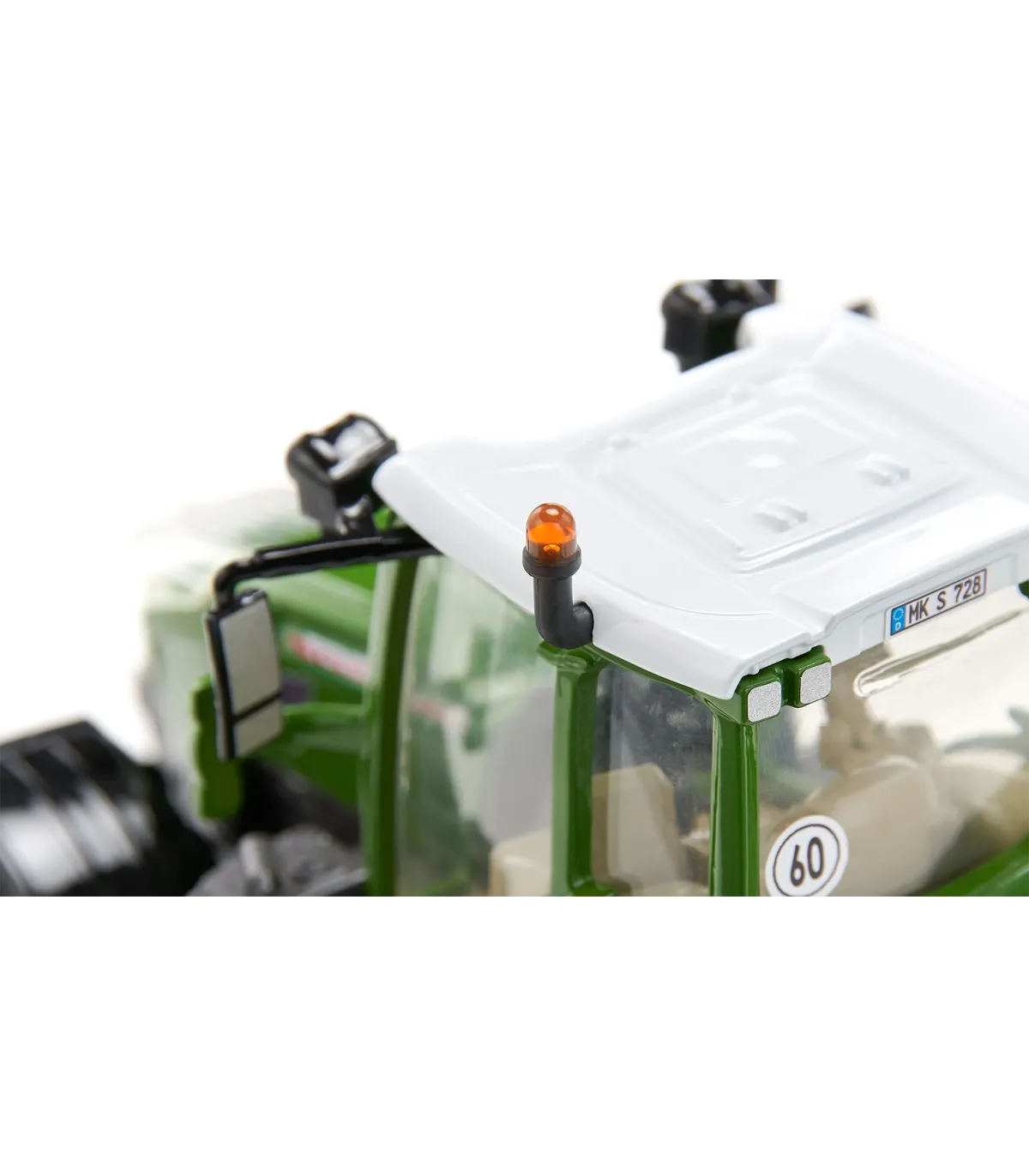 Nuevo modelo, nueva dimensión: el Fendt 728 Vario. El experto de Algovia en maquinaria agrícola ha actualizado adecuadamente los acreditados modelos de gama media de la serie 700, elevando así considerablemente el listón en el ámbito de los vehículos comerciales agrícolas. Bajo el capó del 728 Vario se esconden la friolera de 280 CV, posibles gracias a un nuevo motor de seis cilindros de AgcoPower. Gracias a la iluminación omnidireccional en el techo, el tractor está siempre listo para funcionar, incluso a altas horas de la noche y en condiciones de luz difusa, y realiza todos los trabajos en el campo de forma fiable y precisa. La cabina con espejos móviles se puede quitar y permite al conductor entrar más fácilmente. Además, el volante con el que se puede dirigir el tractor es más accesible: para una conducción y una experiencia de juego aún más realistas, el modelo dispone de dirección en el eje delantero. El acoplamiento delantero y trasero siku de serie, fabricado en metal con elementos móviles, también permite subir y bajar máquinas agrícolas. Ideal para usar en habitaciones infantiles y en el jardín: el capó, los guardabarros delantero y trasero y el chasis del modelo son de metal y son muy robustos. Los neumáticos de goma con banda de rodadura agrícola original también ofrecen un agarre óptimo en cualquier superficie. Como siempre ocurre con siku, los faros y las luces delanteras y traseras están impresos fielmente al original.