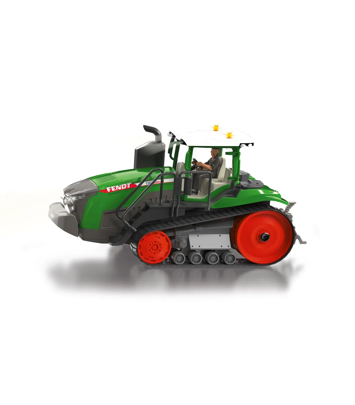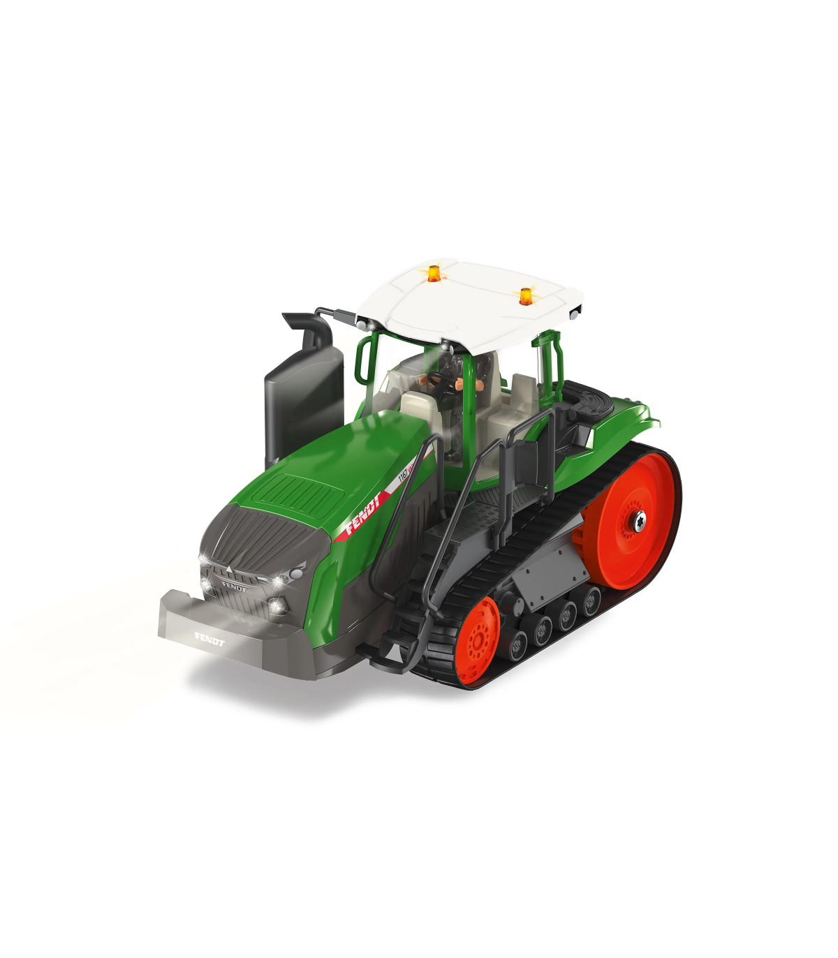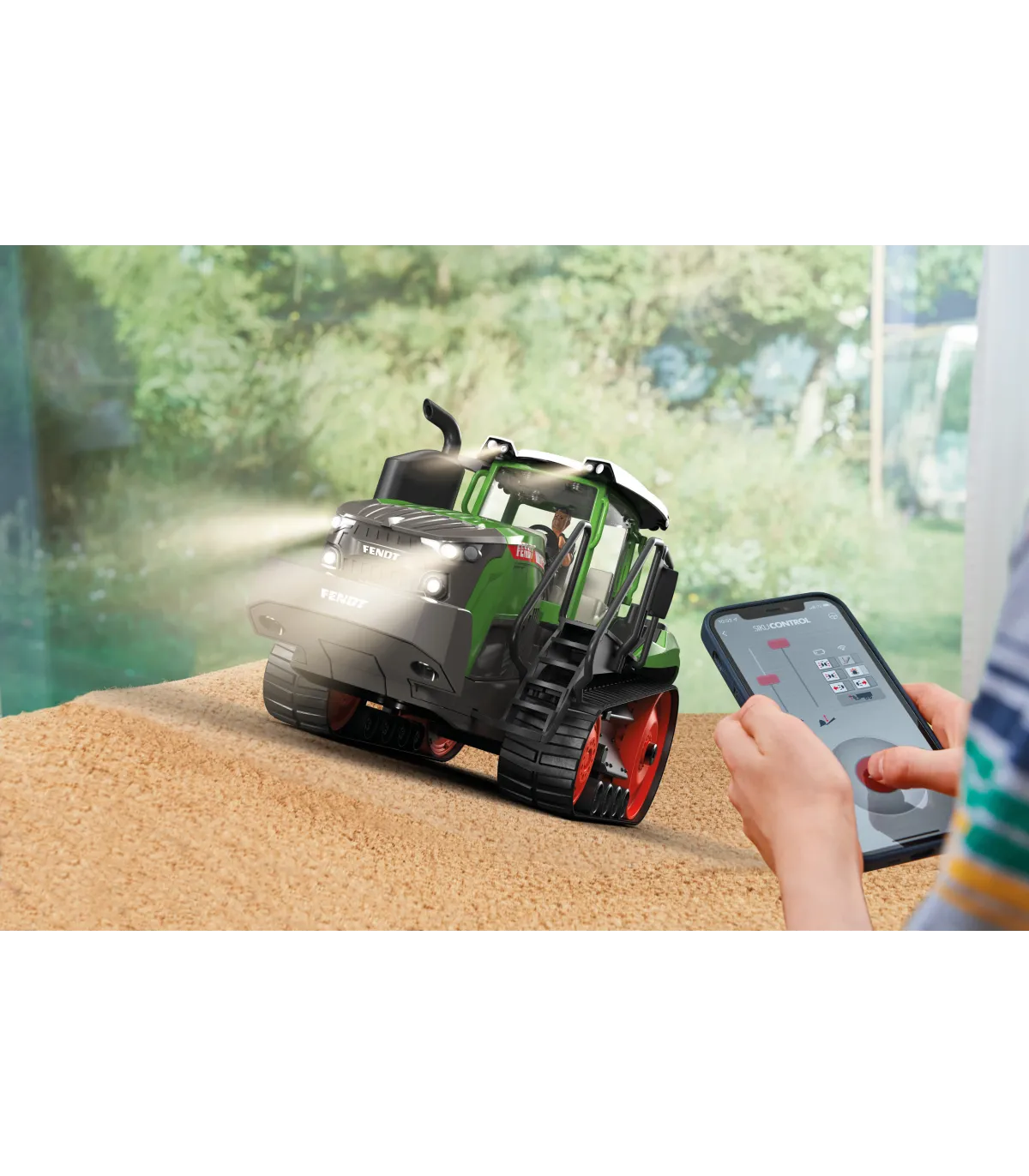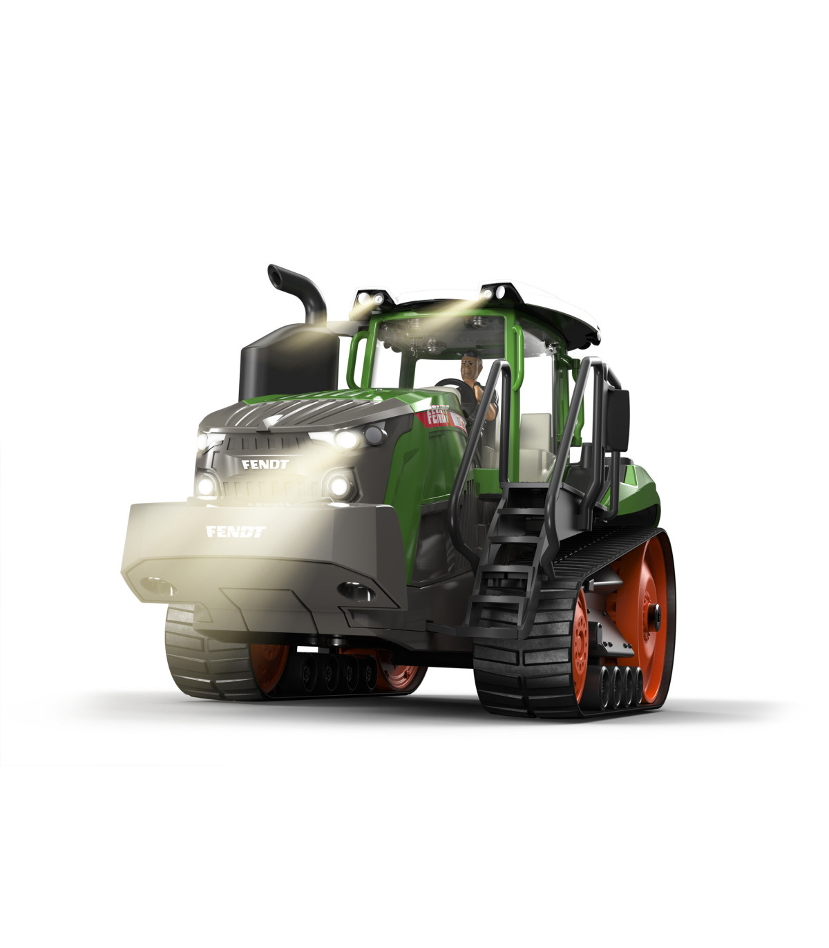 En 1995, Fendt revolucionó la tecnología agrícola con el primer tractor del mundo con tracción continuamente variable. 20 años después, el primer tractor Fendt Vario marcó el comienzo de la próxima generación de transmisiones Vario. Hoy en día, Fendt ocupa el segmento de mayor rendimiento con la serie 1100 Vario MT. Como modelo superior absoluto, el Fendt 1167 Vario tiene 673 CV, la potencia más alta de un tractor de orugas con transmisión continua del mercado. Como modelo RC de alta gama, el Power Caterpillar promete diversión realista y de primera clase en la habitación de los niños.Pero la oruga Fendt más grande no solo impresiona en el original: como modelo RC de alta gama controlado por Bluetooth de SIKUCONTROL , la oruga Fendt 1167 Vario es una combinación única de potencia y diseño que promete una diversión inconfundible. El modelo de orugas con carrocería metálica tiene transmisión por correa accionada por dos cajas de cambios muy potentes. Esto confiere al tractor una enorme potencia. La función de conducción es proporcional y, mediante el control de las transmisiones, es posible realizar radios cerrados e incluso girar en el lugar durante la conducción. Gracias a su oruga en combinación con su potente propulsión, el tractor es extremadamente apto para uso todoterreno y ascensos: ¡incluso las pendientes más extremas no suponen ningún problema para él! Con la aplicación gratuita SIKUCONTROL se pueden controlar cómodamente con un teléfono inteligente o una tableta no solo la transmisión y la dirección, sino también los doce LED: cuatro en el capó, dos en la parte delantera y dos en la parte trasera, en el techo, así como Luces traseras e intermitentes en la parte trasera. Los intermitentes se pueden seleccionar individualmente y también se pueden conectar como luces de emergencia.