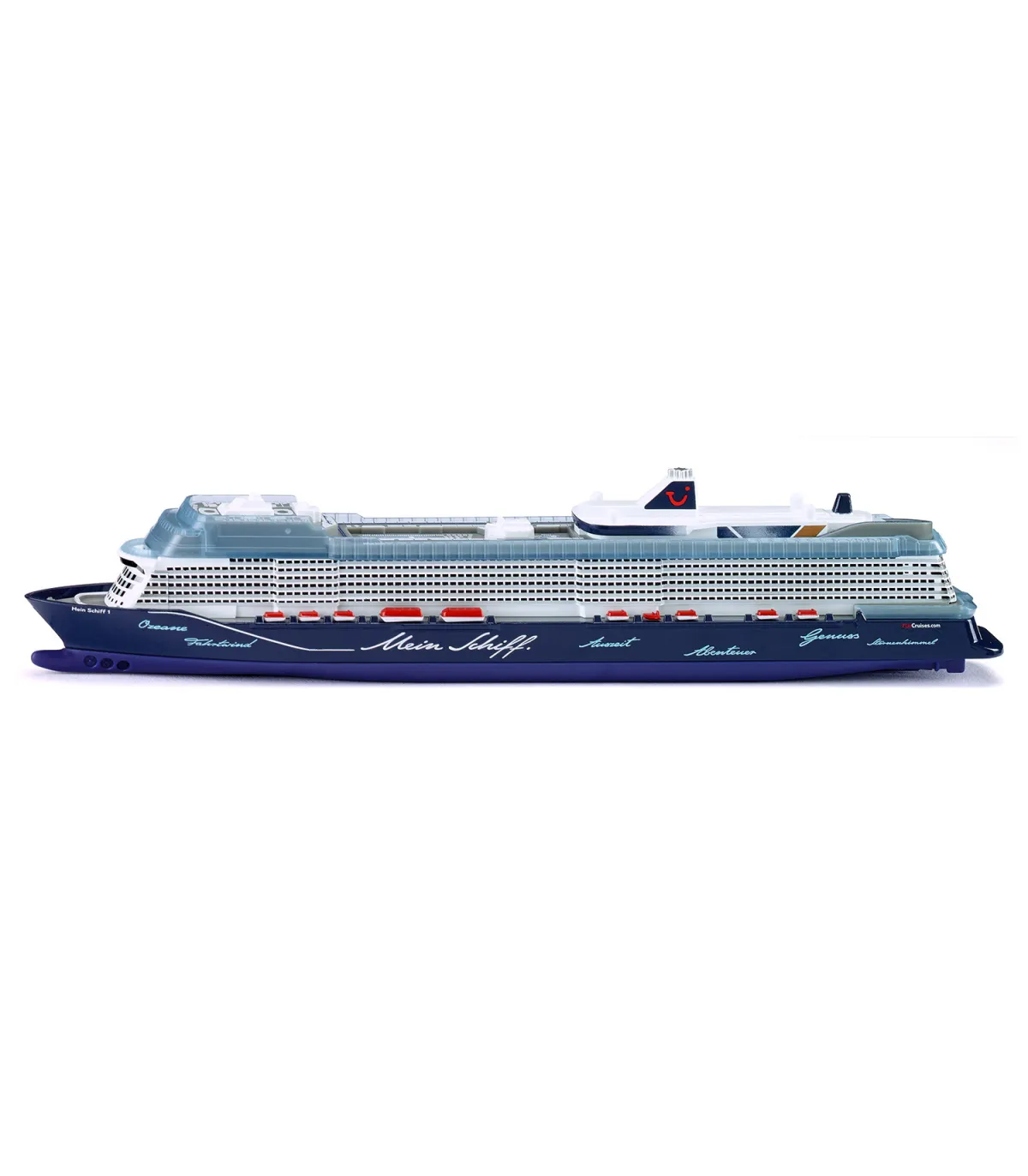 Nuevo buque insignia de TUI Cruceros: Mein Schiff 1 es el nuevo buque insignia de la flota de cruceros de TUI Cruceros. El barco navega por los océanos del mundo desde 2018. El barco, que tiene 315 metros de eslora y ofrece espacio para 2.894 pasajeros en 1.447 camarotes, también cuenta a bordo con 12 restaurantes y bistrós, 17 bares y salones y un spa y gimnasio de 2.400 m².