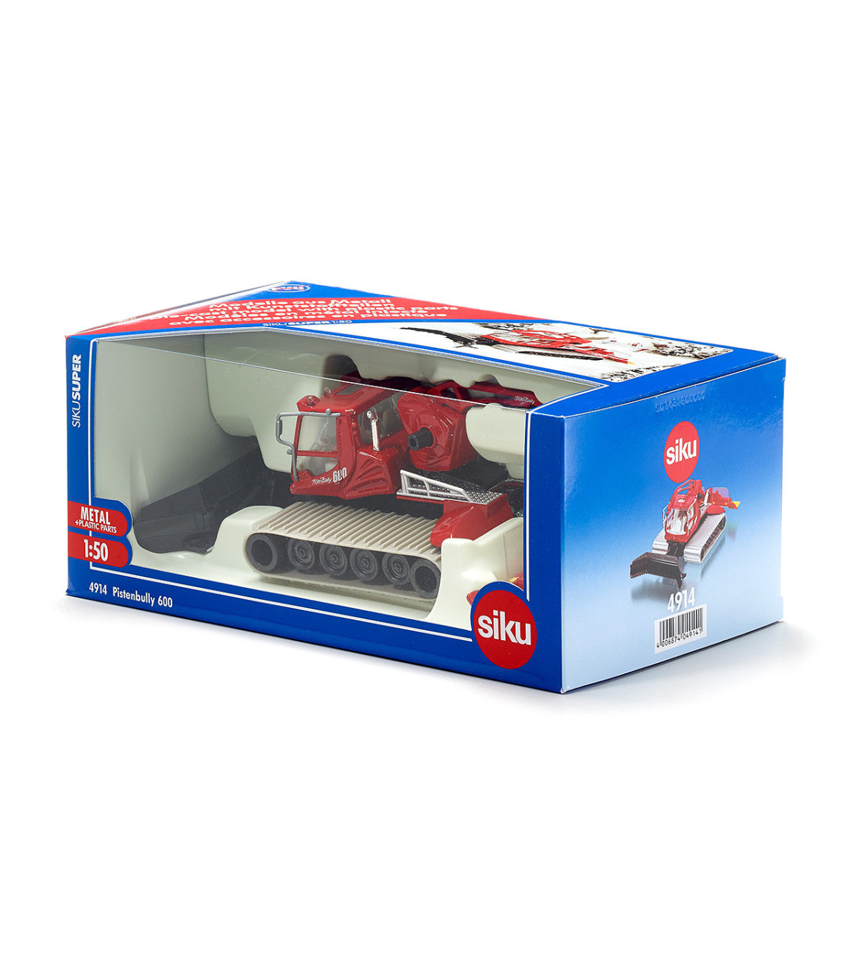 La P 600 representa la última generación de aplanadoras de nieve con una apariencia potente, más diseño y aún más funcionalidad. El modelo a escala 1:50 garantiza que la innovación SIKU se pueda utilizar para recrear auténticamente los usos alpinos para la preparación de pistas y senderos de fondo. Por supuesto, la ancha hoja delantera se puede subir y bajar y, si es necesario, la pala quitanieves también se puede mover lateralmente. Particularmente impresionante: la fresadora Alpin-Flex, totalmente móvil, está instalada en la parte trasera, de modo que también allí se puede seguir la compresión de la nieve. SIKU concede gran importancia al trabajo detallado en la P 600: se reproducen las luces traseras y de trabajo. El cabrestante de carga esencial en la plataforma se puede girar y el brazo del cabrestante asociado se puede subir y bajar para la función de transporte.