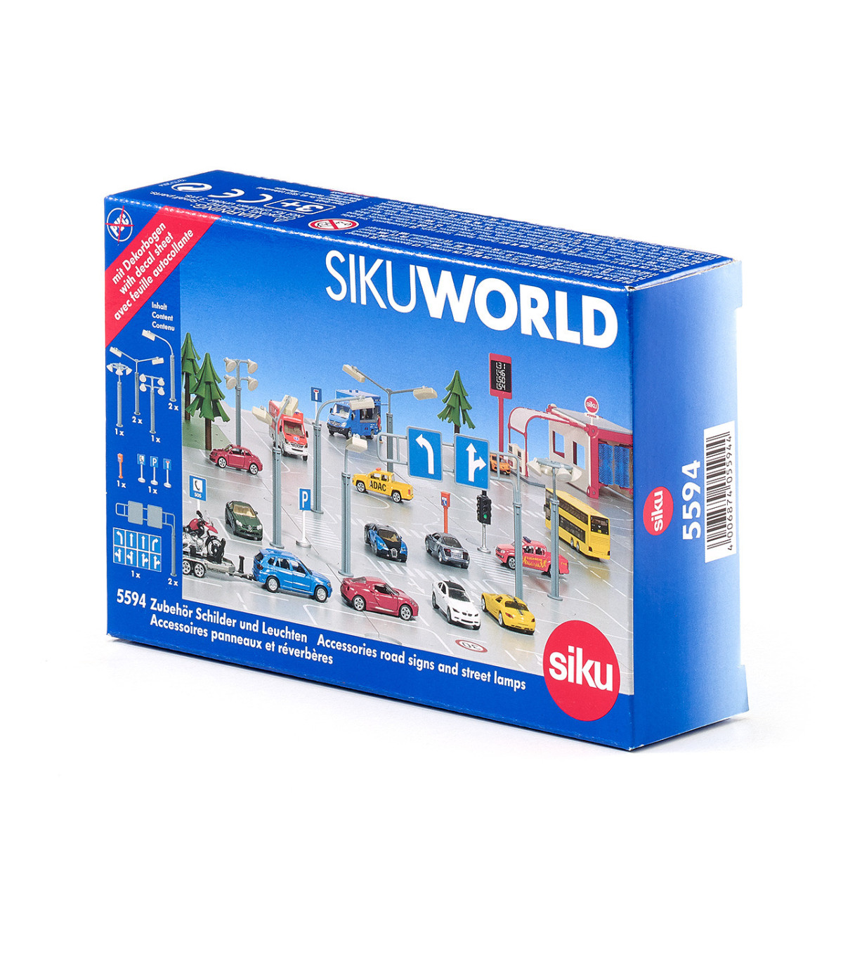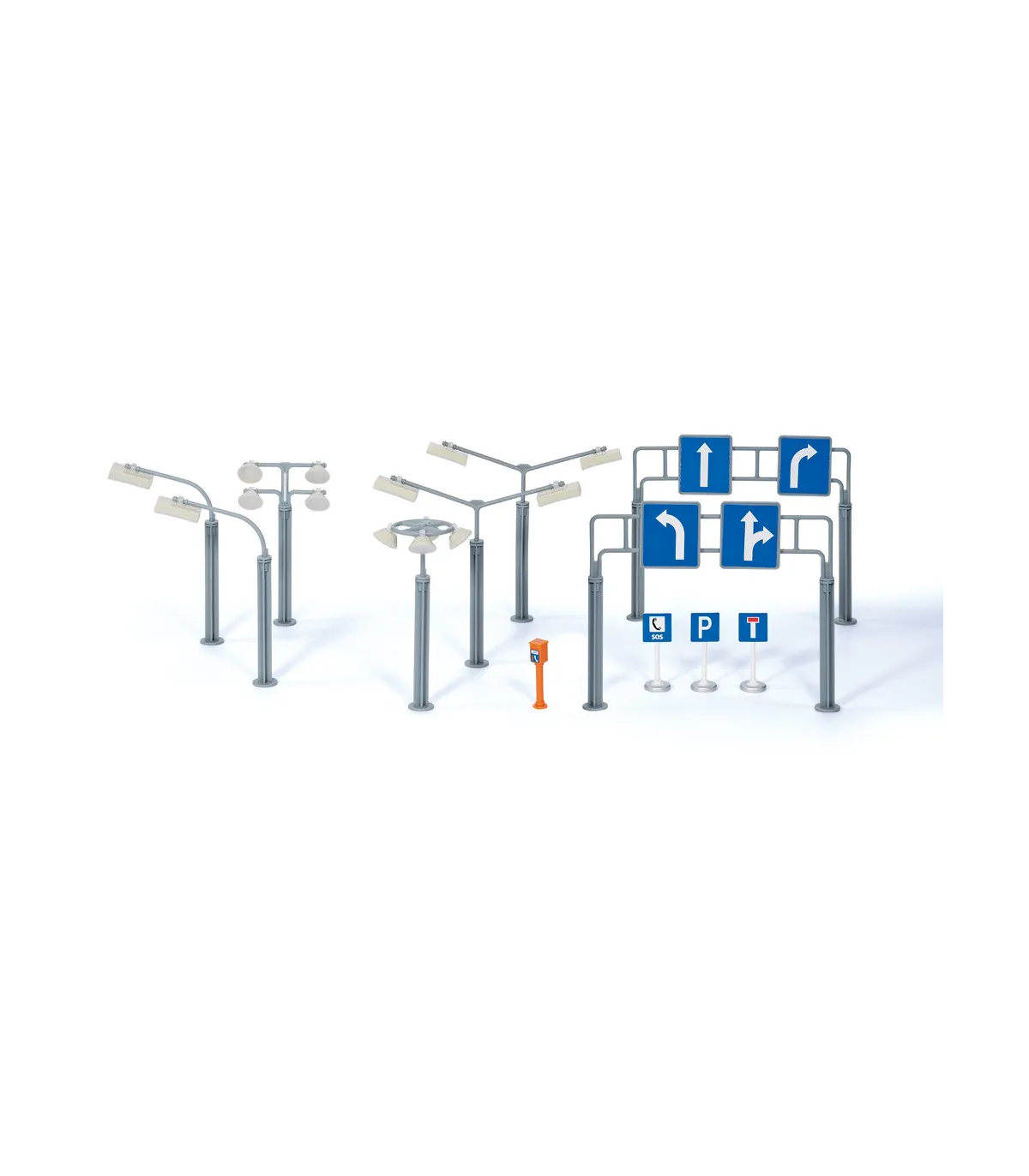 Set complementario para SIKUWORLD con iluminación de calles, aparcamientos y obras, así como diversas señales de tráfico.