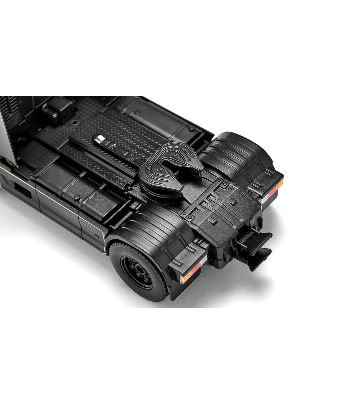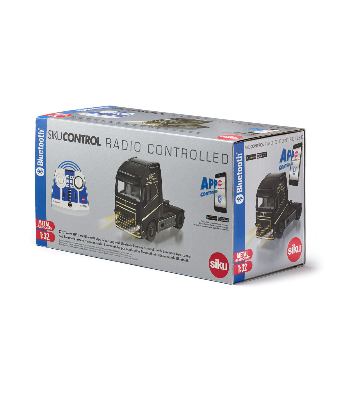 Controle su camión sueco con la aplicaciónPotencia, detalle, alta funcionalidad, y todo esto se puede controlar con un teléfono inteligente o una tableta. Esto es lo que ofrece el nuevo SIKUCONTROL Volvo FH16 4x2. La APP SIKU y la tecnología Bluetooth lo hacen posible. Las numerosas funciones del tractor sueco prometen diversión. El camión SIKUCONTROL de metal y plástico se caracteriza no sólo por sus numerosas funciones, sino también por la atención al detalle que tanto aprecian los aficionados. La cabina del conductor de metal está pintada en negro mate y lleva un elaborado estampado. Todas las funciones y las dos transmisiones del Volvo FH16 4x2 se controlan a través de la aplicación. Ya sea a través del control del joystick virtual o de los sensores de movimiento e inclinación de los dispositivos móviles. Esta característica intuitiva es un cambio bienvenido y ofrece diversión de juego adicional. El camión Volvo funciona con un eje. La aplicación permite maniobrar con precisión, así como acoplar y desacoplar el semirremolque volquete de 3 ejes (artículo 6734). Además, en el tractor está integrada una toma de datos para transmitir los comandos de control al remolque. Como alternativa a la aplicación SIKU, el Volvo también se puede controlar con el módulo de control remoto Bluetooth, que se vende por separado bajo el número 6730.