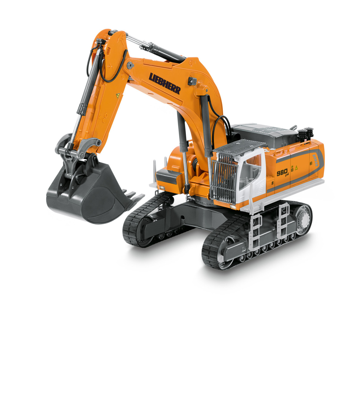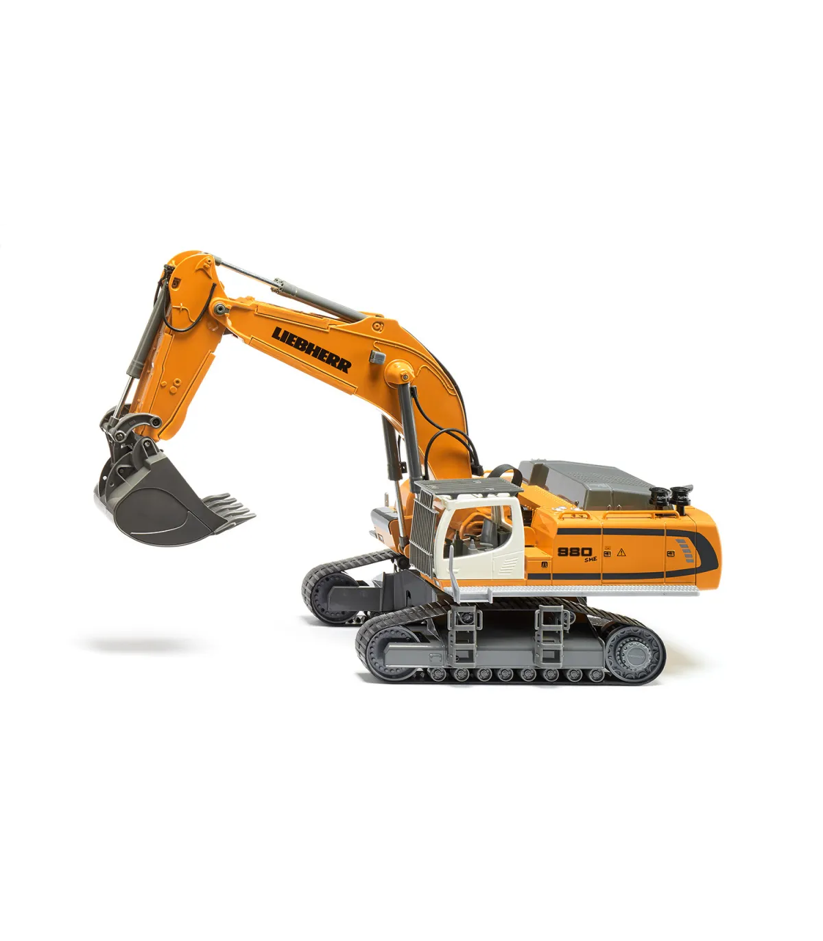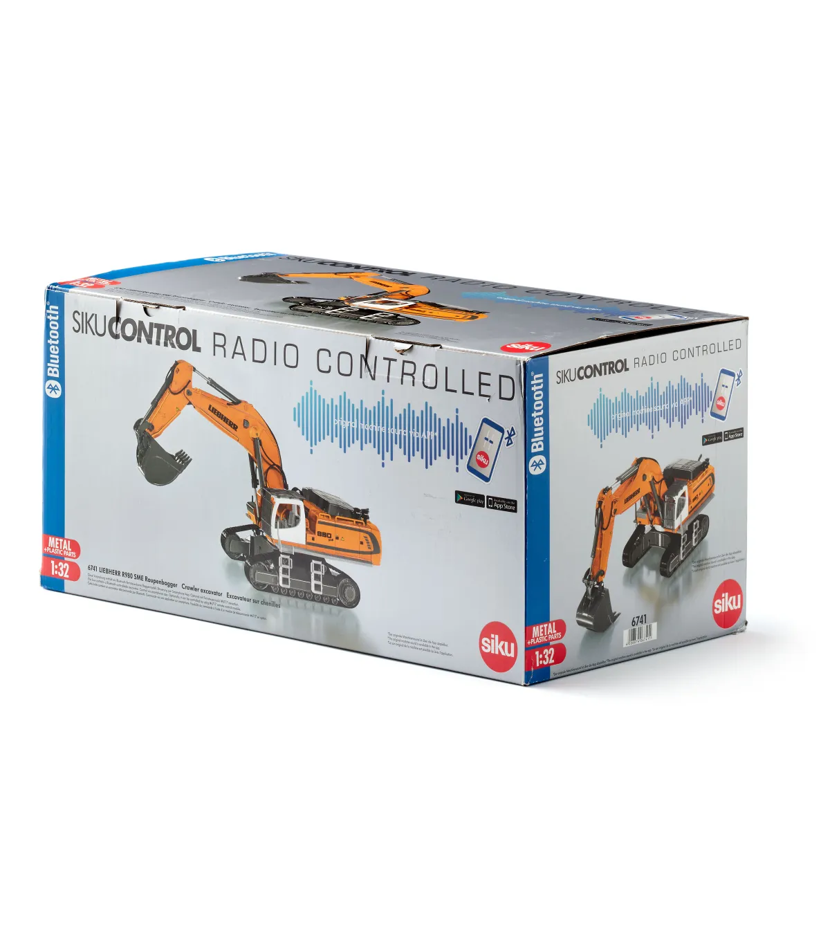 Casi ningún otro vehículo de obra cautiva tanto a jóvenes y mayores como la excavadora. Lo que no se ve, sin embargo, es que en este enorme coloso hay tecnología de última generación, que realiza tanto trabajos de demolición rudos como trabajos de paleado precisos. La última generación de excavadoras sobre orugas de Liebherr es aún más potente, más cómoda e indispensable como ayuda versátil. Como modelo de excavadora de alta gama controlado por Bluetooth de SIKU CONTROL, ¡hace latir más rápido el corazón de los aficionados a las obras! El chasis de orugas de metal hace que la excavadora sea especialmente robusta. L a góndola puede girar 360 grados y ofrece una visión panorámica perfecta de toda la obra. El brazo de la excavadora con cuchara de plástico se puede mover de forma realista. Con la aplicación SIKU CONTROL se pueden manejar con precisión las seis cajas de cambios con embrague deslizante, así como los ocho LED y los interruptores de seguridad en el brazo de la excavadora con un teléfono inteligente o una tableta. Las funciones de conducción y excavadora se controlan de forma totalmente proporcional. La función STRD (Mostrar la dirección correcta) es especialmente práctica: con solo pulsar un botón, la excavadora gira automáticamente de modo que la cabina apunta en la dirección de marcha. La aplicación SIKU CONTROL se puede descargar de forma gratuita desde App Store y Google Play Store. La configuración y funciones de la aplicación se actualizan continuamente. Con la función OTA (Over-The-Air), todas las actualizaciones del modelo se cargan automáticamente cuando se inicia la aplicación. La nueva función Real Machine Sound (RMSF) ofrece una sensación real en la obra: los sonidos originales de la excavadora se grabaron en vivo y se integraron en la aplicación. Por lo tanto, los sonidos sólo se pueden reproducir a través de la aplicación, pero también a través de los altavoces externos de su teléfono móvil o tableta. ¡Esto crea un paisaje sonoro fiel al original que garantiza una experiencia de juego particularmente realista!