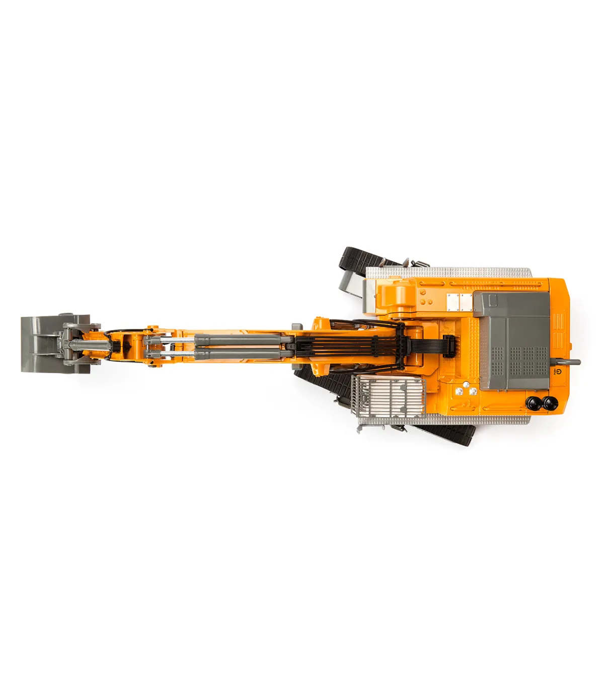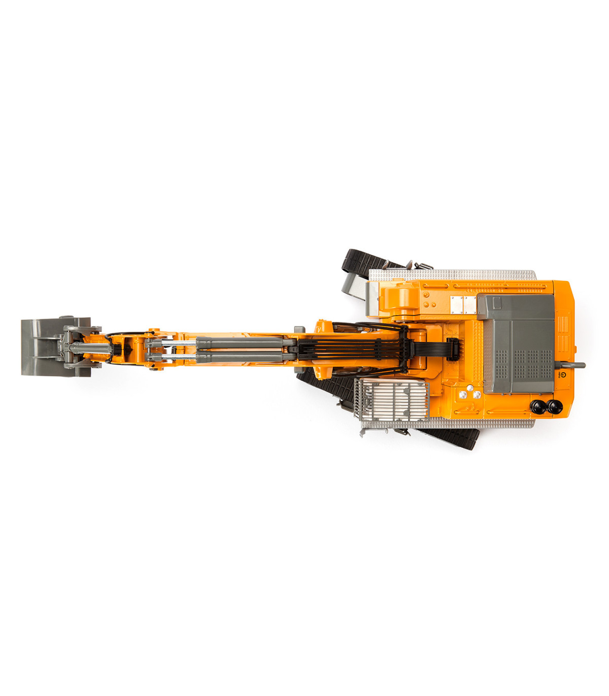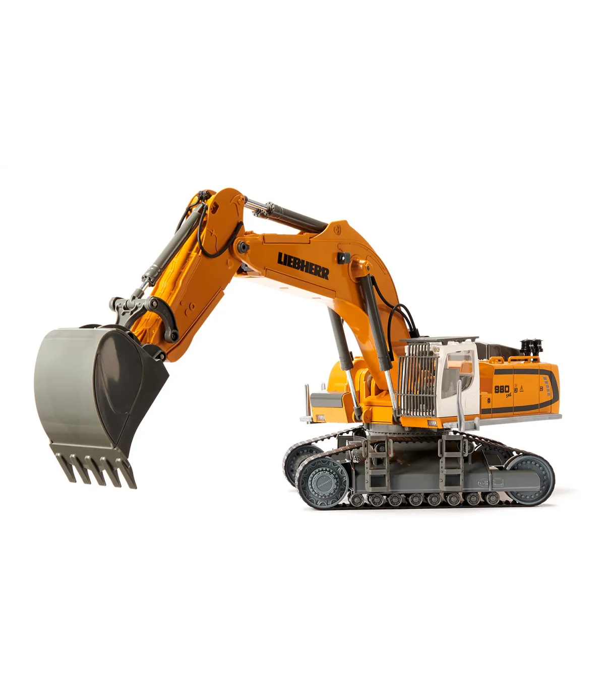 Casi ningún otro vehículo de obra cautiva tanto a jóvenes y mayores como la excavadora. Lo que no se ve, sin embargo, es que en este enorme coloso hay tecnología de última generación, que realiza tanto trabajos de demolición rudos como trabajos de paleado precisos. La última generación de excavadoras sobre orugas de Liebherr es aún más potente, más cómoda e indispensable como ayuda versátil. Como modelo de excavadora de alta gama controlado por Bluetooth de SIKU CONTROL, ¡hace latir más rápido el corazón de los aficionados a las obras! El chasis de orugas de metal hace que la excavadora sea especialmente robusta. L a góndola puede girar 360 grados y ofrece una visión panorámica perfecta de toda la obra. El brazo de la excavadora con cuchara de plástico se puede mover de forma realista. Con la aplicación SIKU CONTROL se pueden manejar con precisión las seis cajas de cambios con embrague deslizante, así como los ocho LED y los interruptores de seguridad en el brazo de la excavadora con un teléfono inteligente o una tableta. Las funciones de conducción y excavadora se controlan de forma totalmente proporcional. La función STRD (Mostrar la dirección correcta) es especialmente práctica: con solo pulsar un botón, la excavadora gira automáticamente de modo que la cabina apunta en la dirección de marcha. La aplicación SIKU CONTROL se puede descargar de forma gratuita desde App Store y Google Play Store. La configuración y funciones de la aplicación se actualizan continuamente. Con la función OTA (Over-The-Air), todas las actualizaciones del modelo se cargan automáticamente cuando se inicia la aplicación. La nueva función Real Machine Sound (RMSF) ofrece una sensación real en la obra: los sonidos originales de la excavadora se grabaron en vivo y se integraron en la aplicación. Por lo tanto, los sonidos sólo se pueden reproducir a través de la aplicación, pero también a través de los altavoces externos de su teléfono móvil o tableta. ¡Esto crea un paisaje sonoro fiel al original que garantiza una experiencia de juego particularmente realista!
