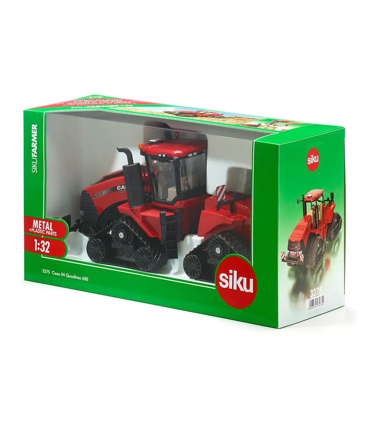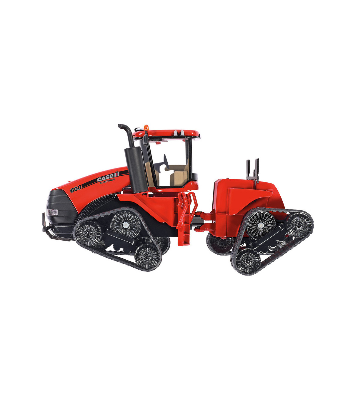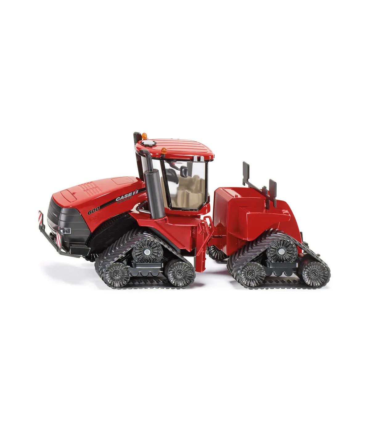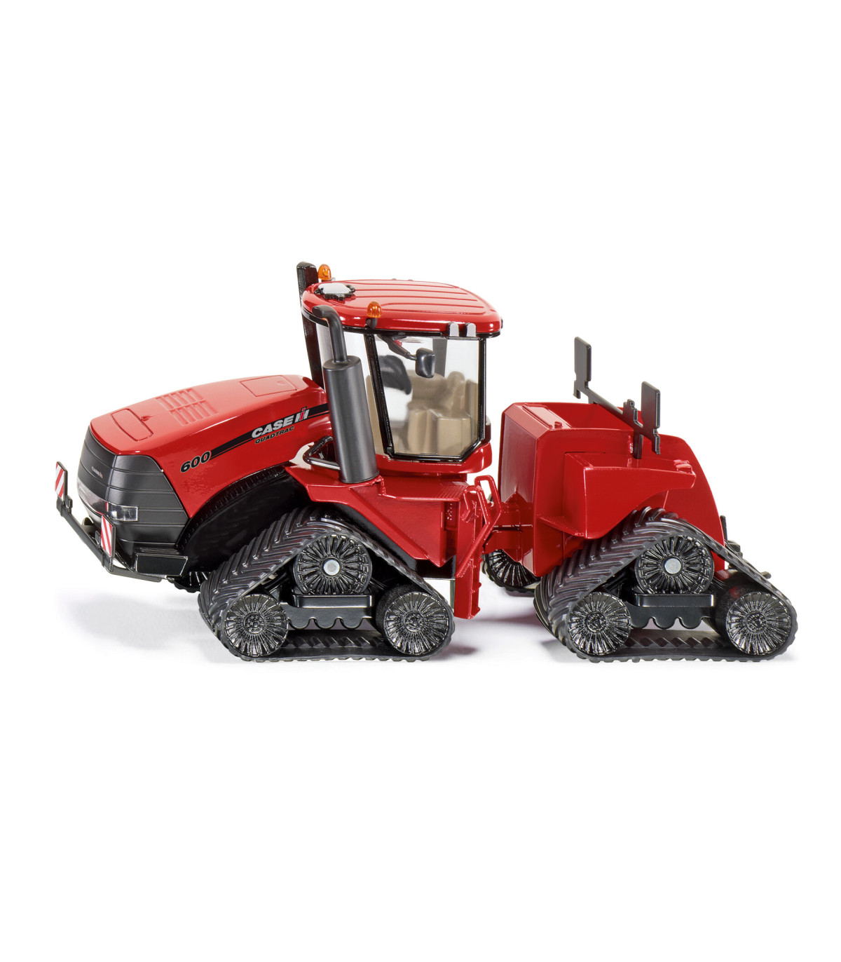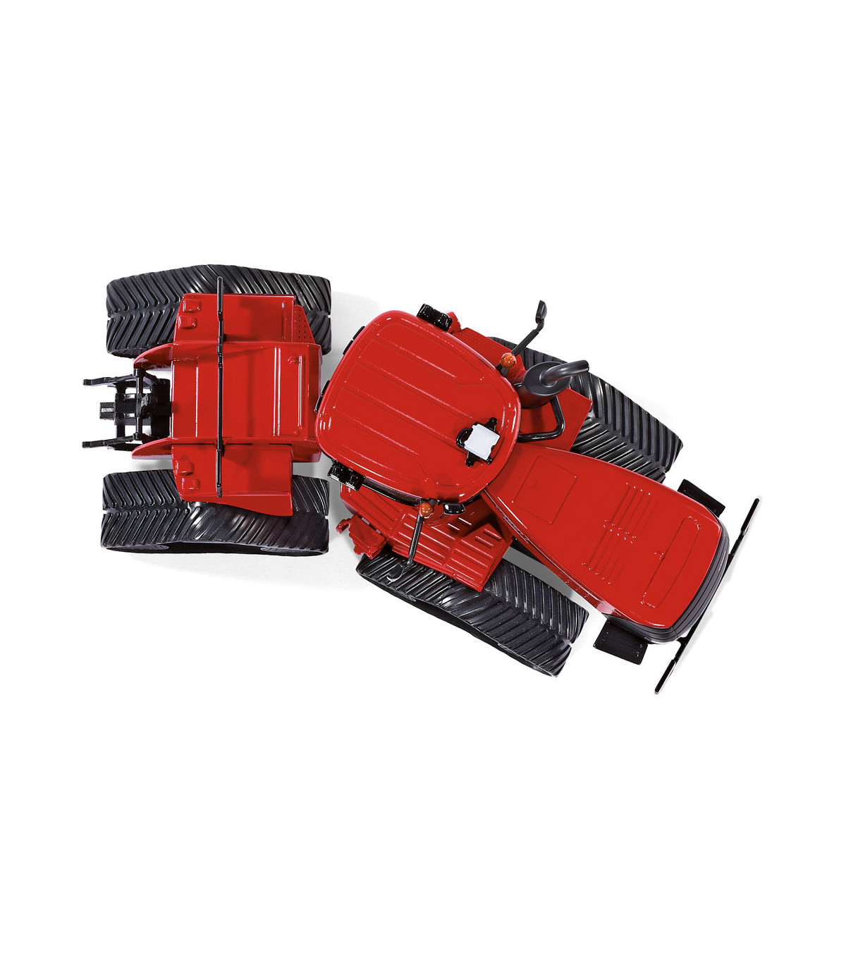 El Quadtrac 600 de la marca tradicional CASE IH ofrece una enorme potencia de tracción y, al mismo tiempo, distribuye suavemente la presión sobre el campo. Con el nuevo tractor de orugas de 600 CV, esta serie de modelos articulados está representada por primera vez en el segmento SIKU de tractores grandes y potentes. También están disponibles características probadas como el enganche trasero SIKU, luces giratorias en el techo de la cabina y espejos plegables, así como una articulación funcional con ajuste de nivel, que mantiene el vehículo en el camino en terrenos irregulares. Las correas de las cuatro orugas triangulares circulan suavemente alrededor de los ejes motrices. Una alta proporción de metal y detalles bien pensados protegen el modelo de visitas de servicio no programadas, incluso cuando se juega con compromiso. Las señales de advertencia en la parte delantera y trasera informan a los demás usuarios de la vía sobre el enorme tamaño de la máquina.