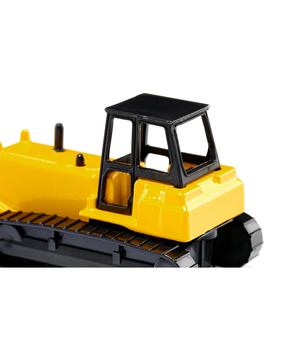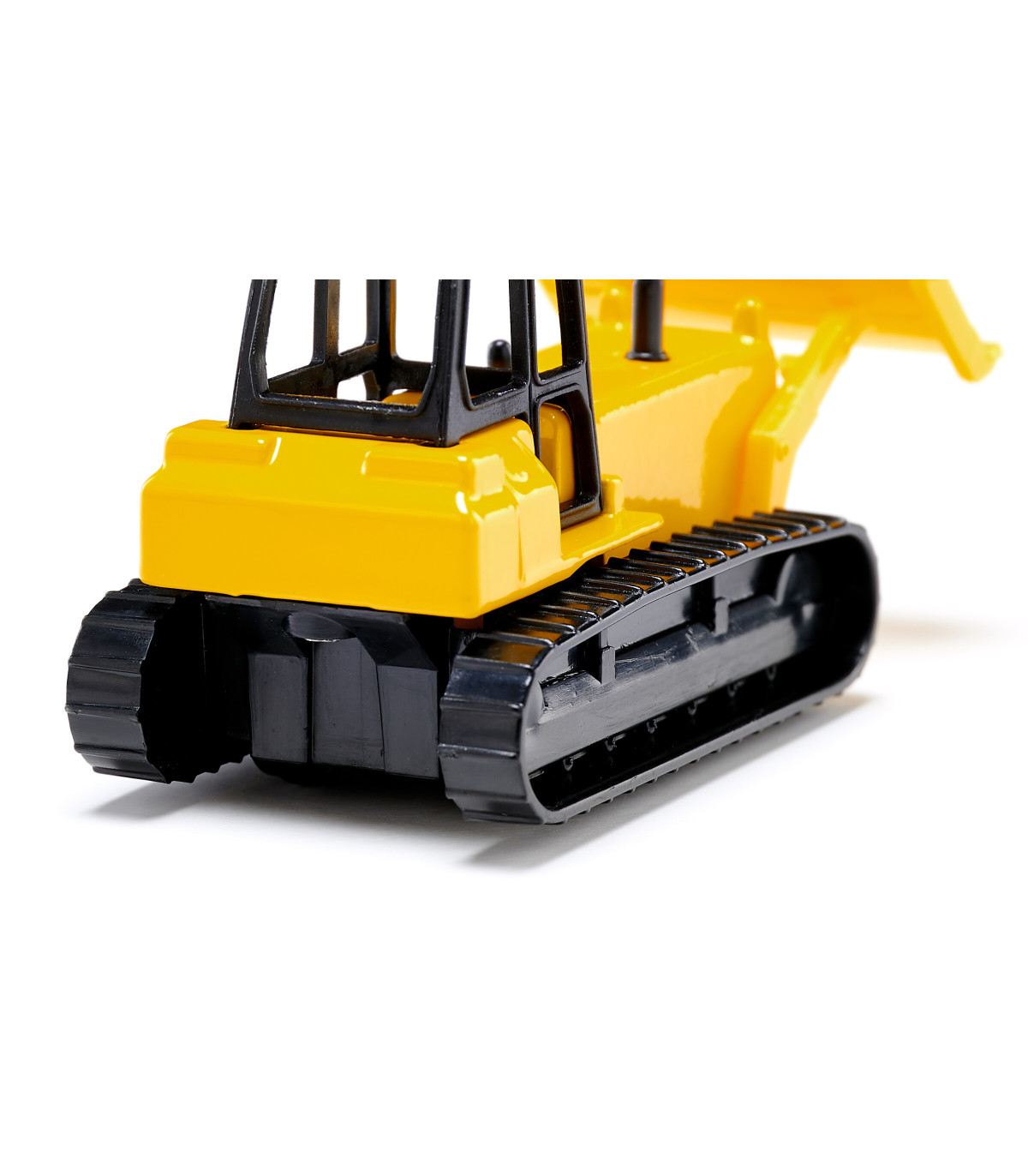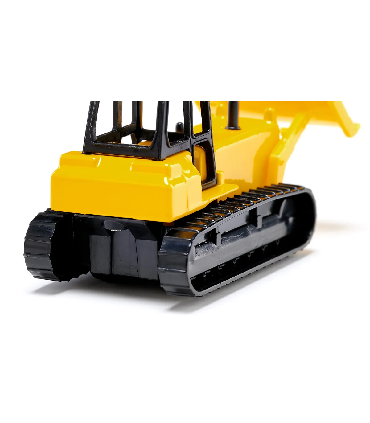 Con más de 260 CV y una velocidad que nunca supera los 12 km/h: así es una excavadora. Su pesada pero móvil pala delantera permite al vehículo aflojar y mover la tierra y, posteriormente, aplanarla y nivelarla. Incluso la versión pequeña de la excavadora de siku es una auténtica todoterreno en la obra. Su pala móvil le permite soportar escombros y grava como el original de verdad.